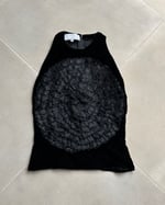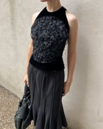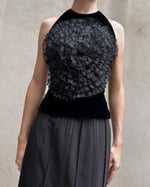SIZE XS | Italian designer black velvet top with floral appliqué.