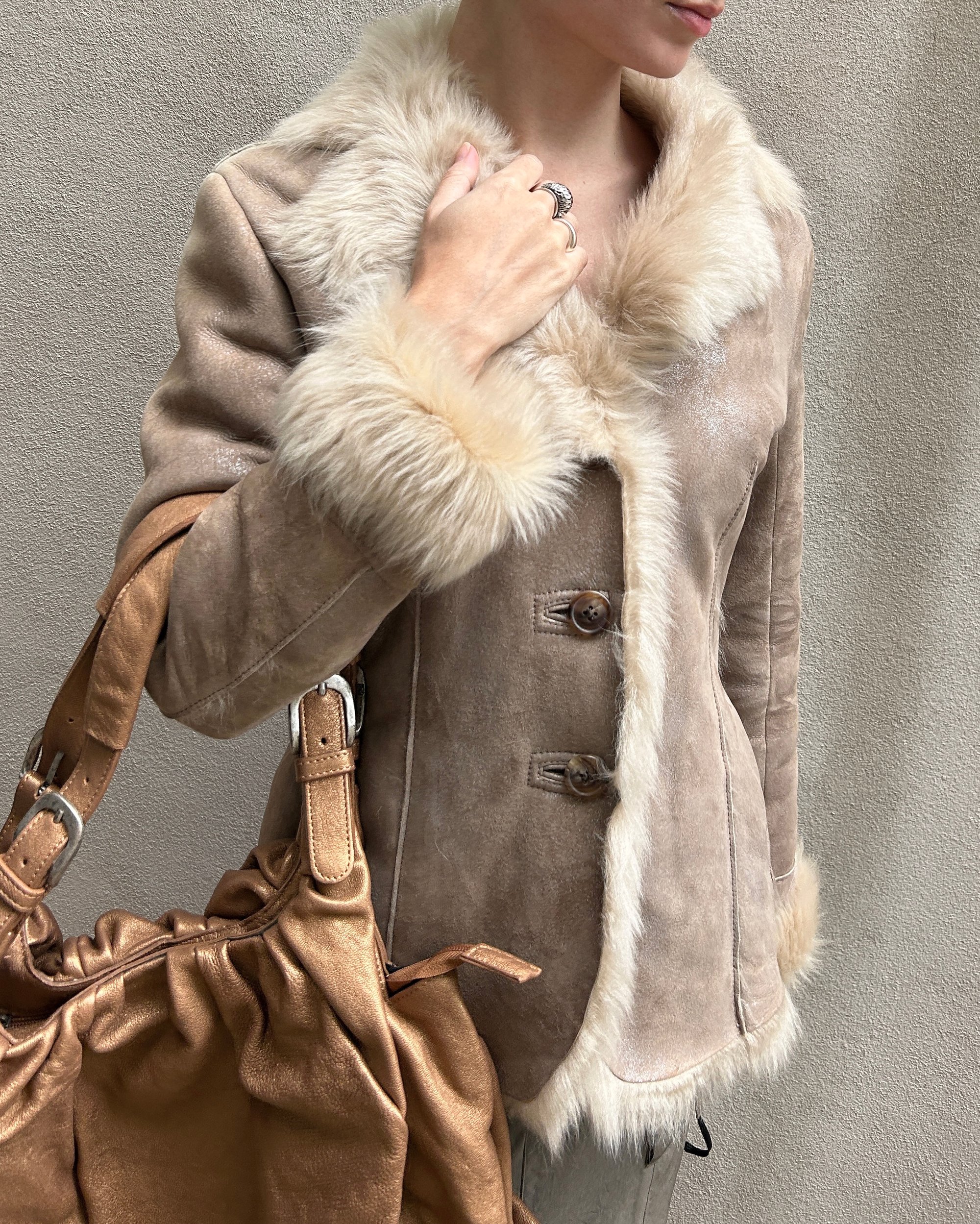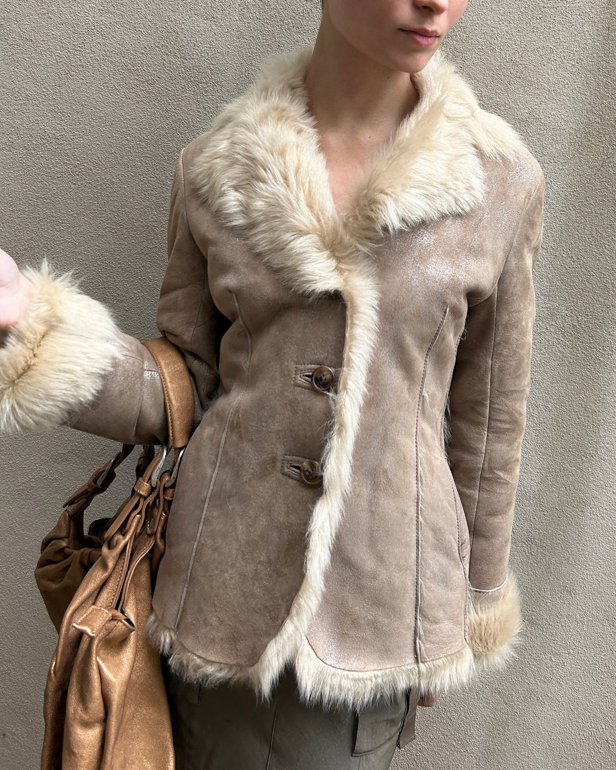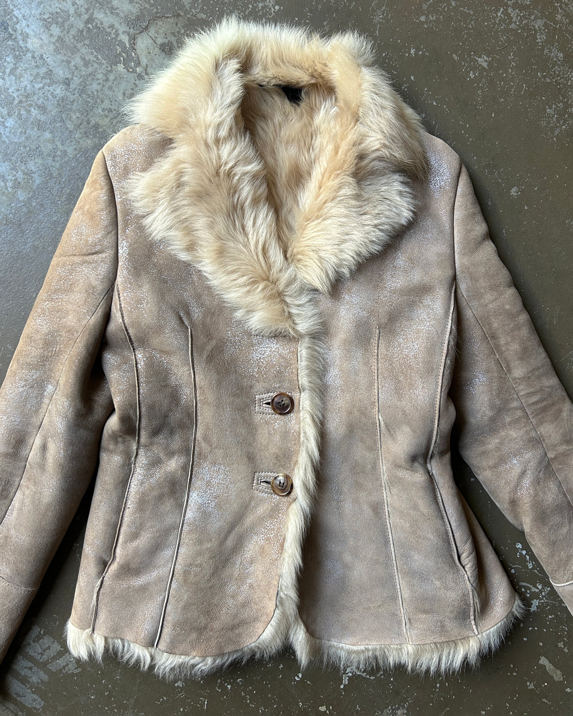 SIZE 3 (S/M) | Vintage genuine suede leather and mouton jacket.
