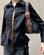 BLACK AND BROWN | Vintage Italian designer genuine leather handbag with croc embossed brown buckle handle.