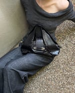 BLACK | Vintage crocodile-embossed genuine leather mini bag with silver buckle closure.
