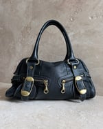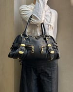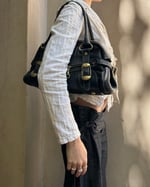 BLACK | Vintage early 2000's genuine leather bowling bag with antique gold hardware.