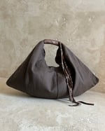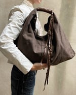 BROWN | Vintage Japanese canvas and genuine leather shoulder bag with leather string detail.