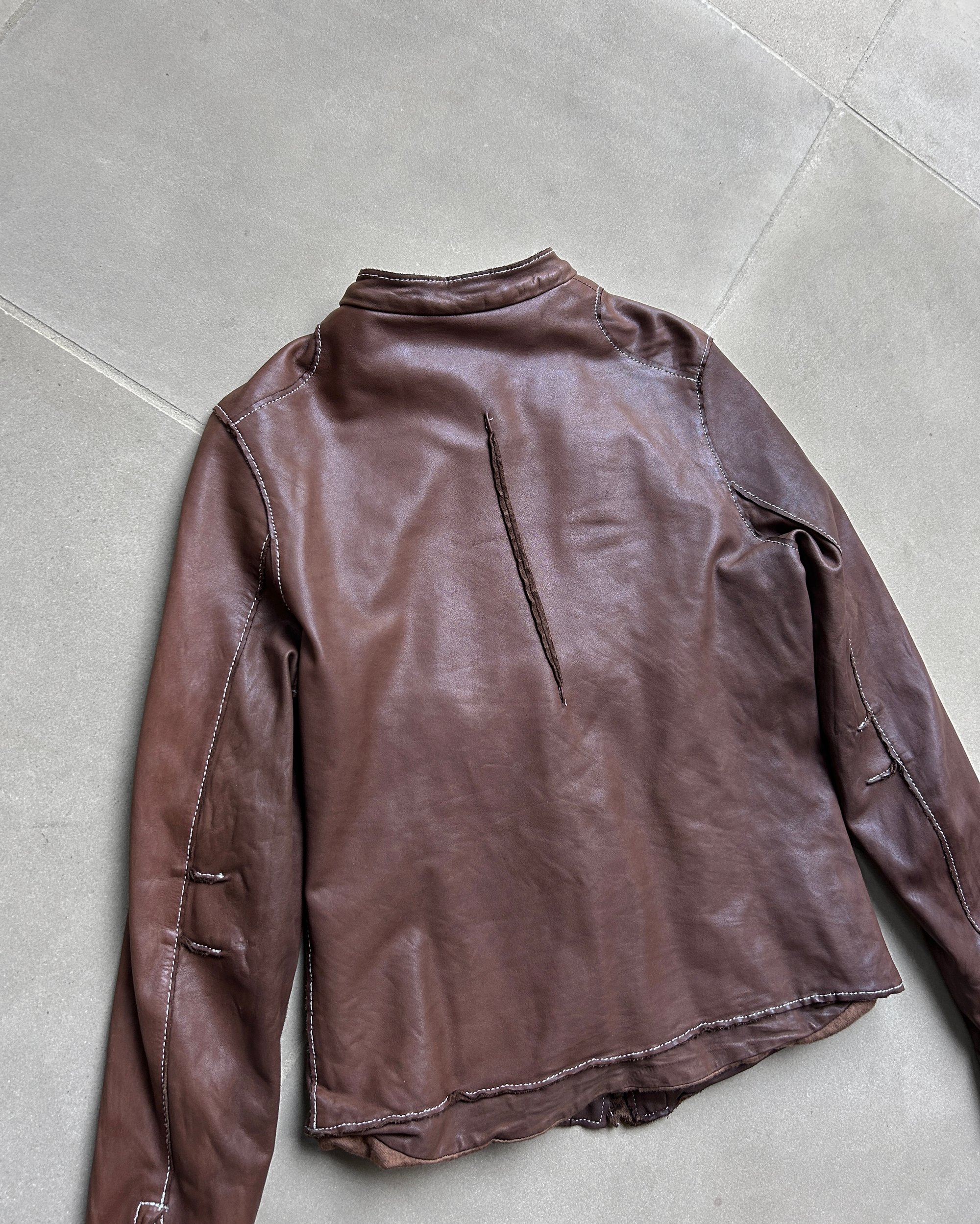 BROWN CONTRAST STITCH LEATHER JACKET