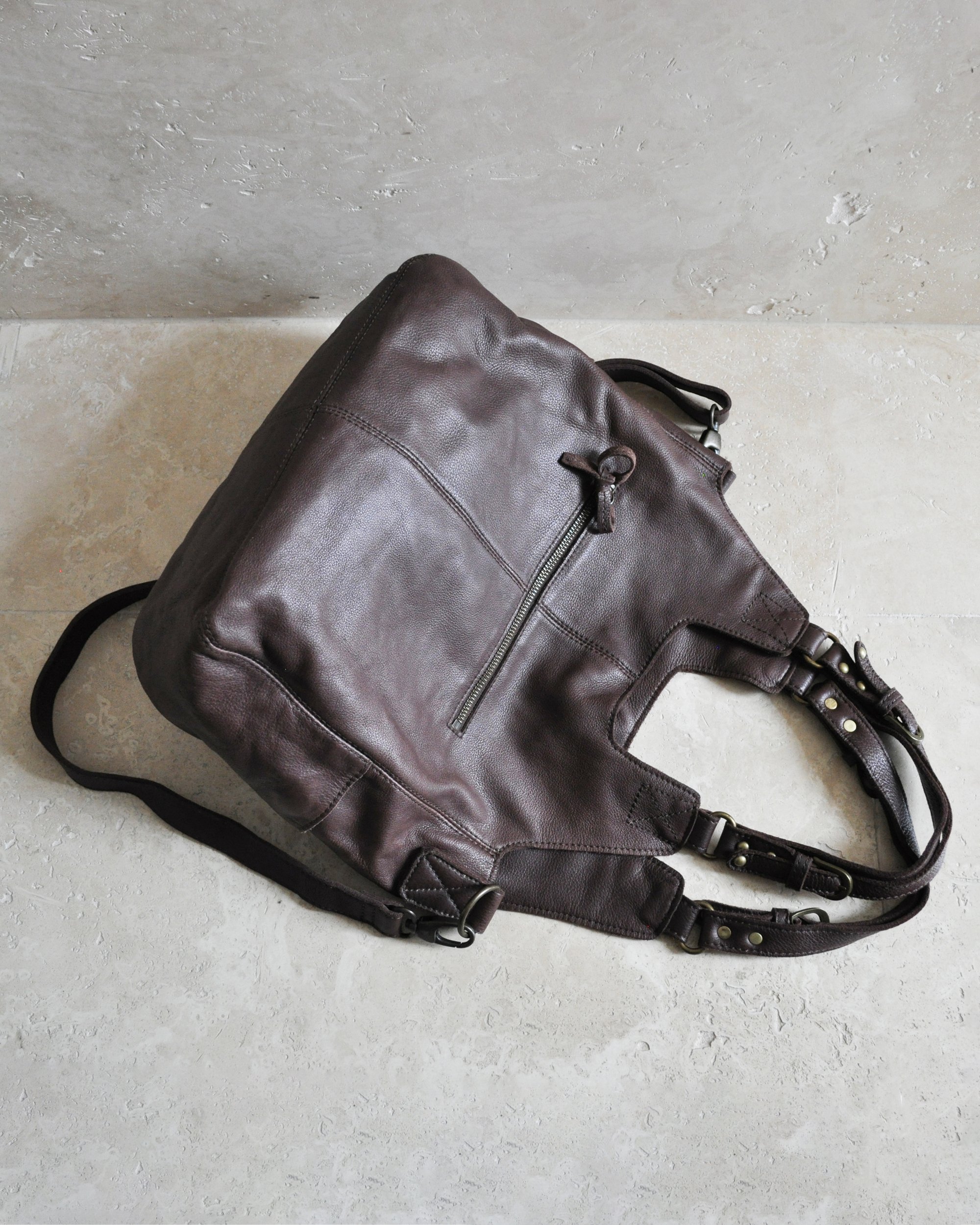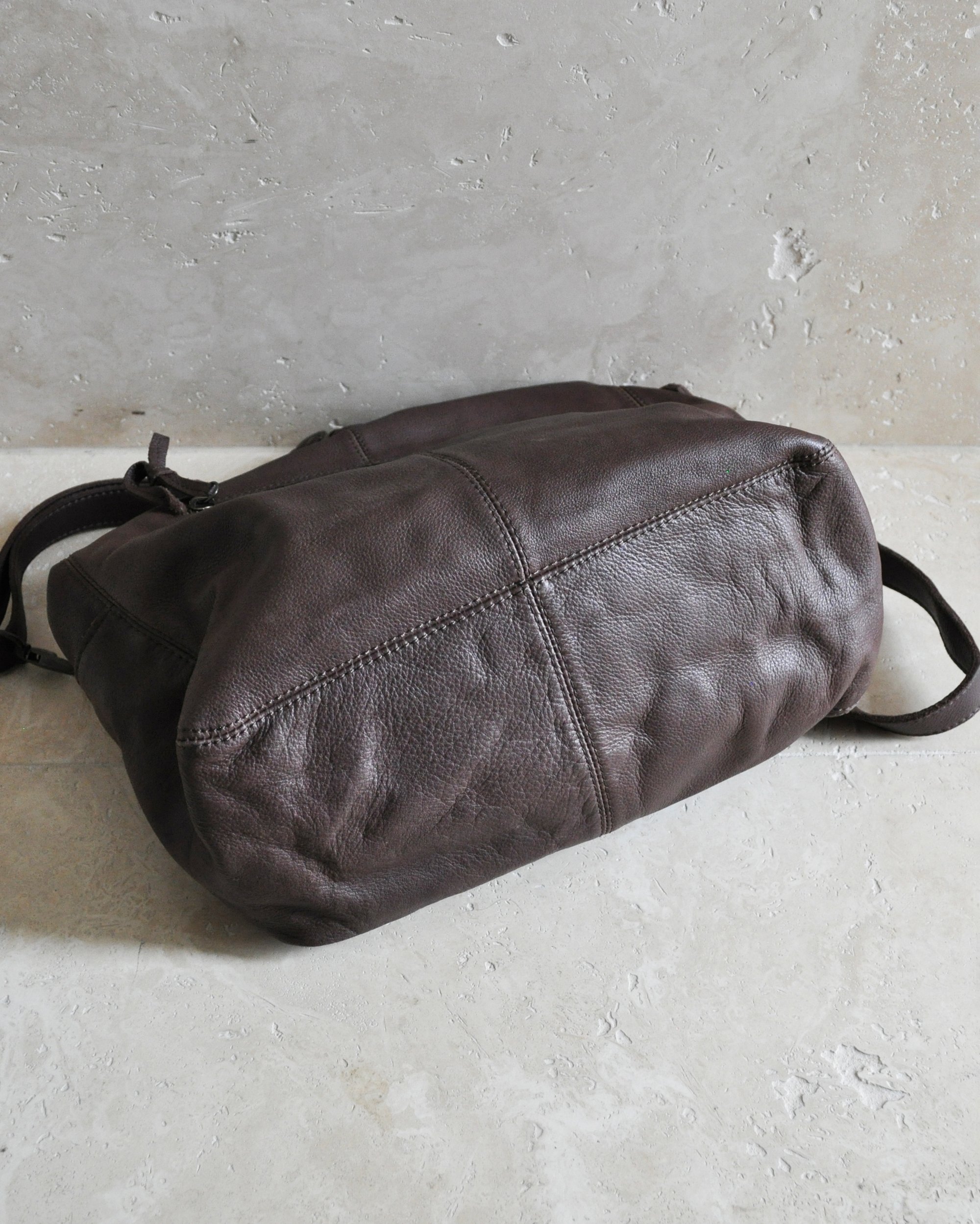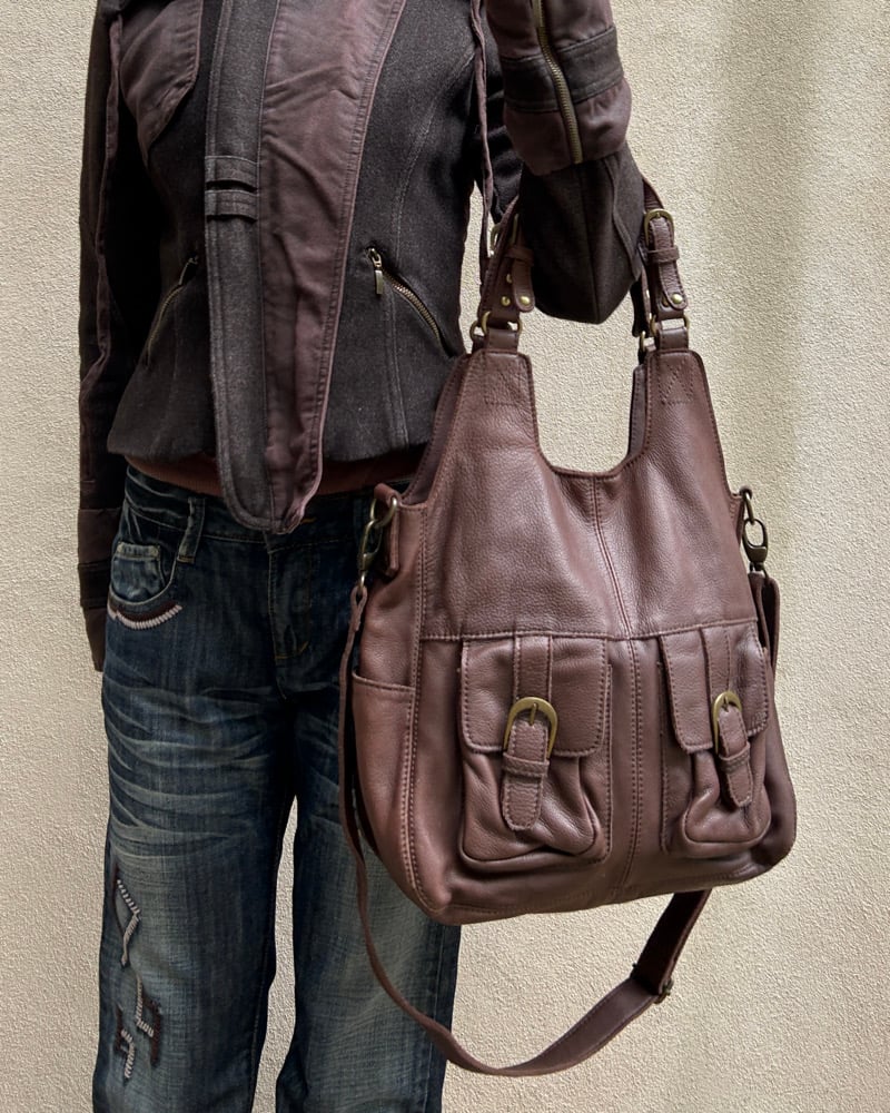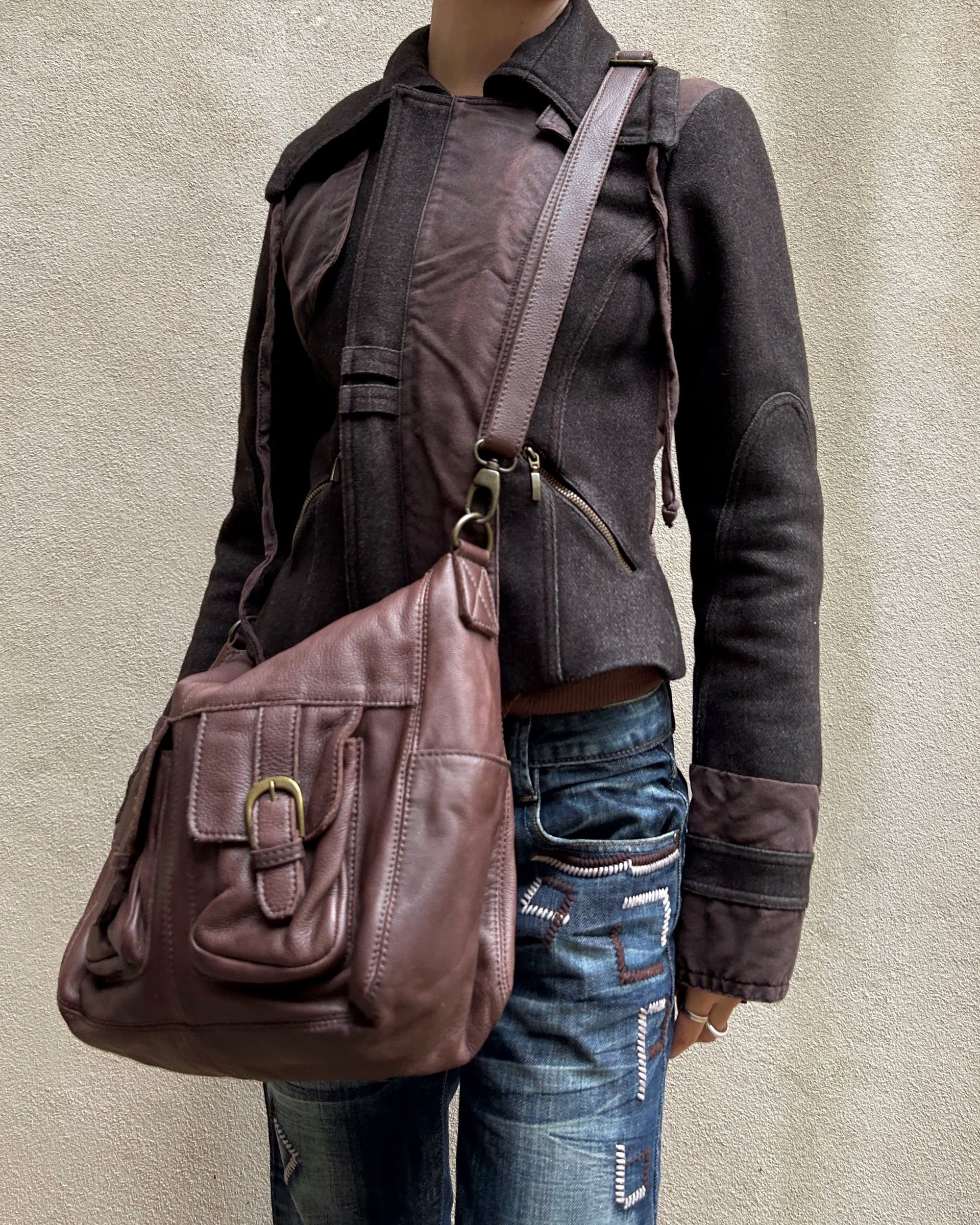 PLUM BROWN | Vintage 1990's genuine leather slouchy bag with antique gold hardware.