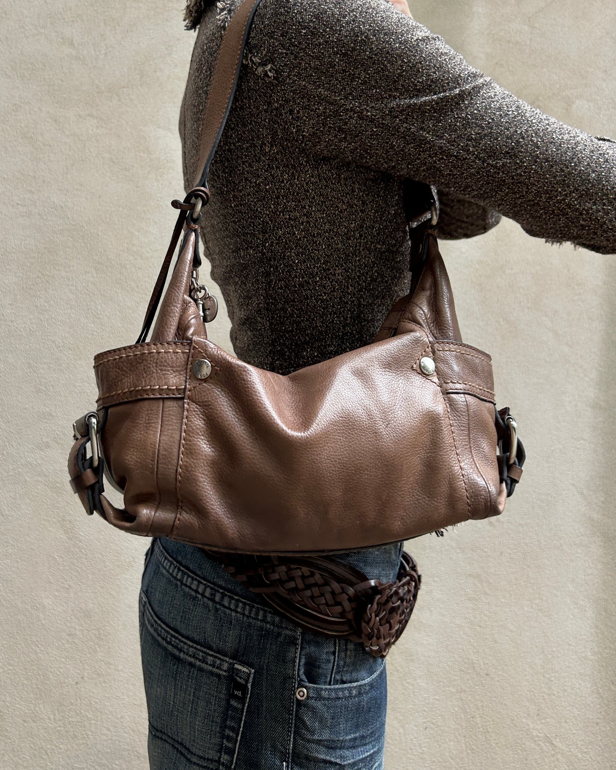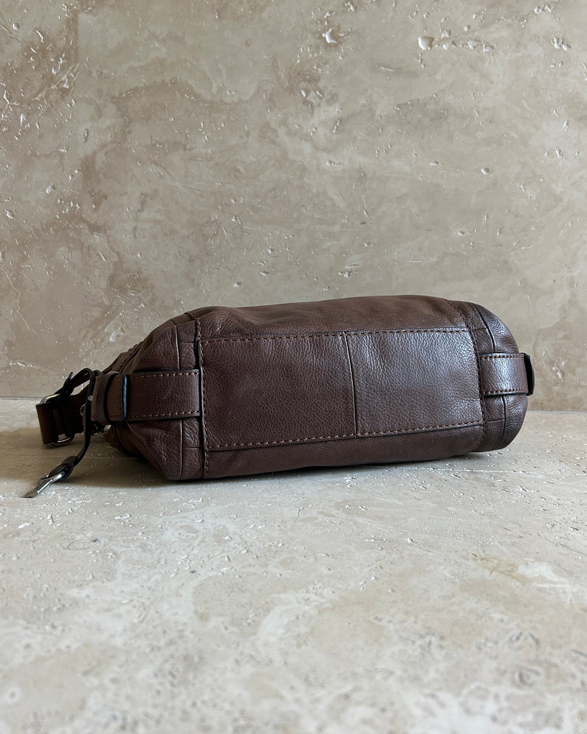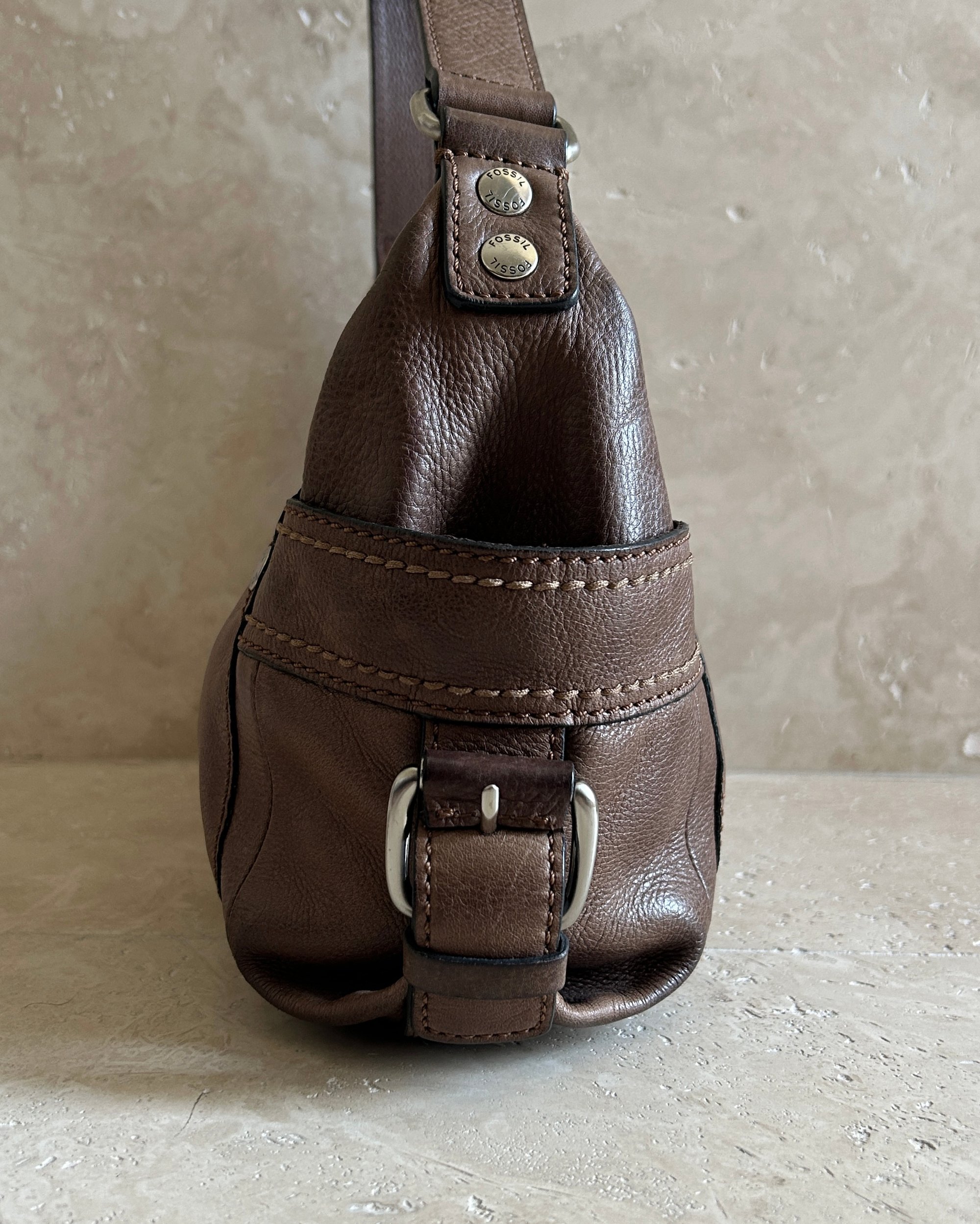 LIGHT BROWN | Vintage Fossil light brown bag with silver hardware.