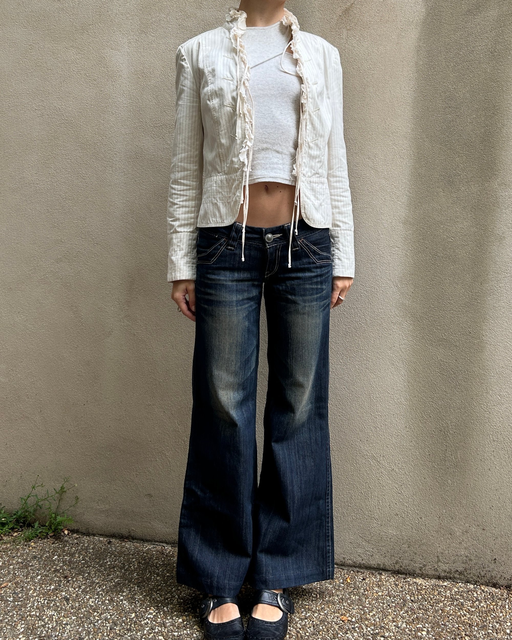 Mid-weight denim. 100% cotton. Made specifically for the Japanese consumer, hence the petite sizing. Pictured on a size 6, 170cm tall.