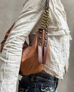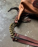 BURNT ORANGE & BROWN | Vintage genuine leather bag with antique gold hardware and buckle accents.