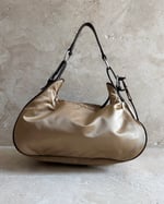 CARAMEL AND BROWN | Vintage Japanese brand genuine leather and nylon shoulder bag with brushed silver hardware.