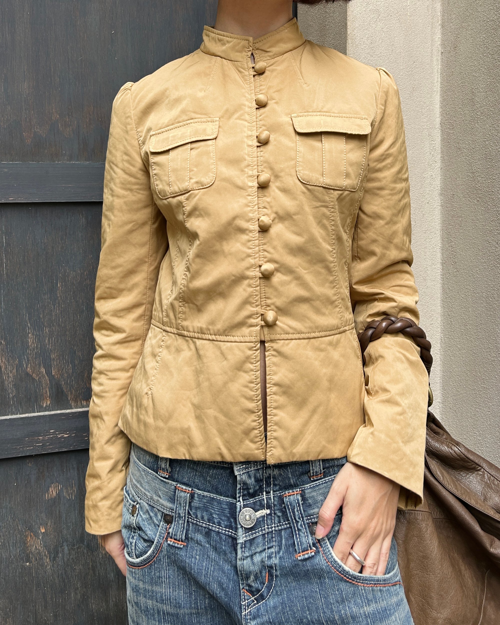 SIZE 36 | French brand caramel military-style jacket with quilted lining.