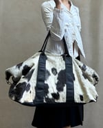 BLACK & NATURAL | Genuine cowhide large travel bag with silver hardware.