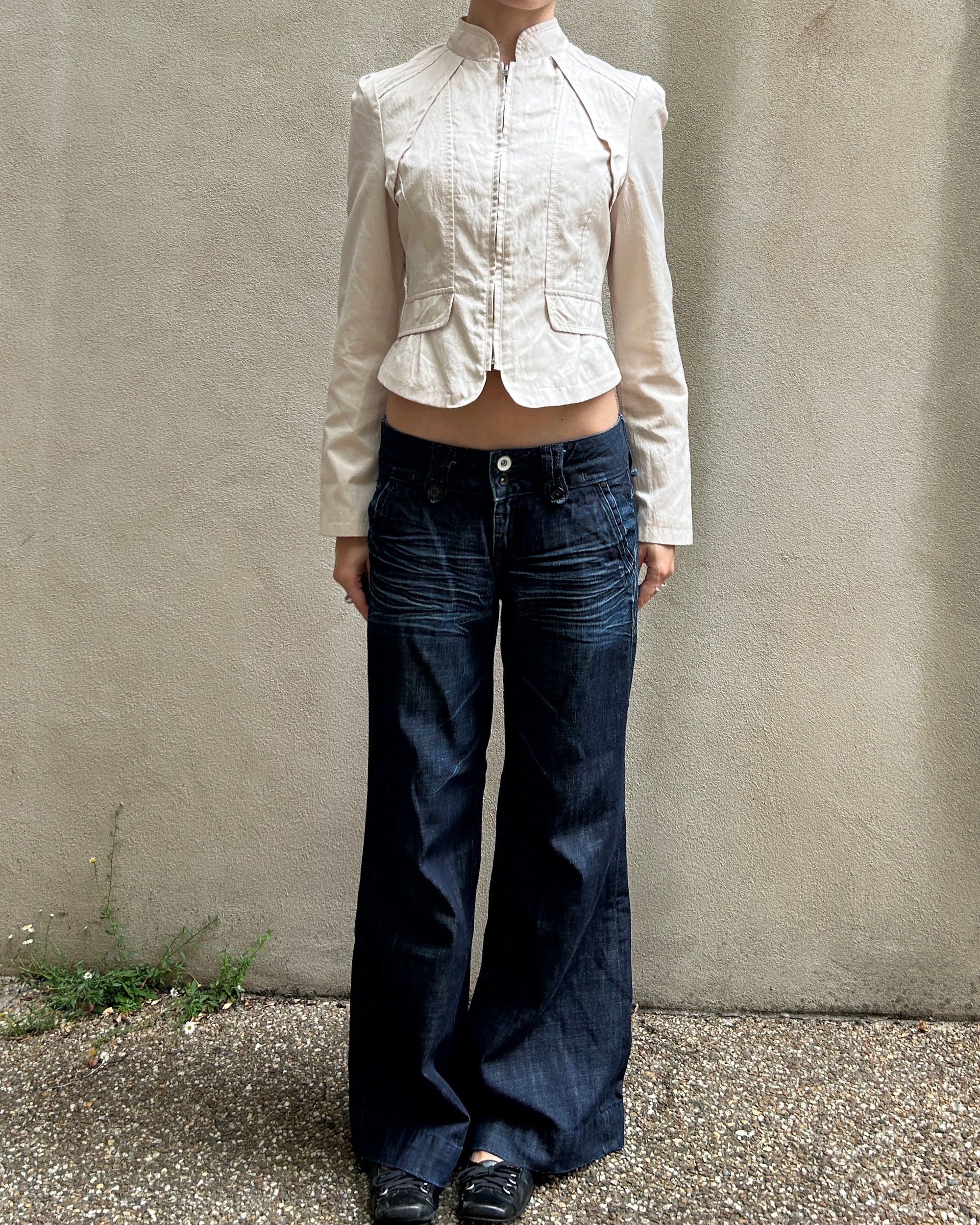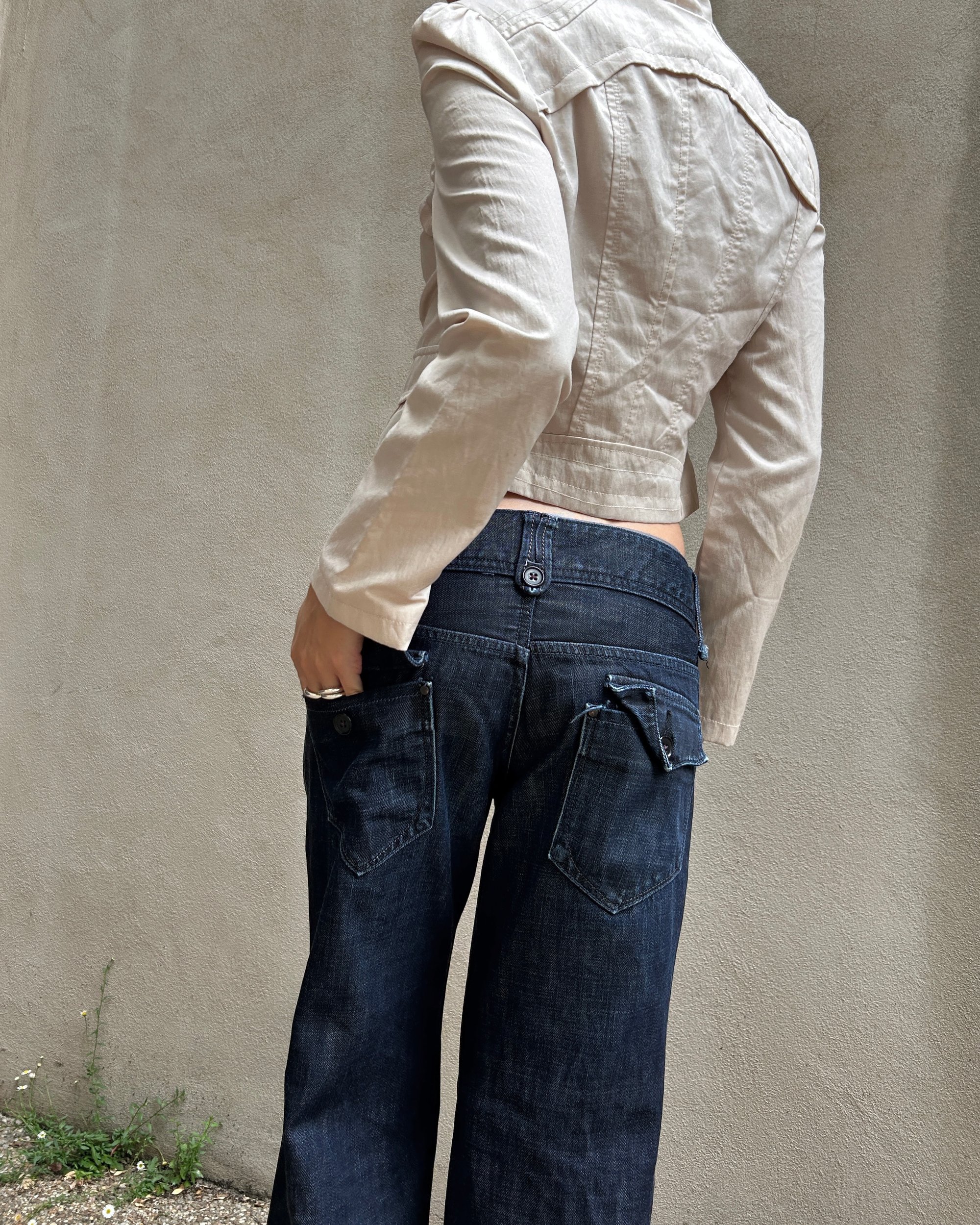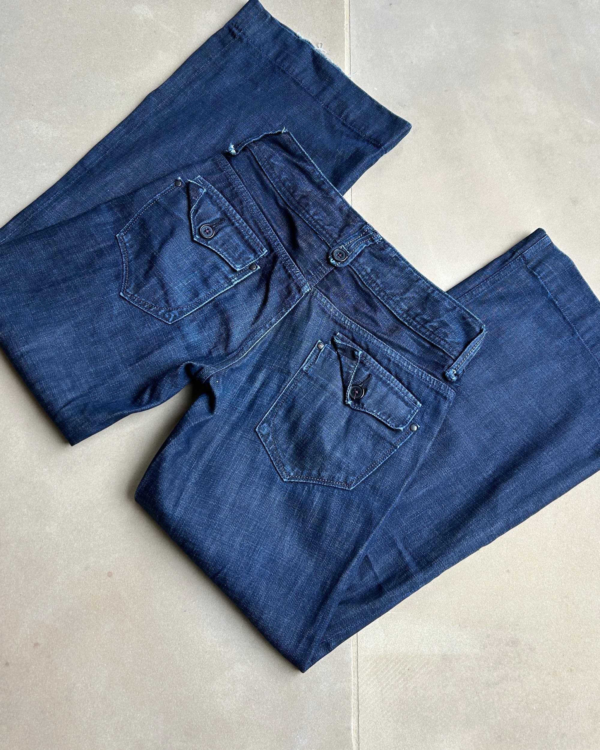 SIZE S | Vintage Japanese label wide leg low-rise jeans.