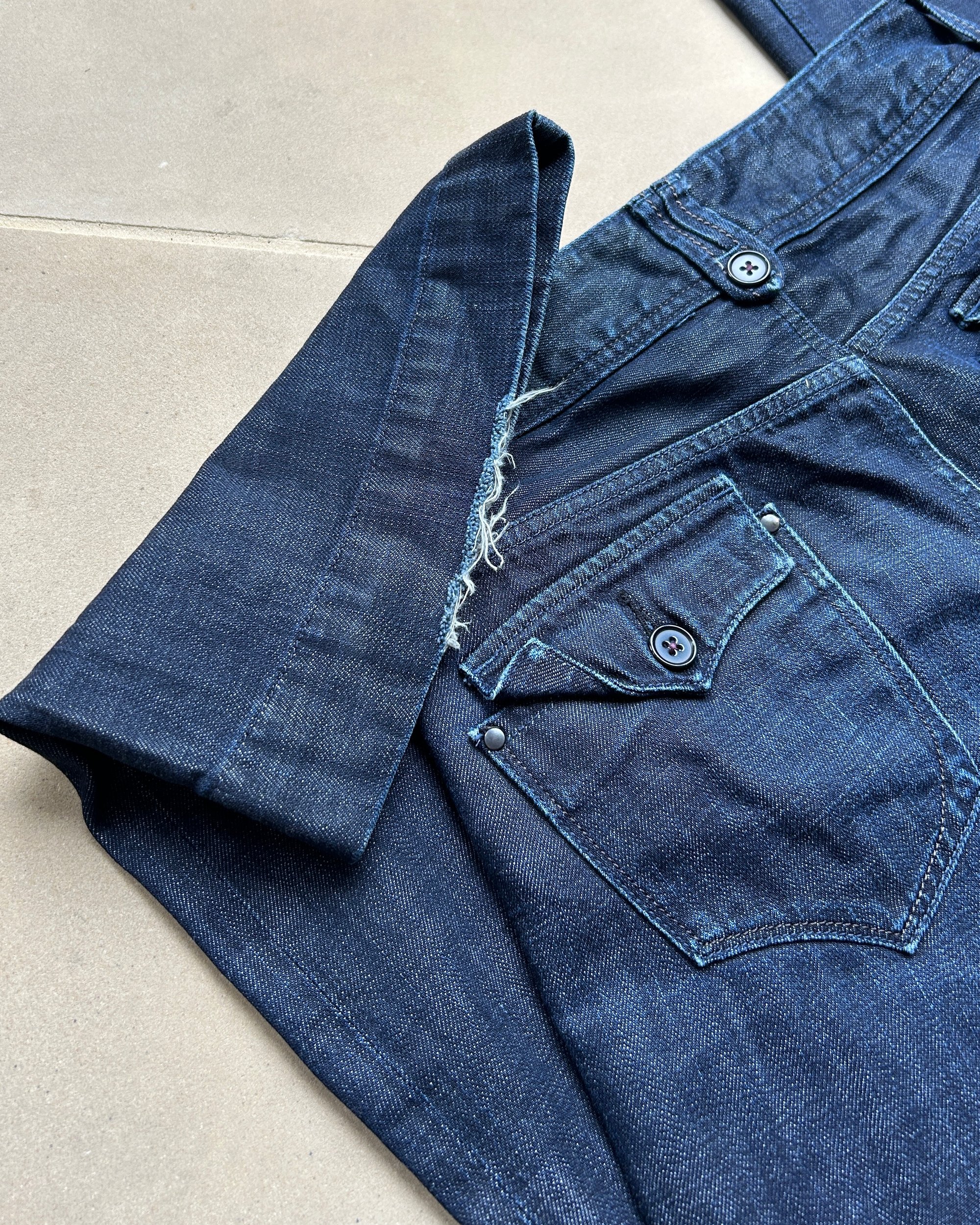 8.5/10 condition. Some wear at the bottom of the hem, adding to the jeans' aged character.