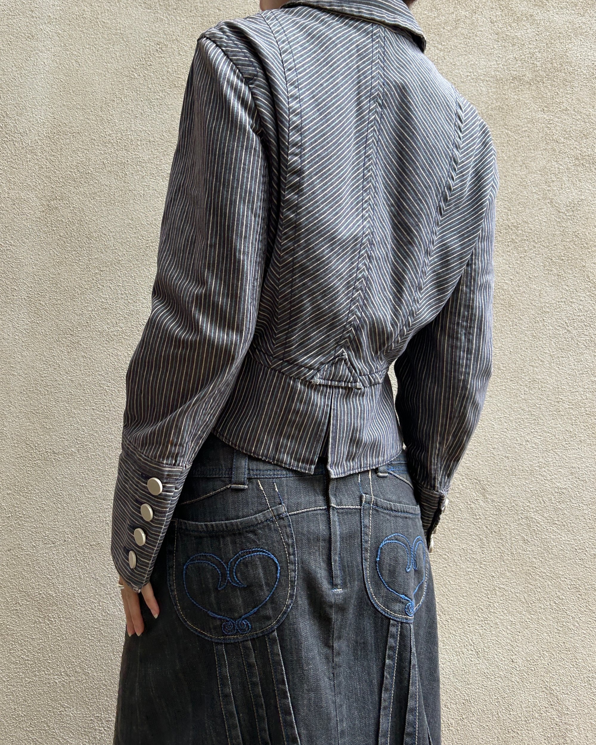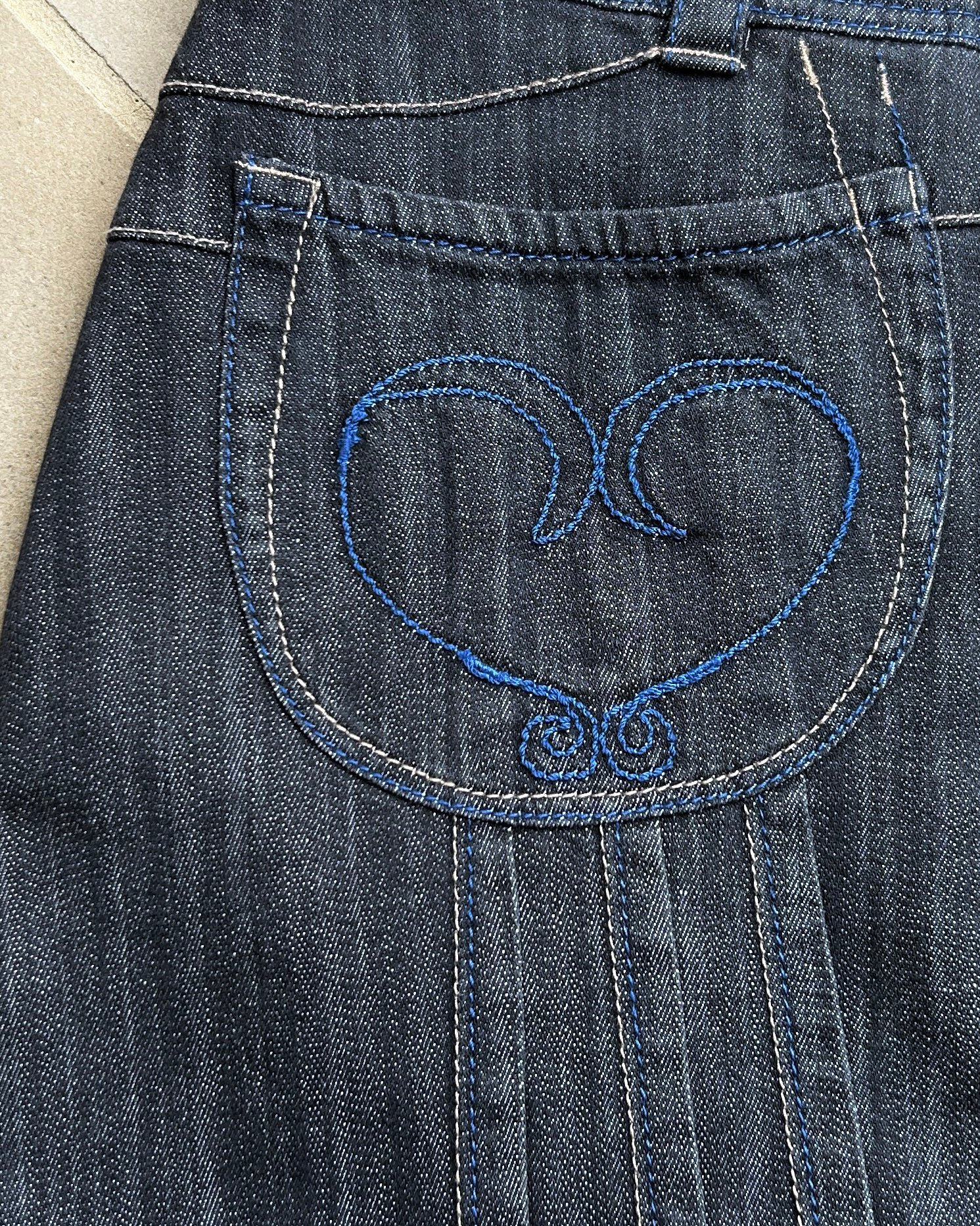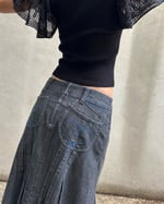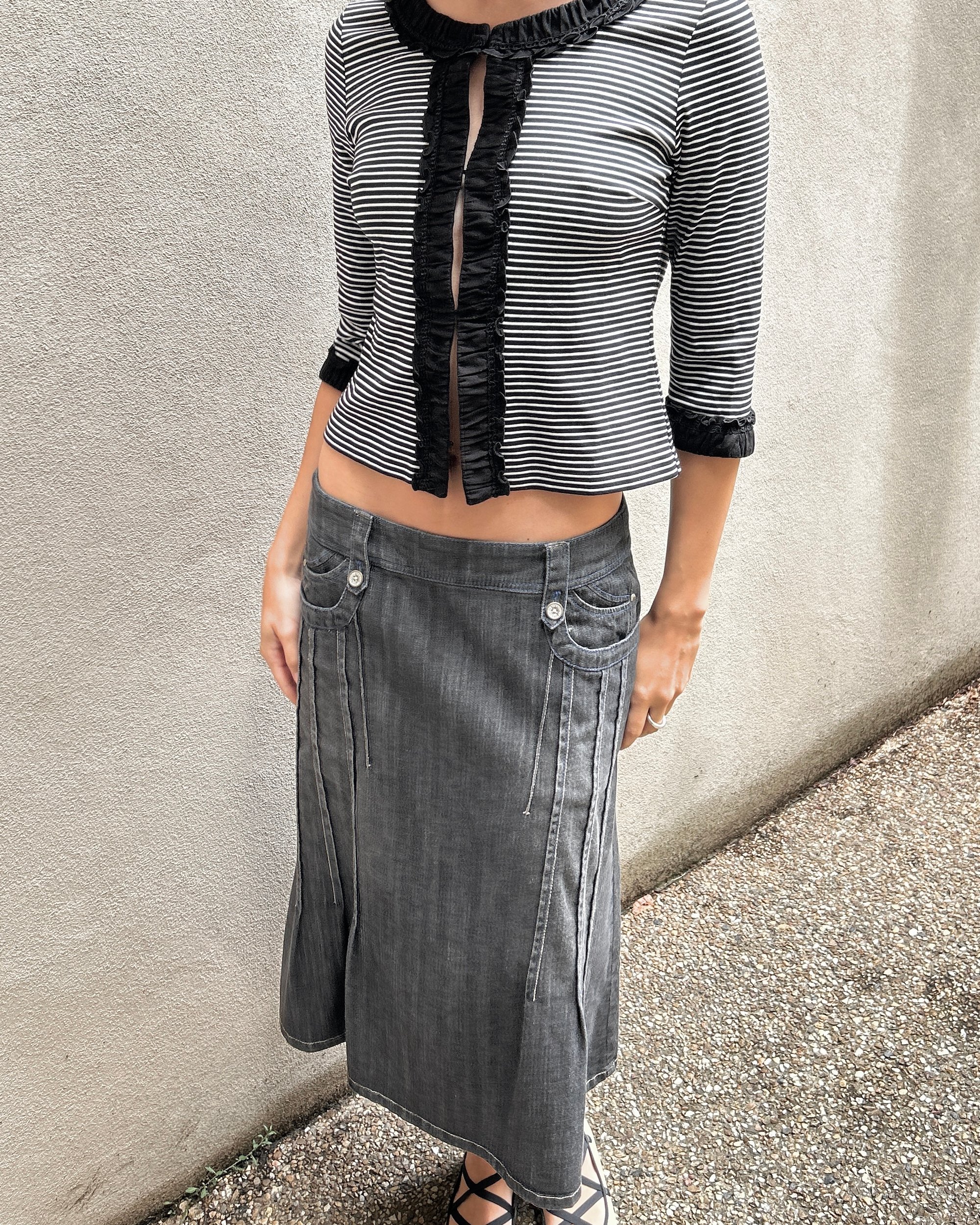 SIZE 40 | Vintage Japanese brand denim midi skirt with contrast stitch details.