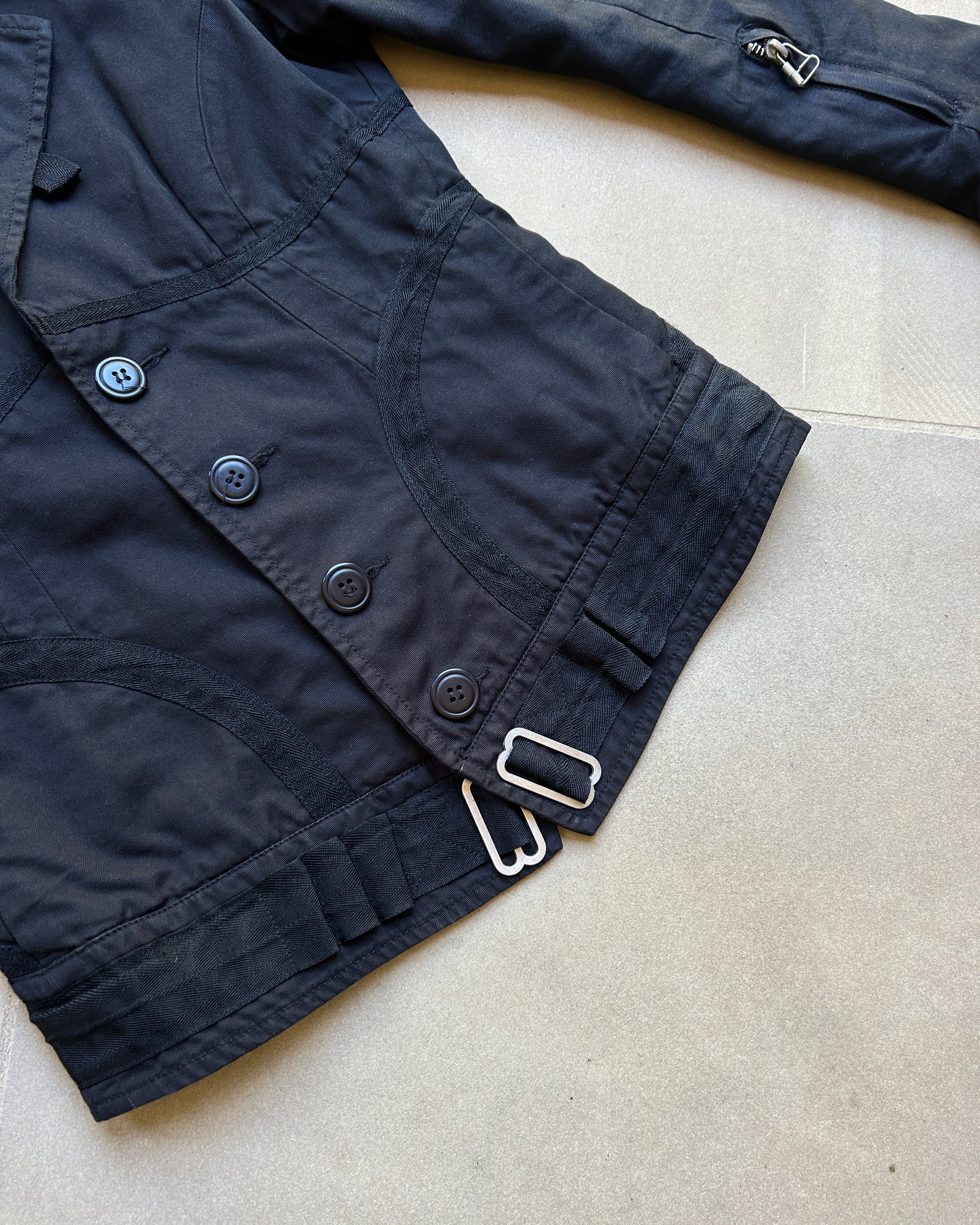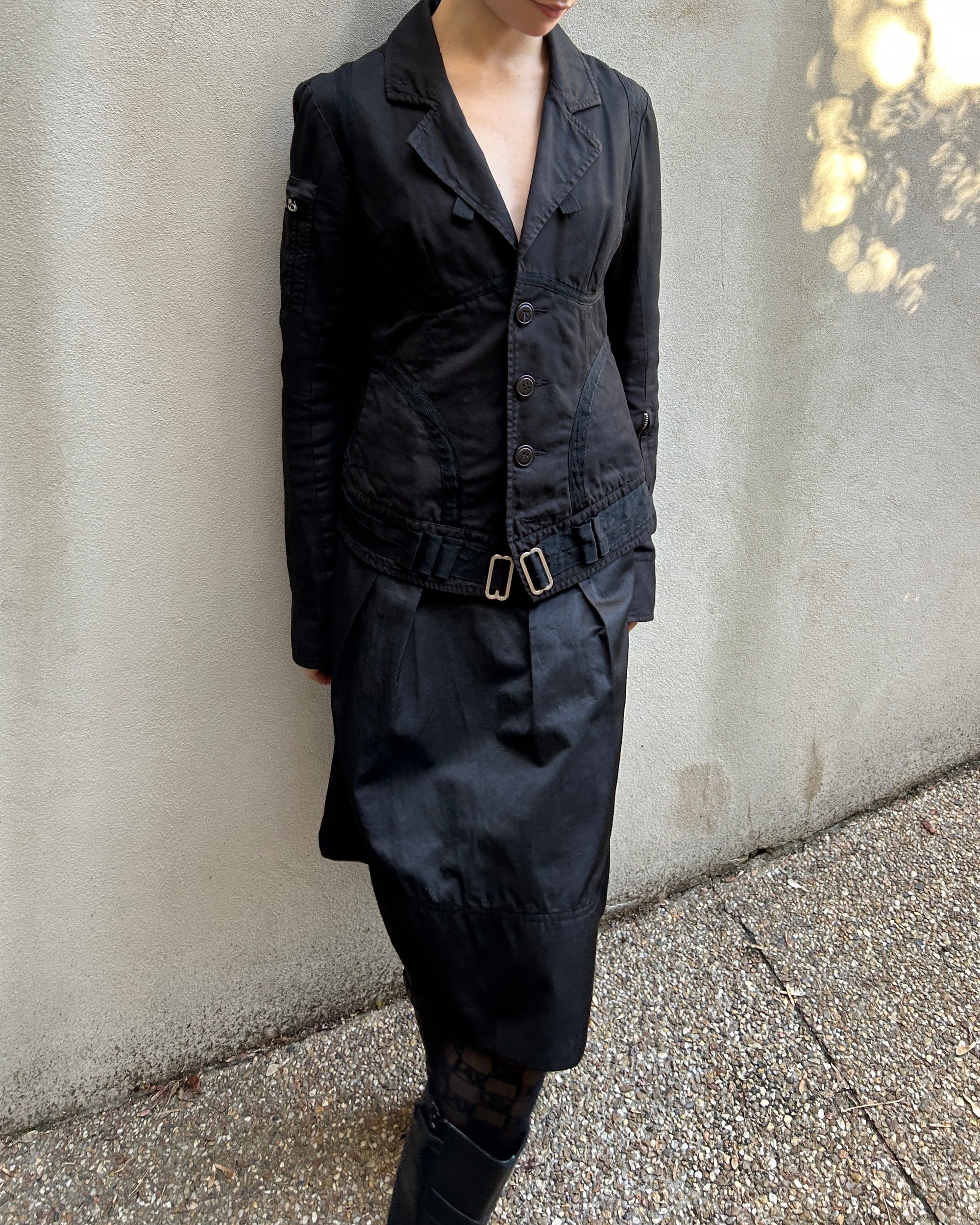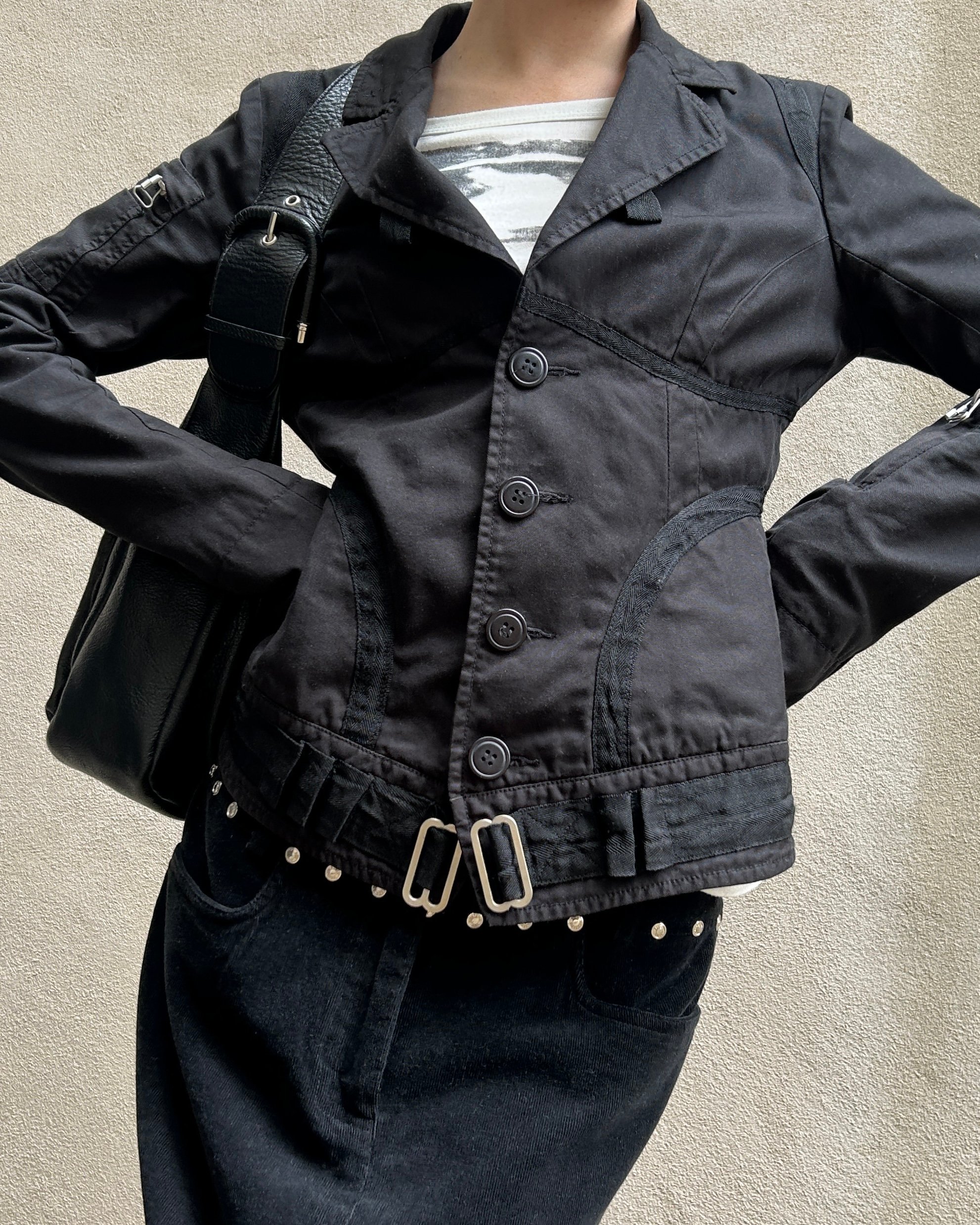 SIZE XS | Diesel black button-up fitted jacket with silver hardware.