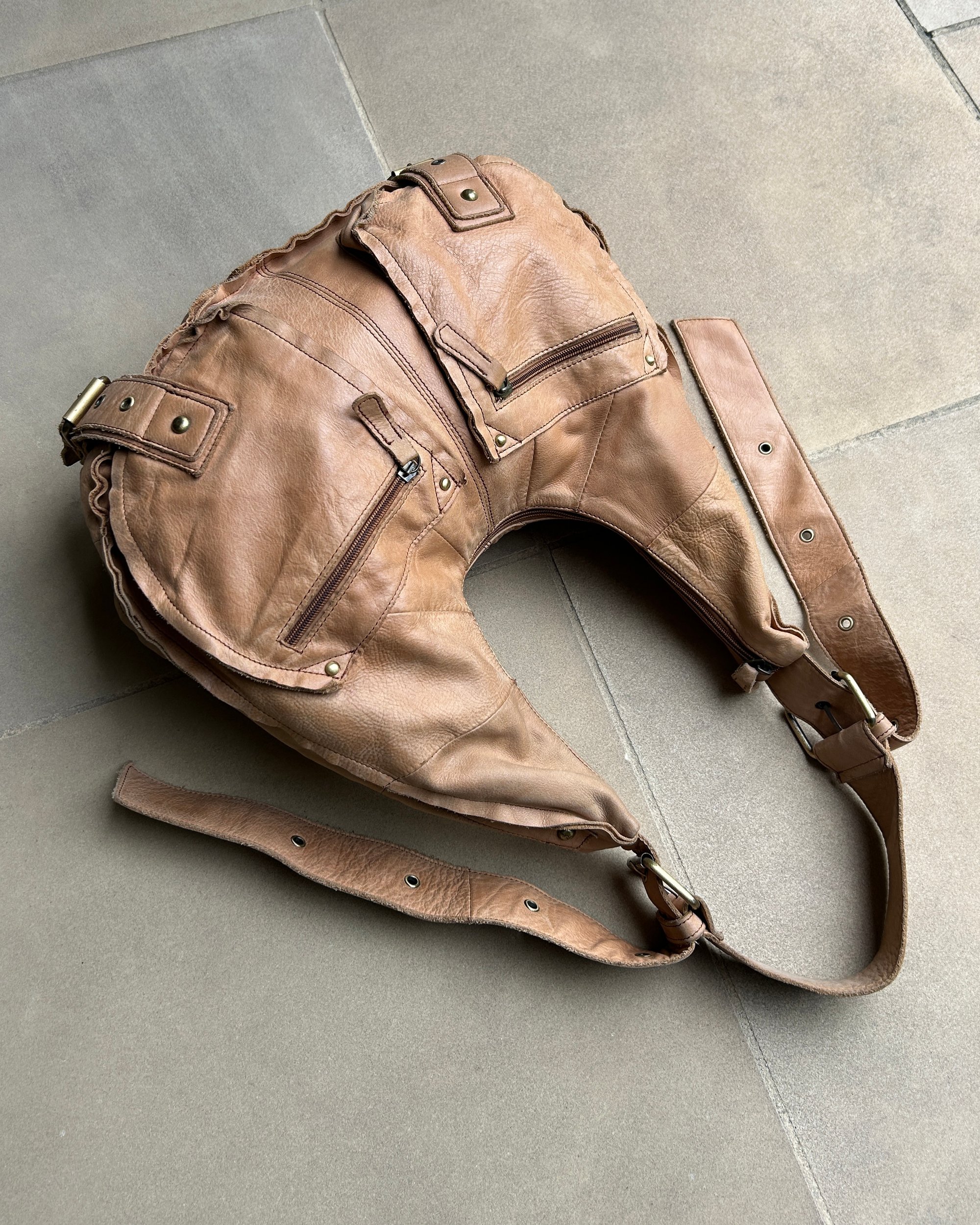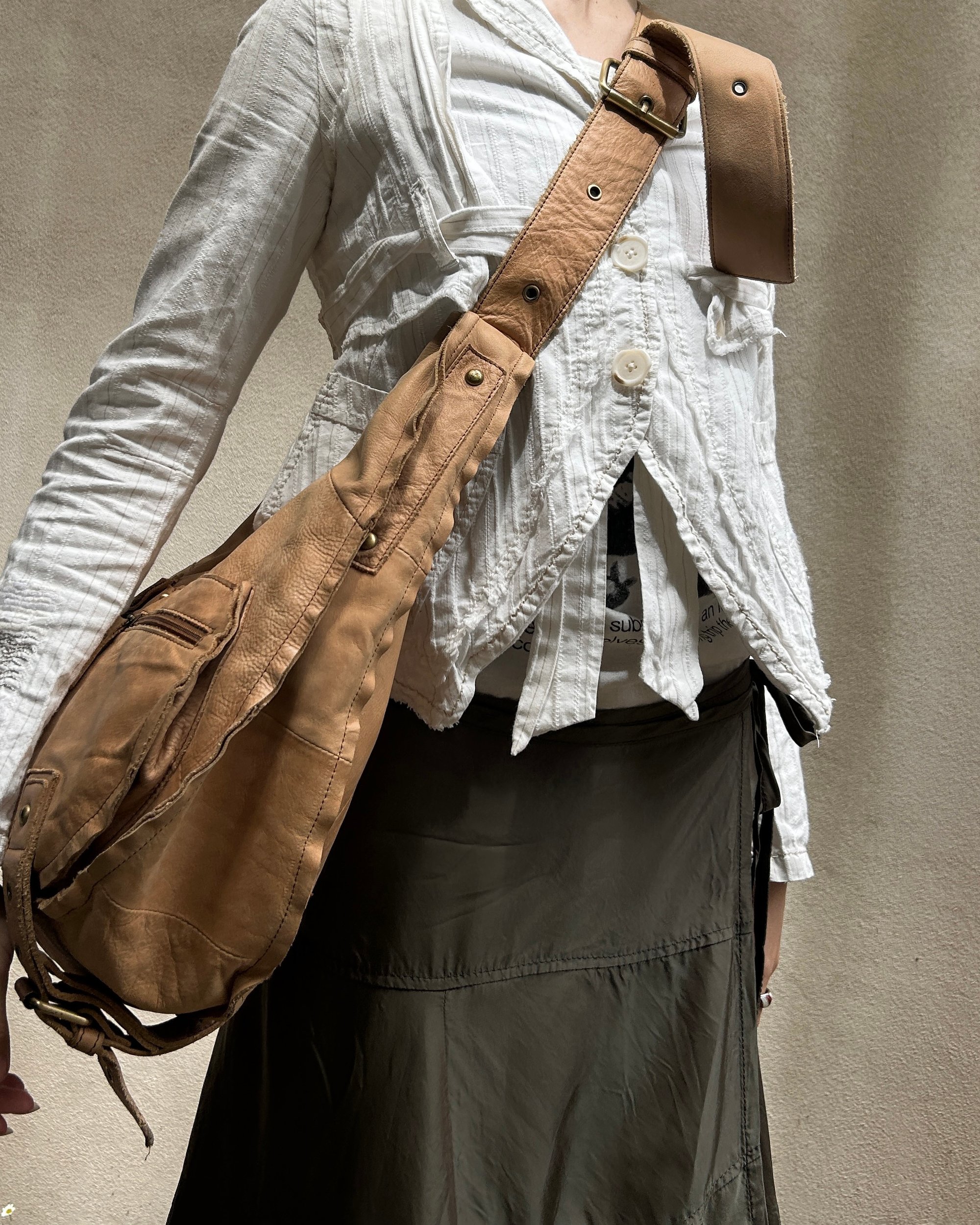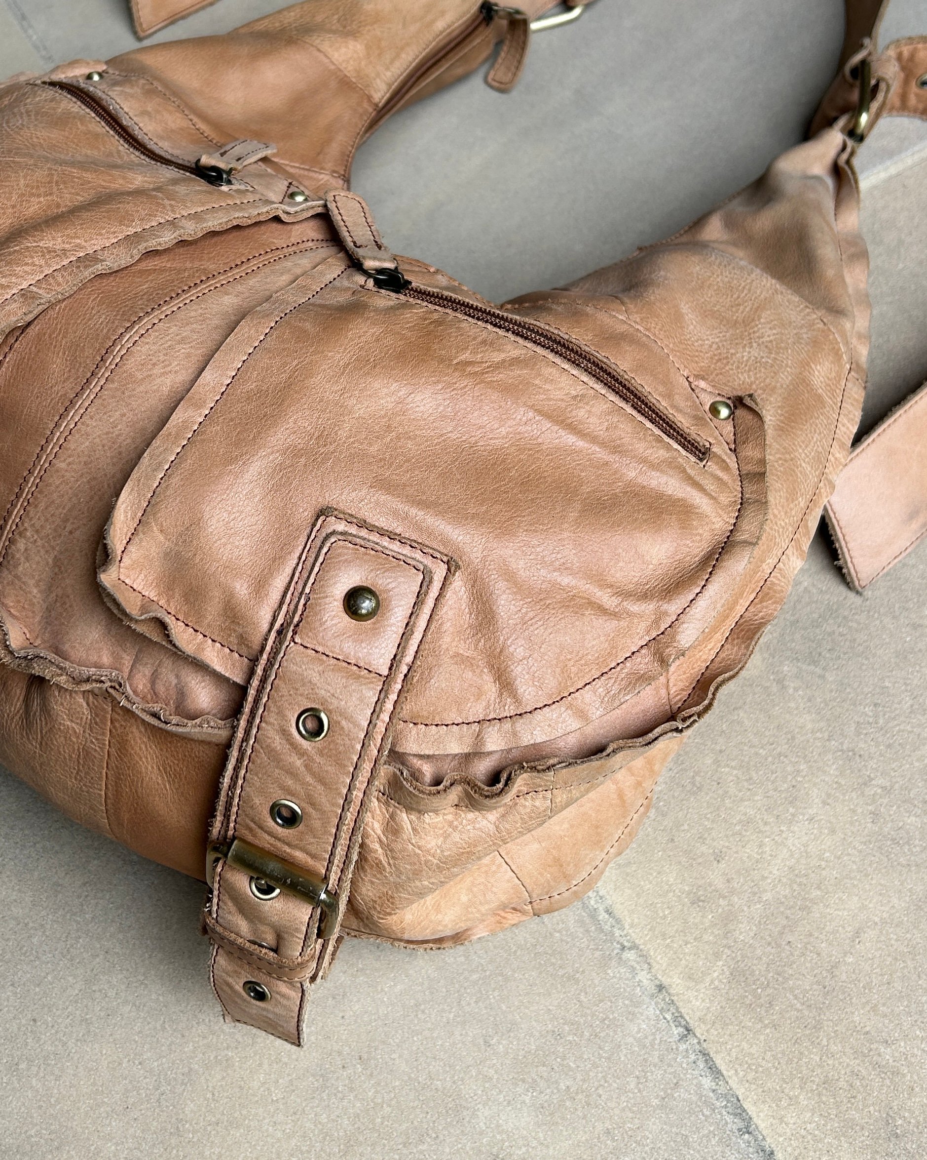 CARAMEL | Vintage genuine leather shoulder/crossbody bag with antique gold hardware and buckle accents.