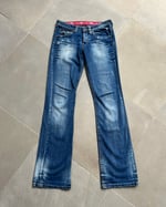 SIZE W 26" | Vintage distressed low-rise bootcut jeans.
