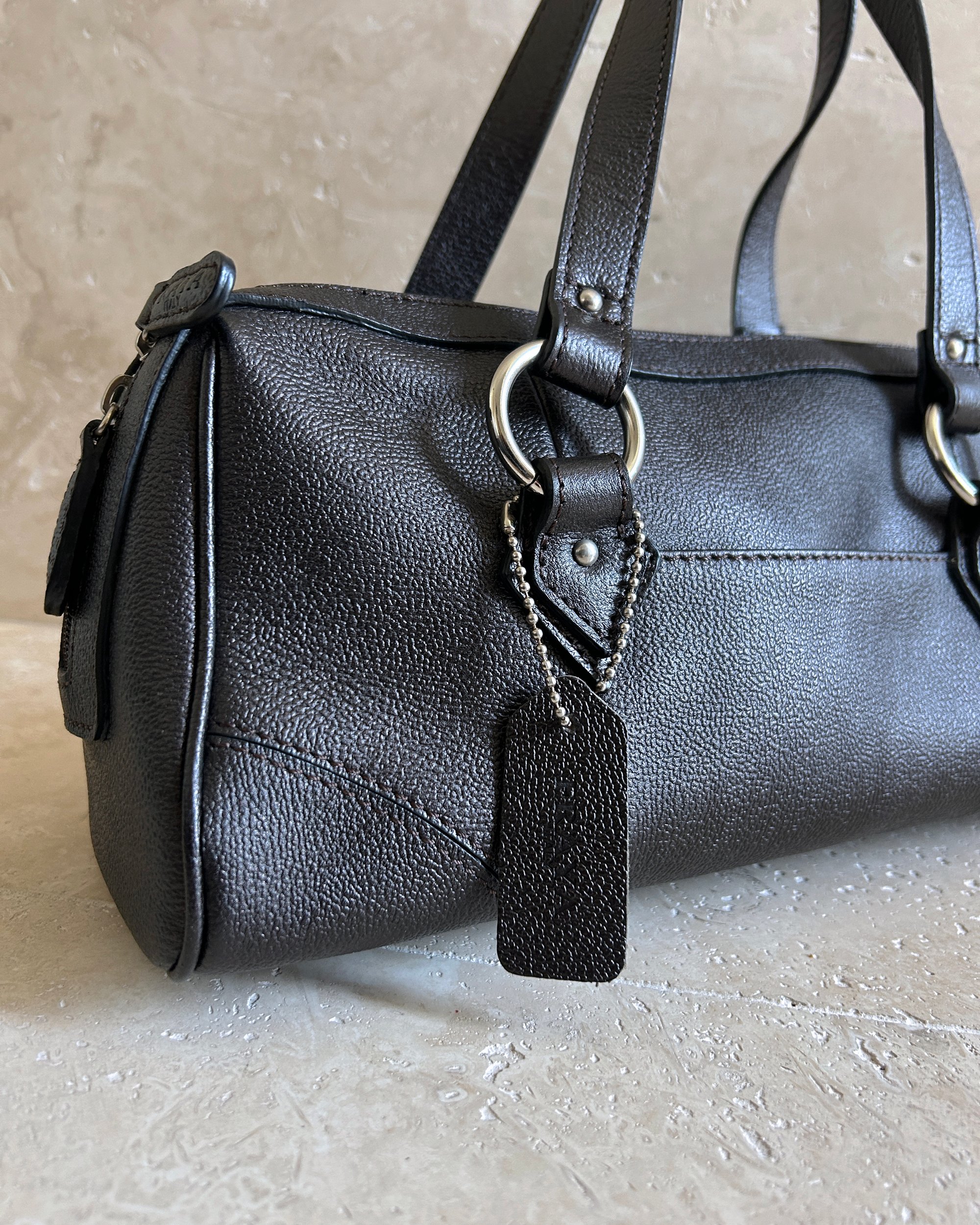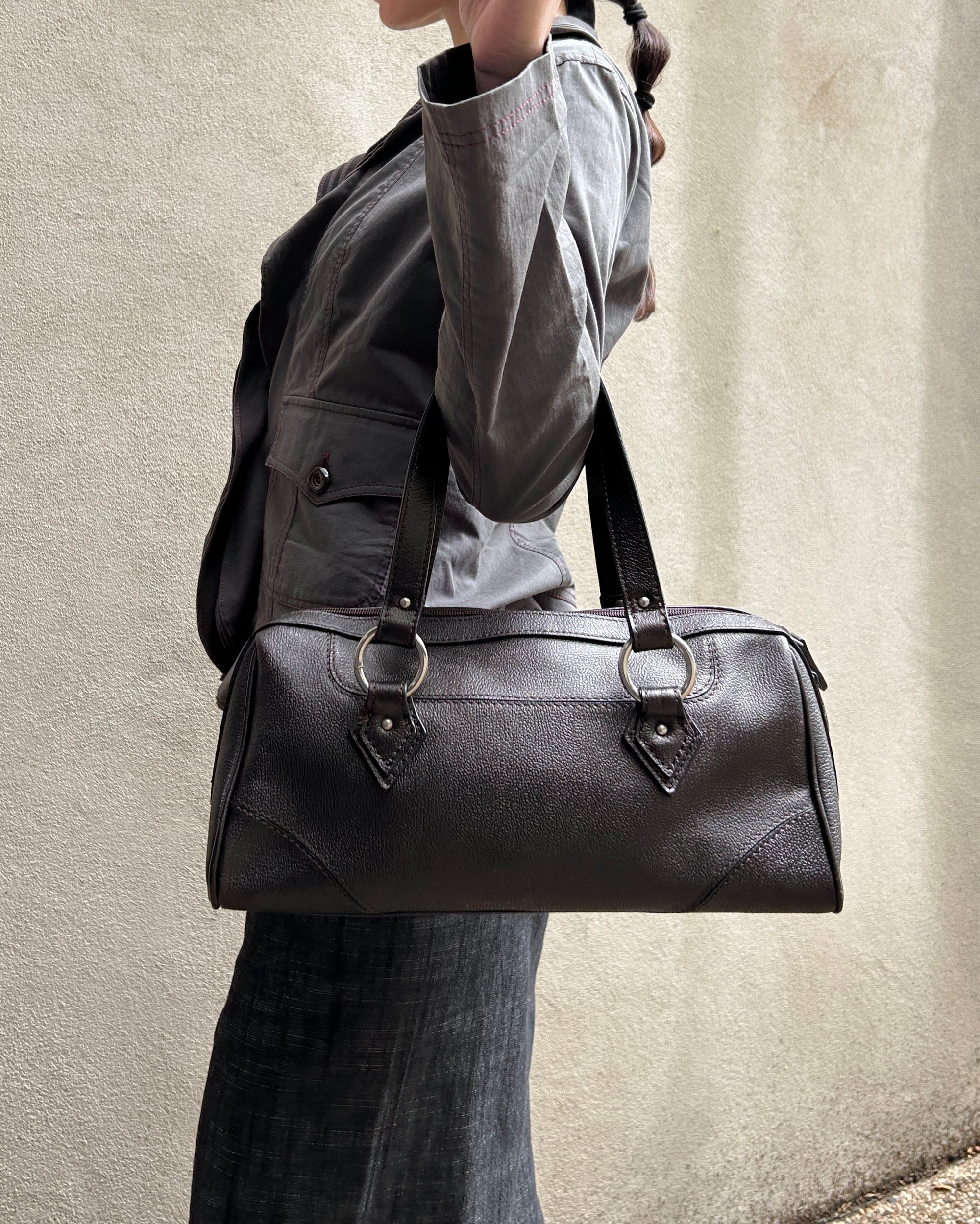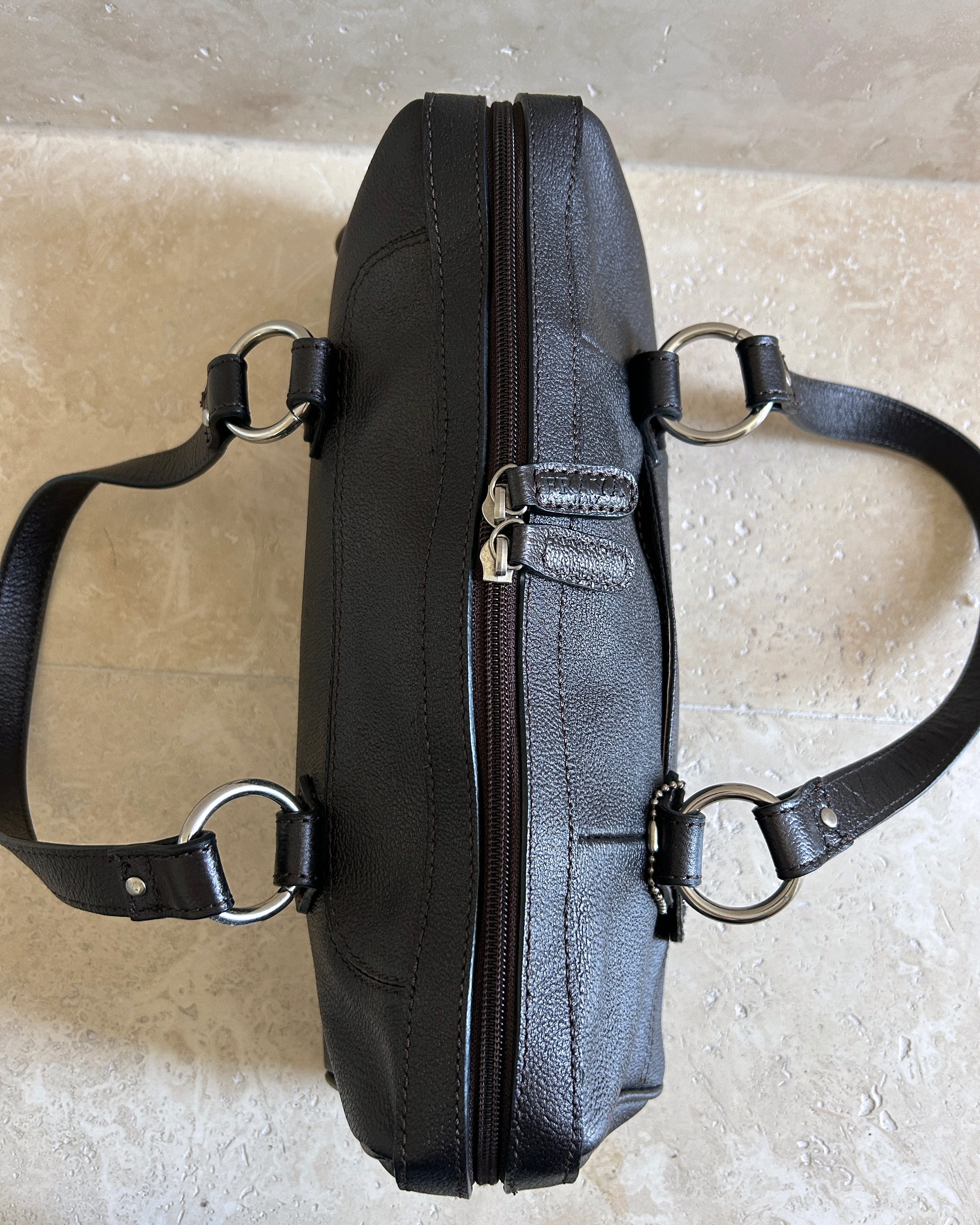 DEEP BROWN | Vintage Italian label genuine leather handbag with silver hardware.