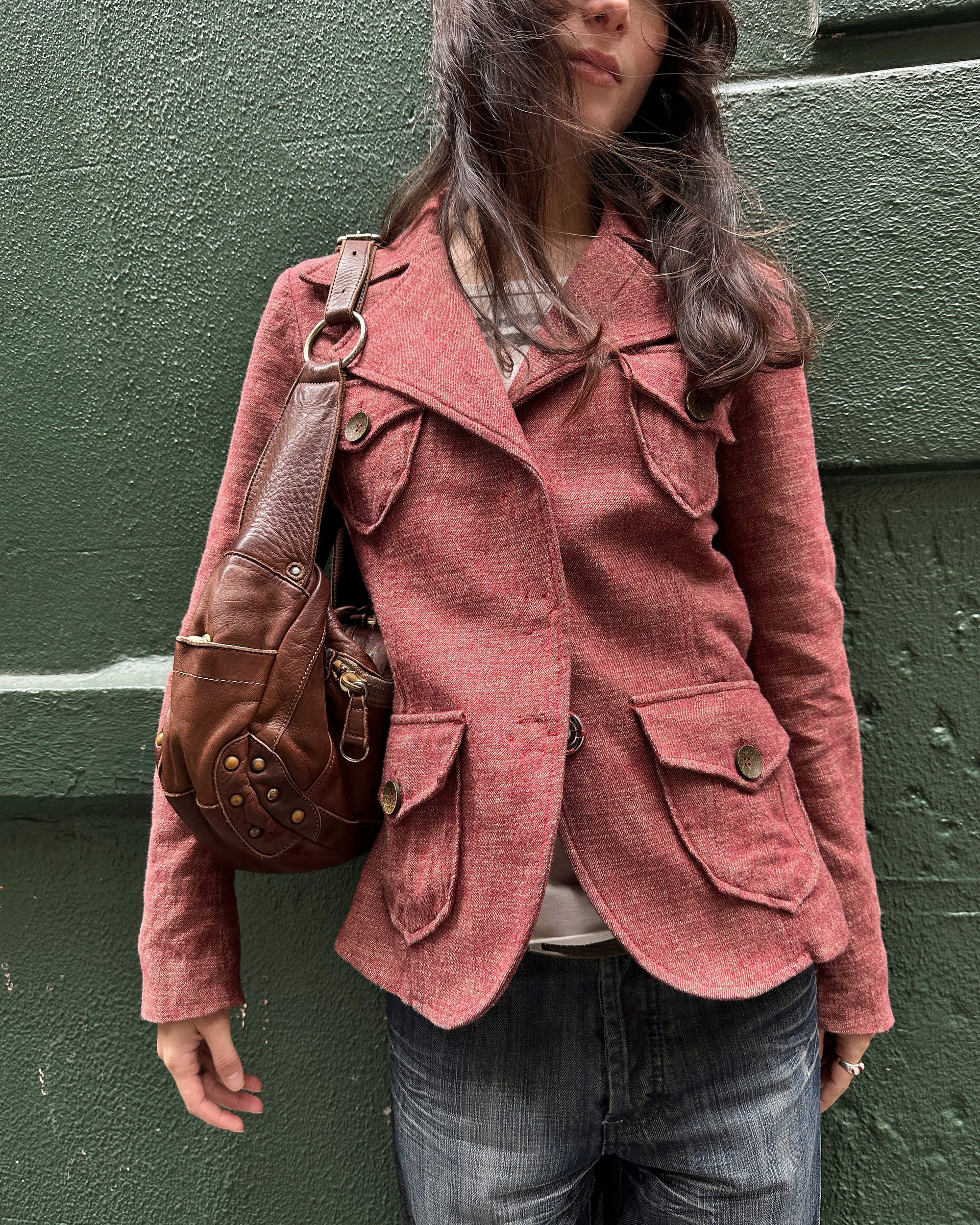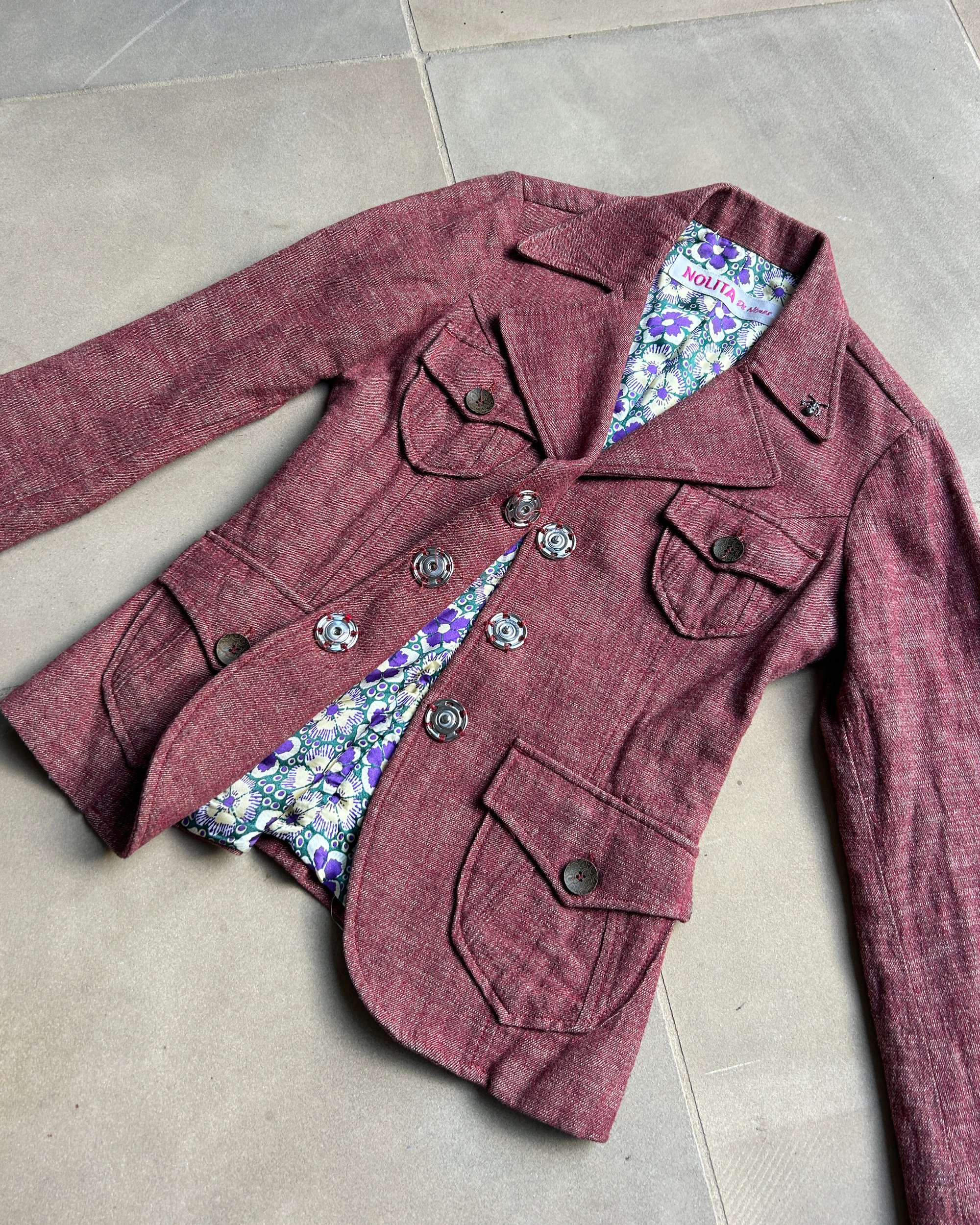 SIZE 40 | Vintage Italian designer wool-blend rusty red jacket.