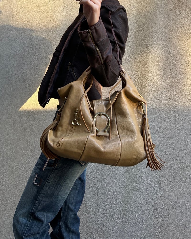 CARAMEL | Vintage early 2000's genuine leather slouchy bag with antique gold hardware.