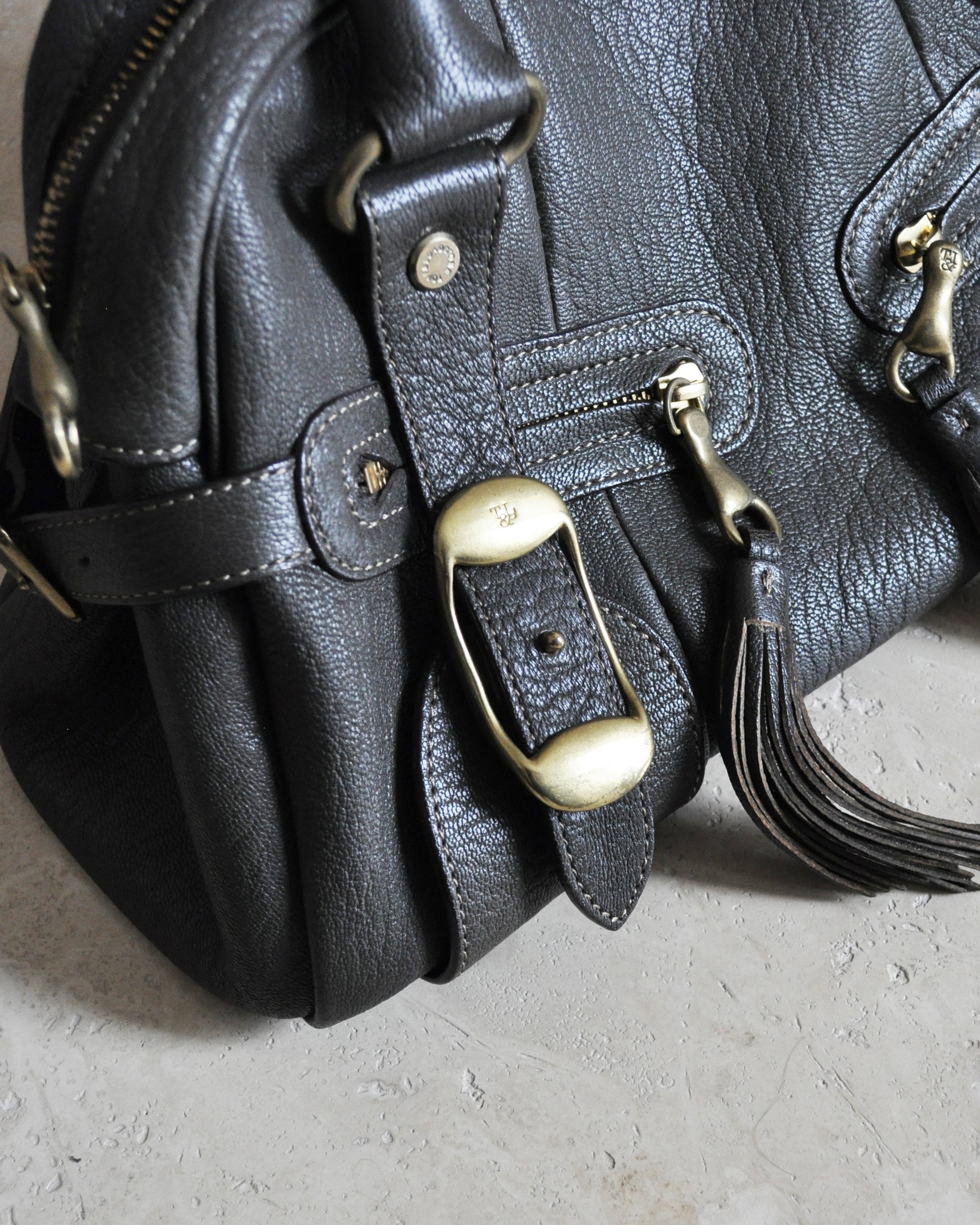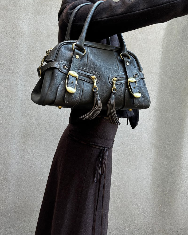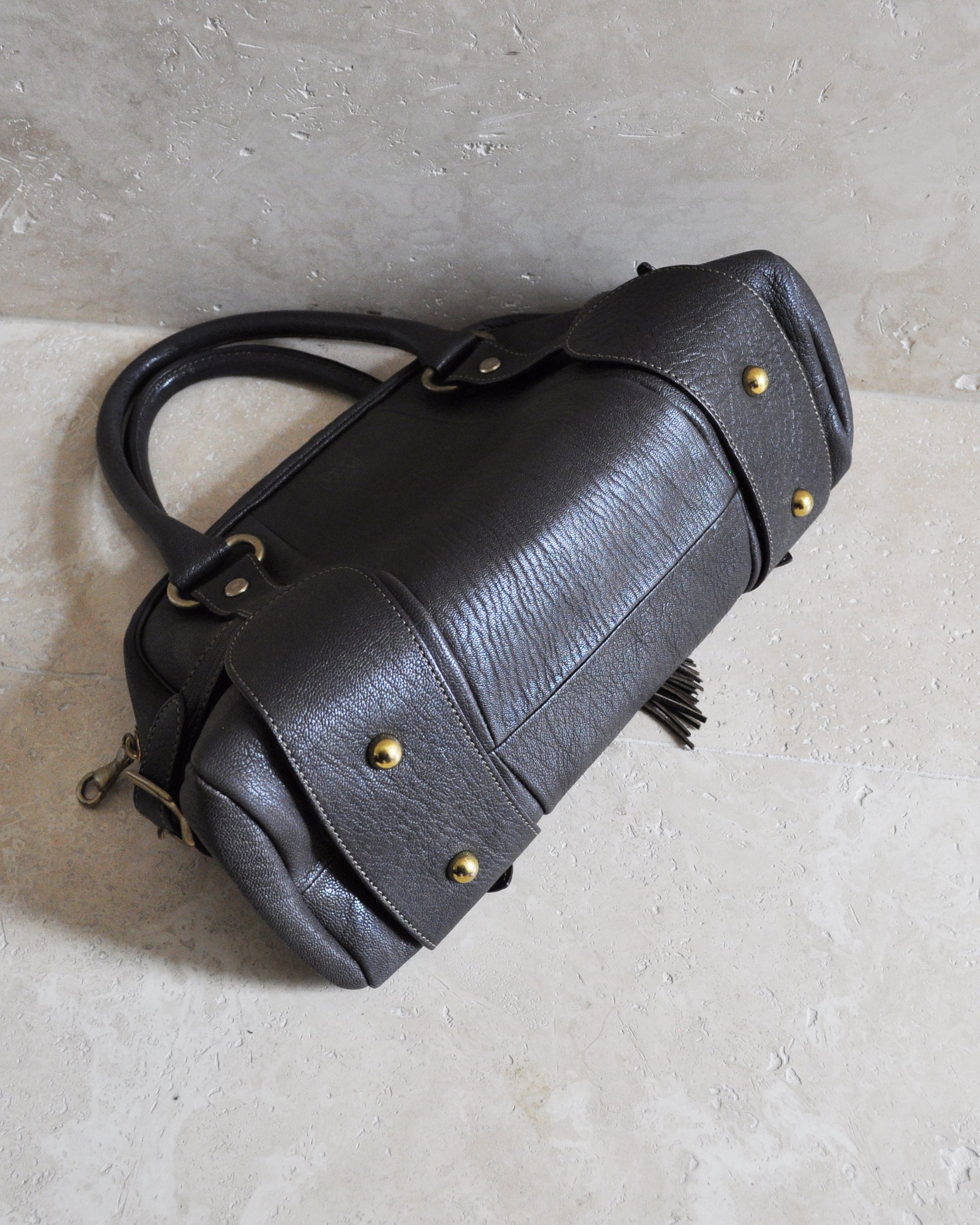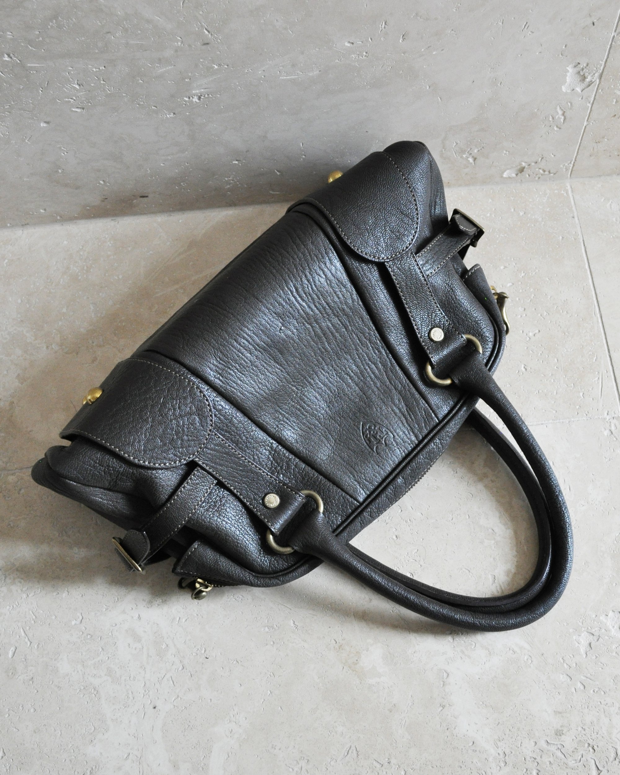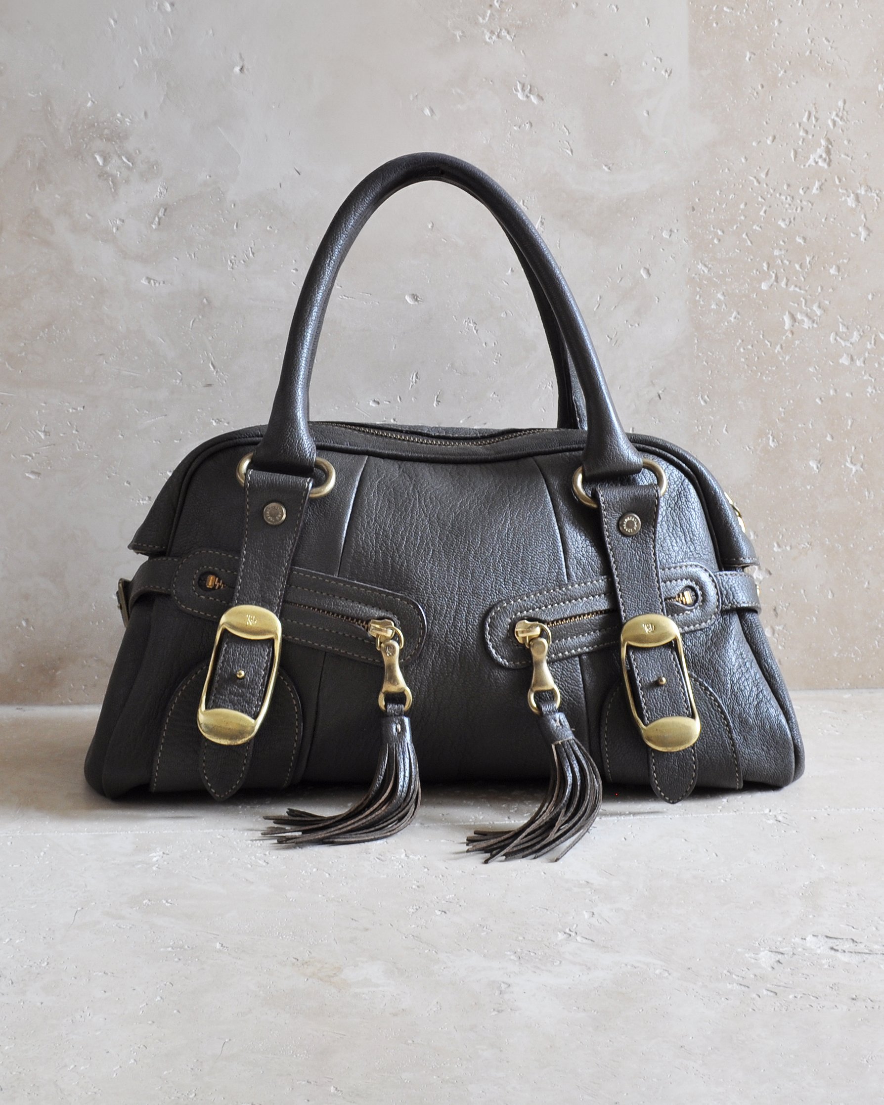 DARK TAUPE | Vintage early 2000's genuine leather bowling bag with antique gold hardware.