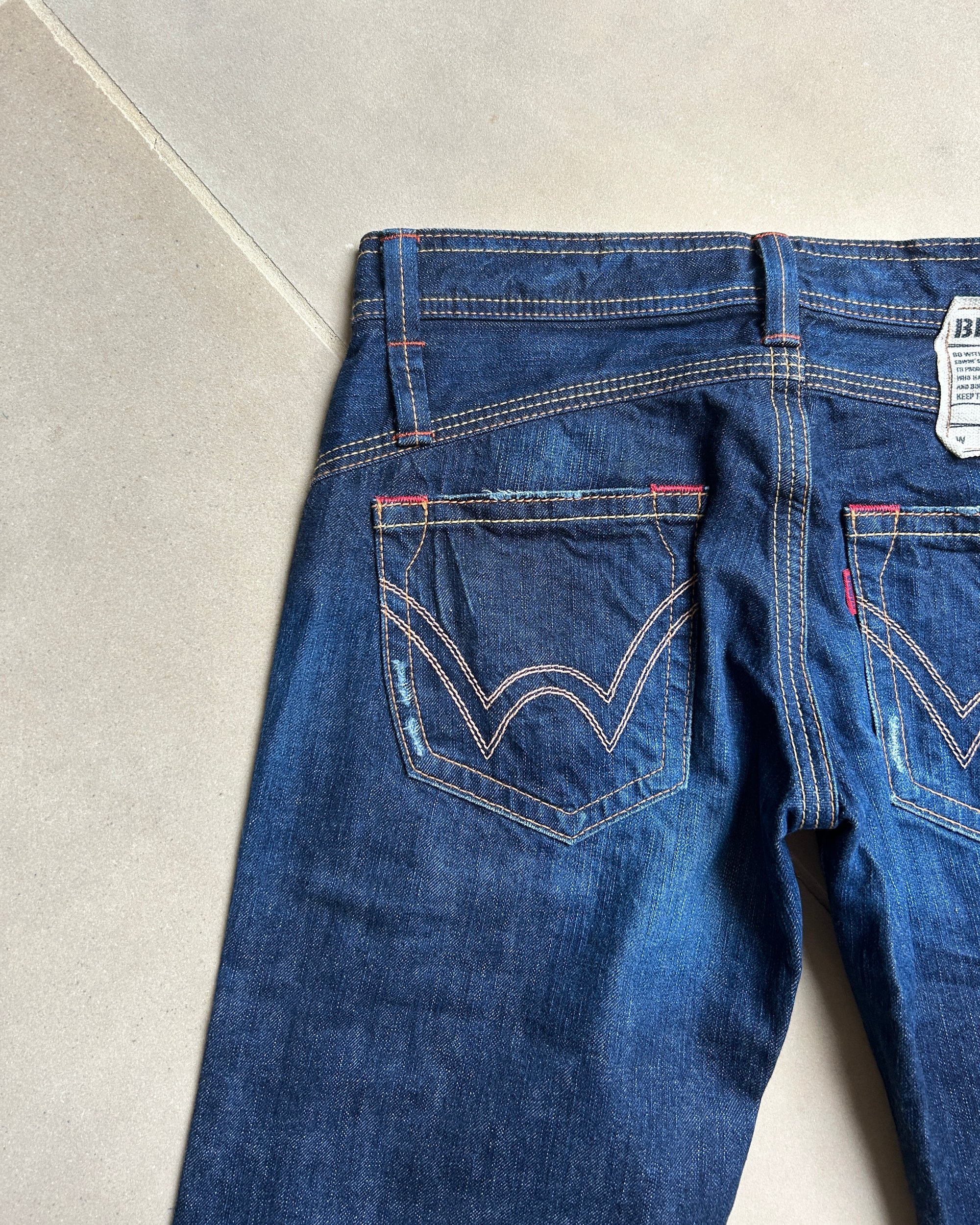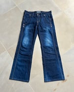 SIZE M | Vintage Japanese label wide leg dark wash jeans.