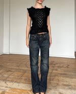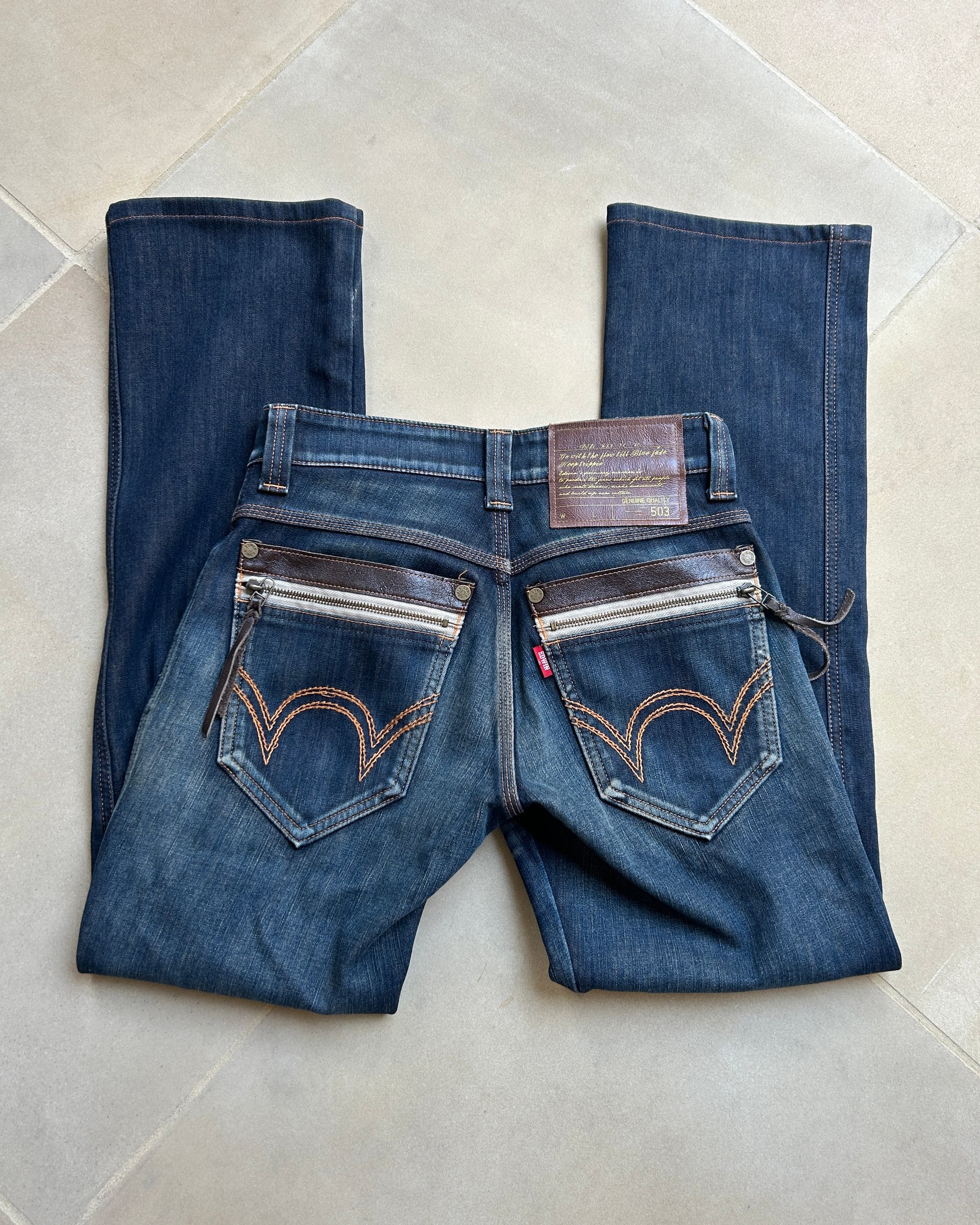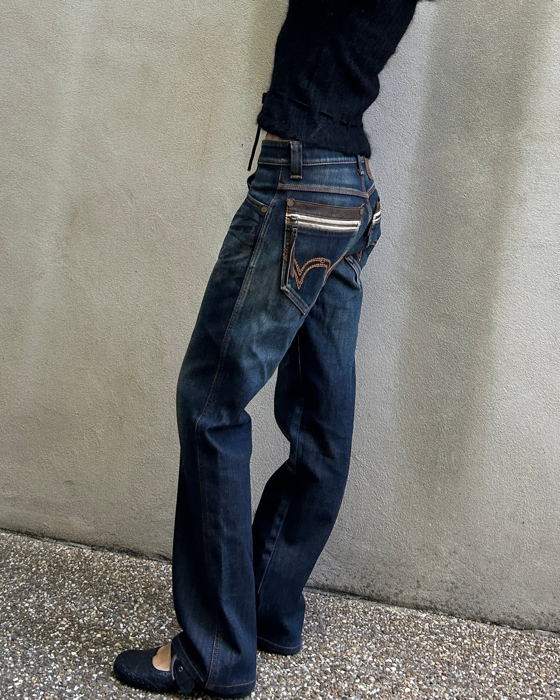 SIZE W 26" | Vintage Japanese label unisex dark wash jeans.