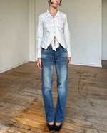 Mid-weight denim. 99% cotton, 1% polyurethane. Pictured on a size 6, 170cm tall.