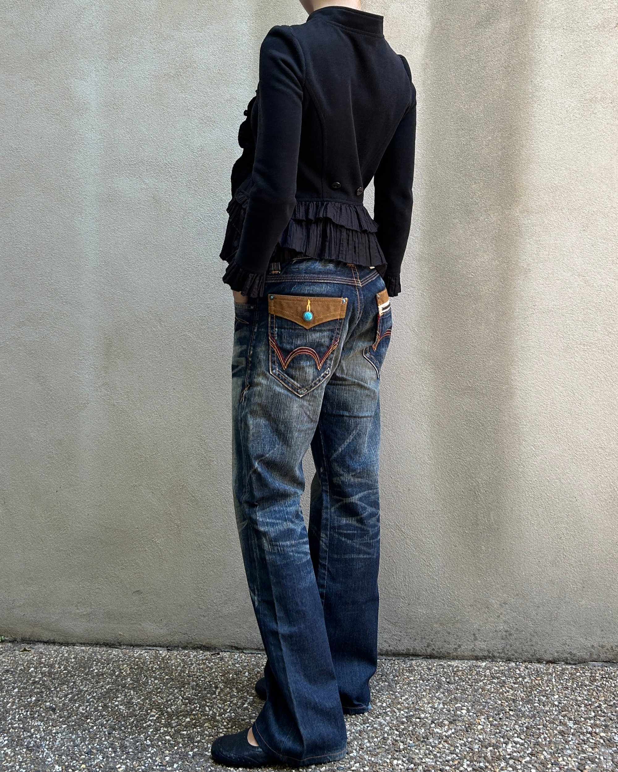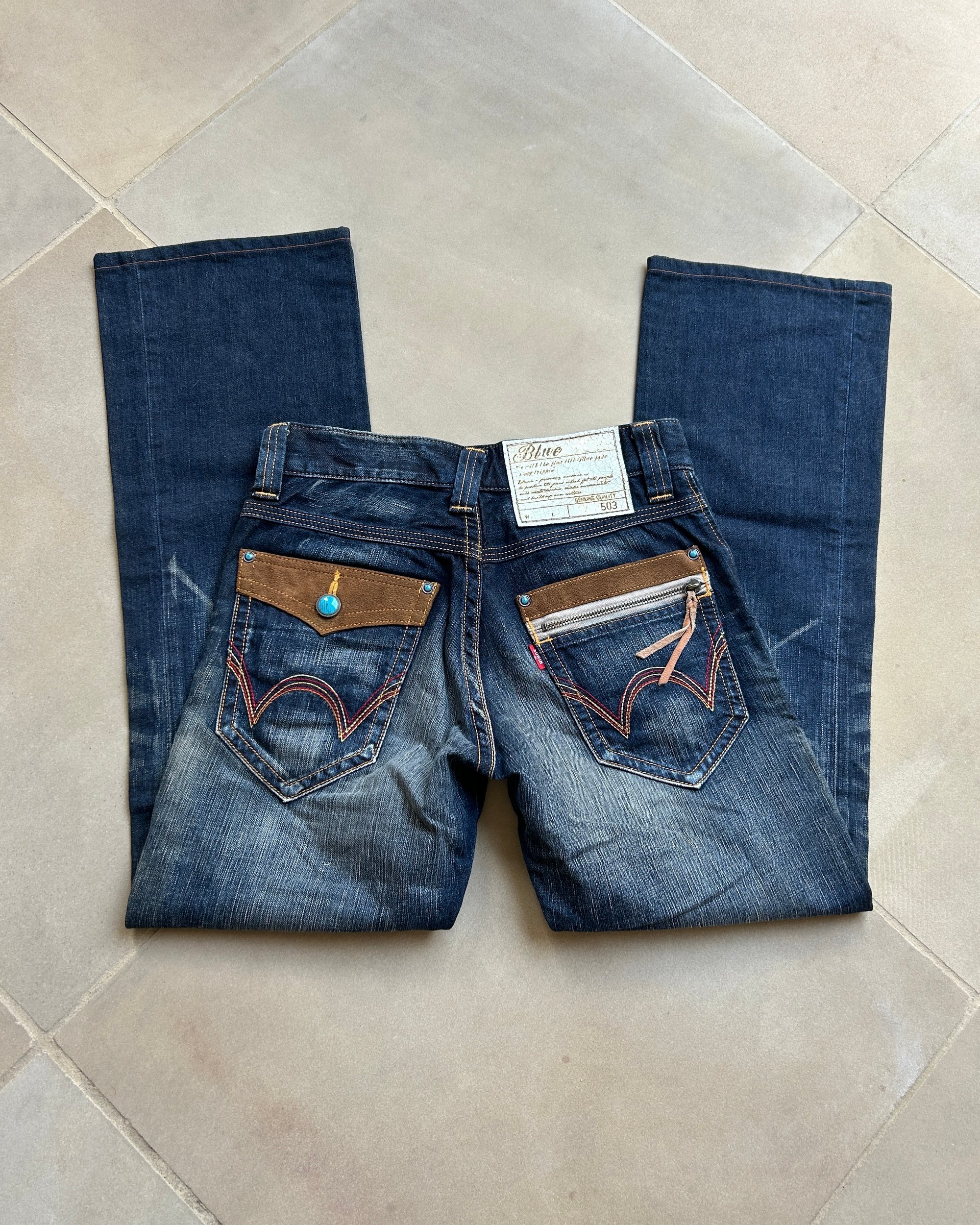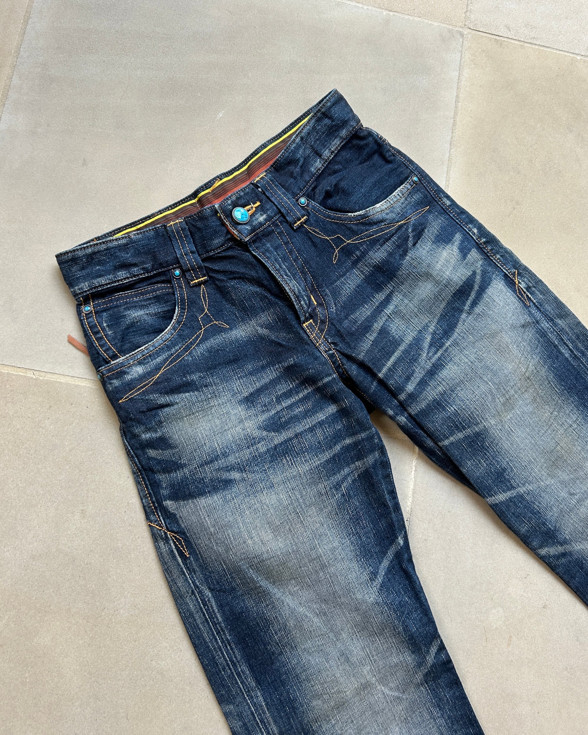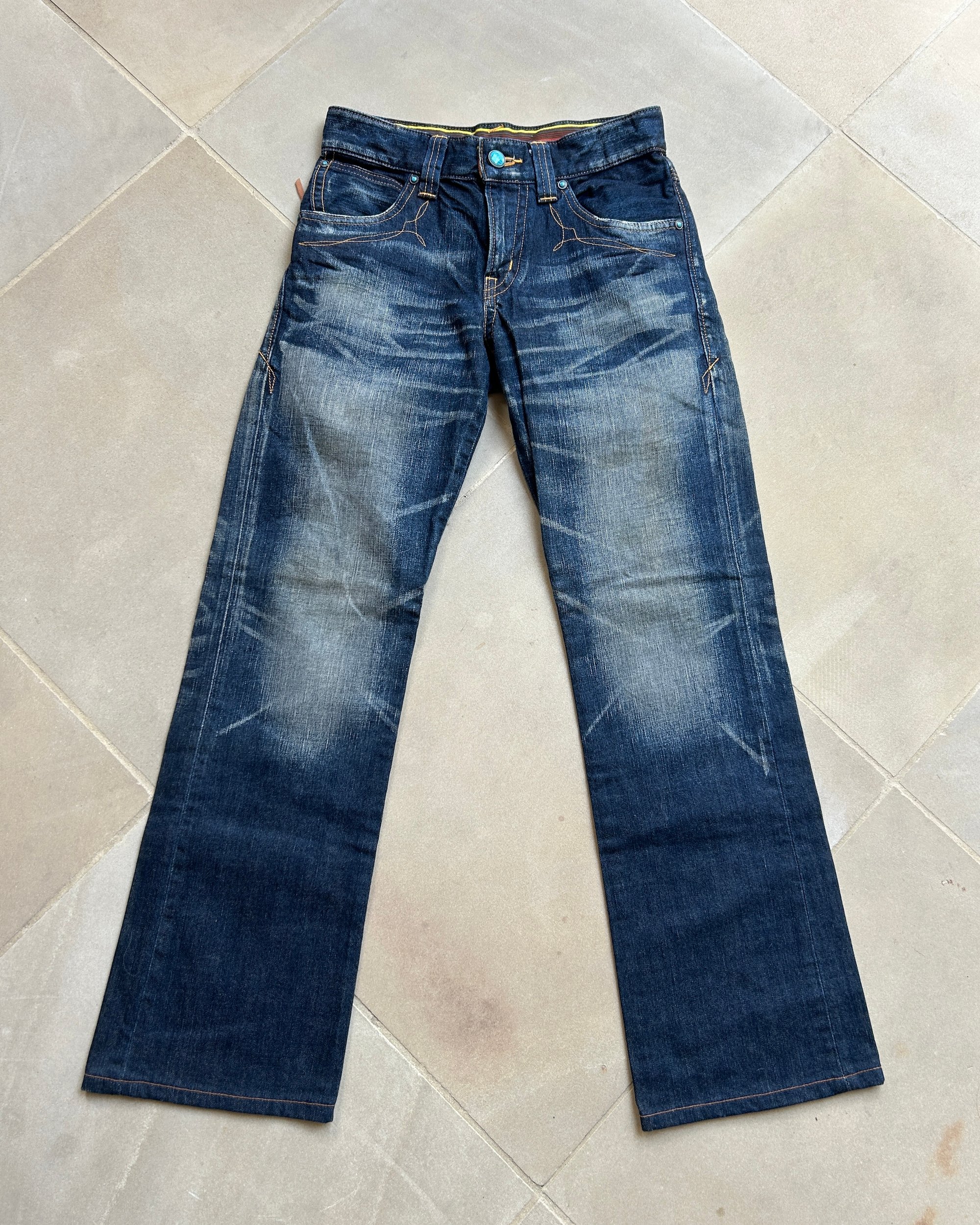 SIZE W 28" | Vintage Japanese label unisex dark wash jeans.