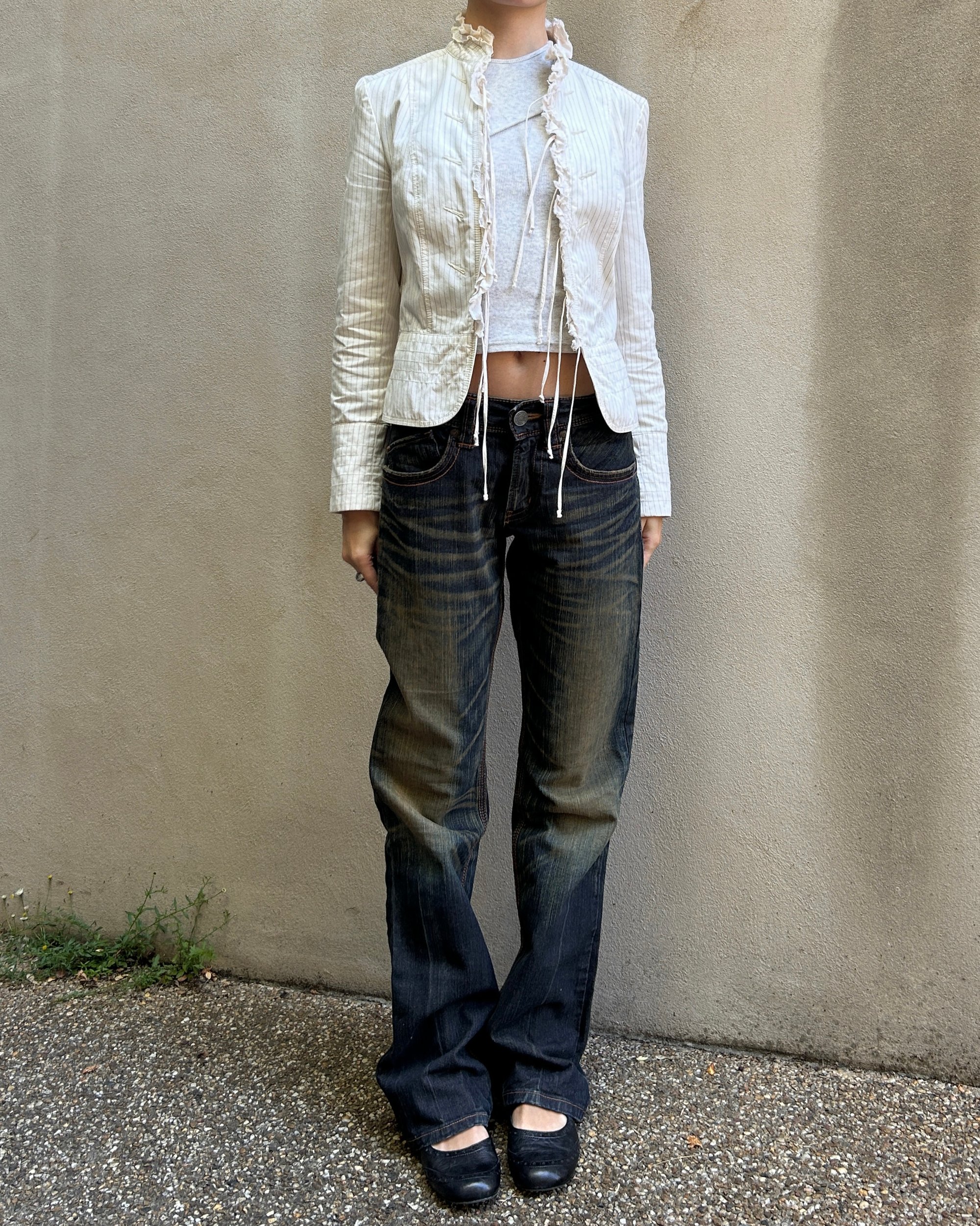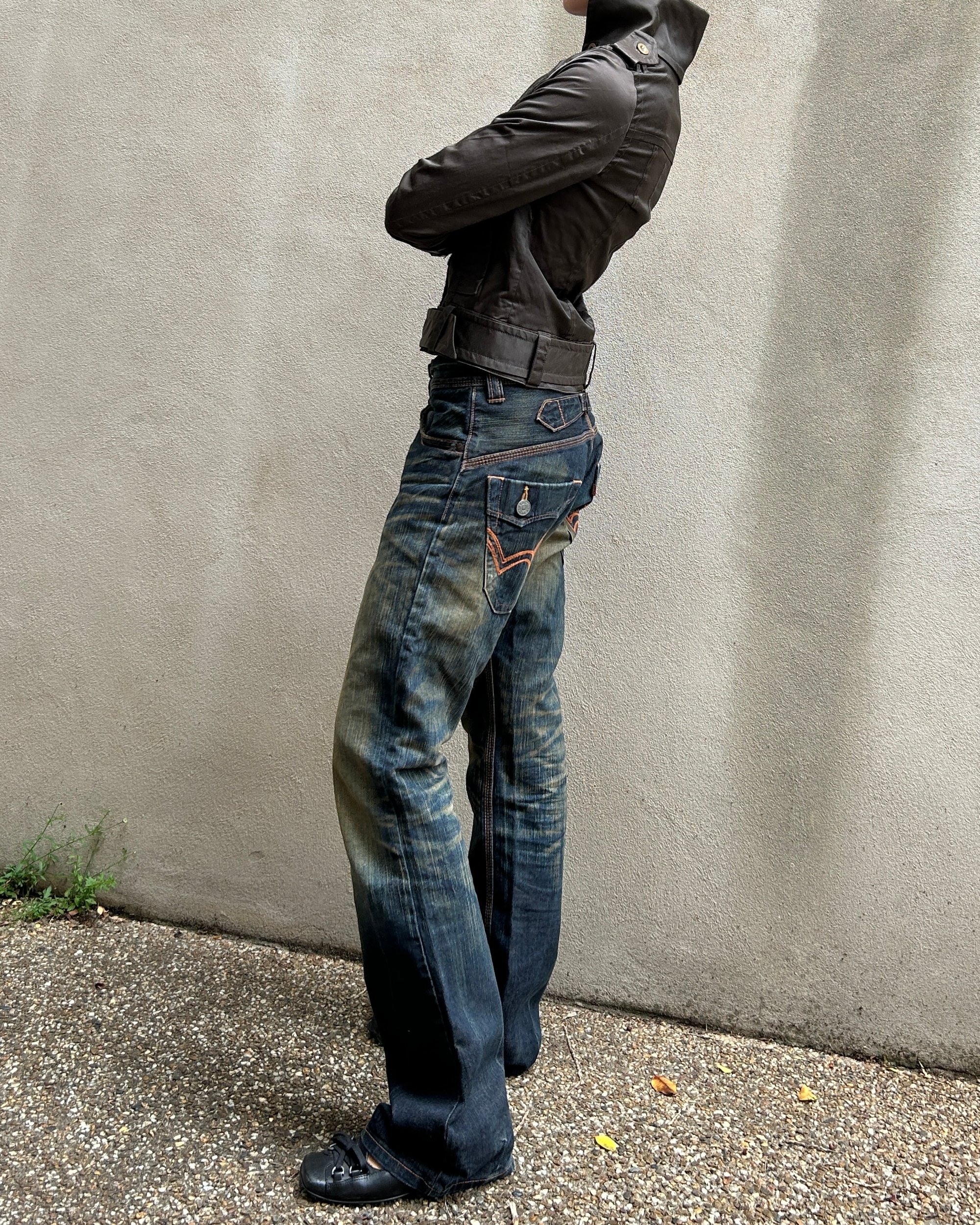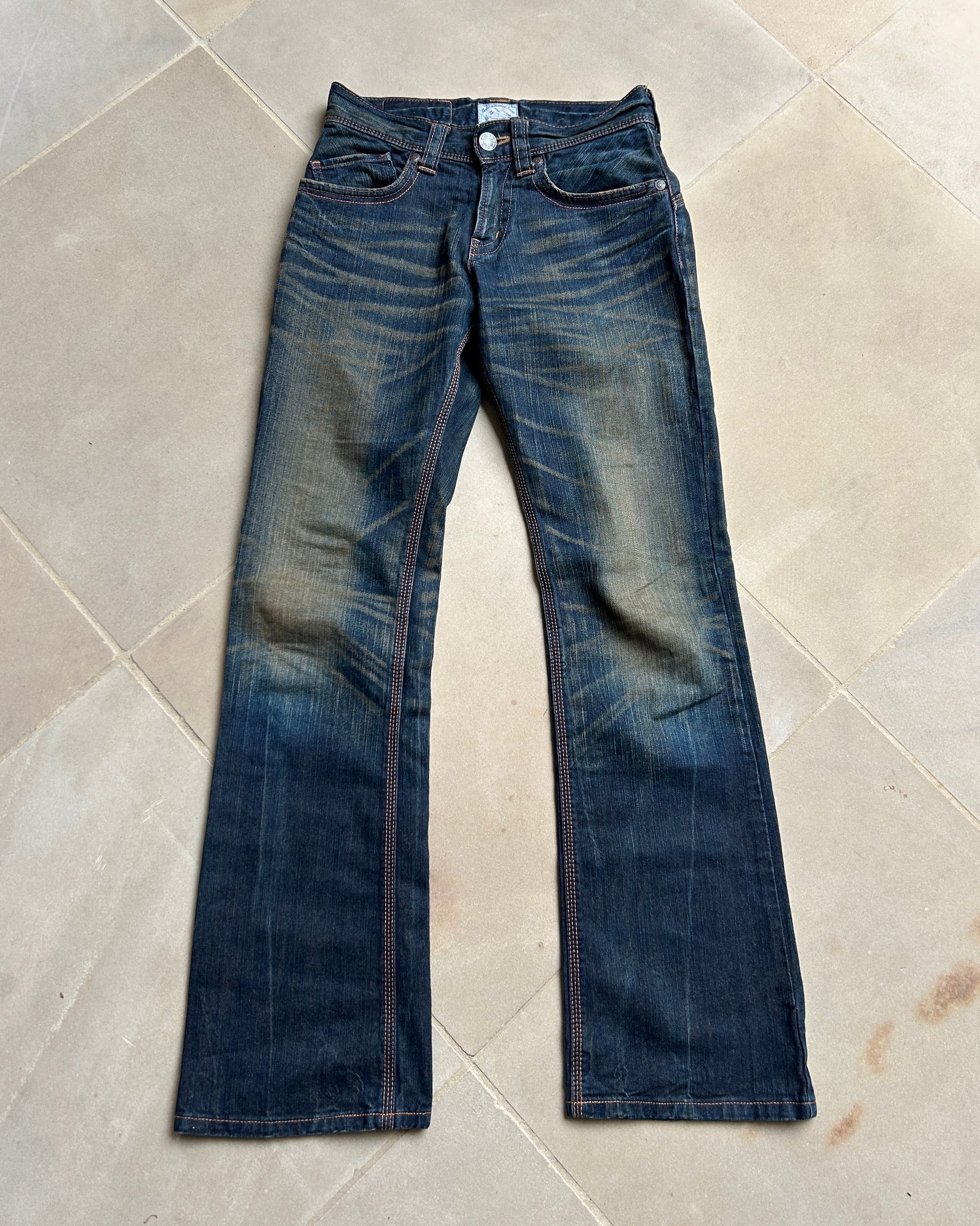 SIZE W 26" | Vintage Japanese label unisex dark wash jeans with adjustable buckle back.