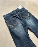 SIZE W 30" | Vintage Japanese label unisex barrel leg jeans with a buckle-back.
