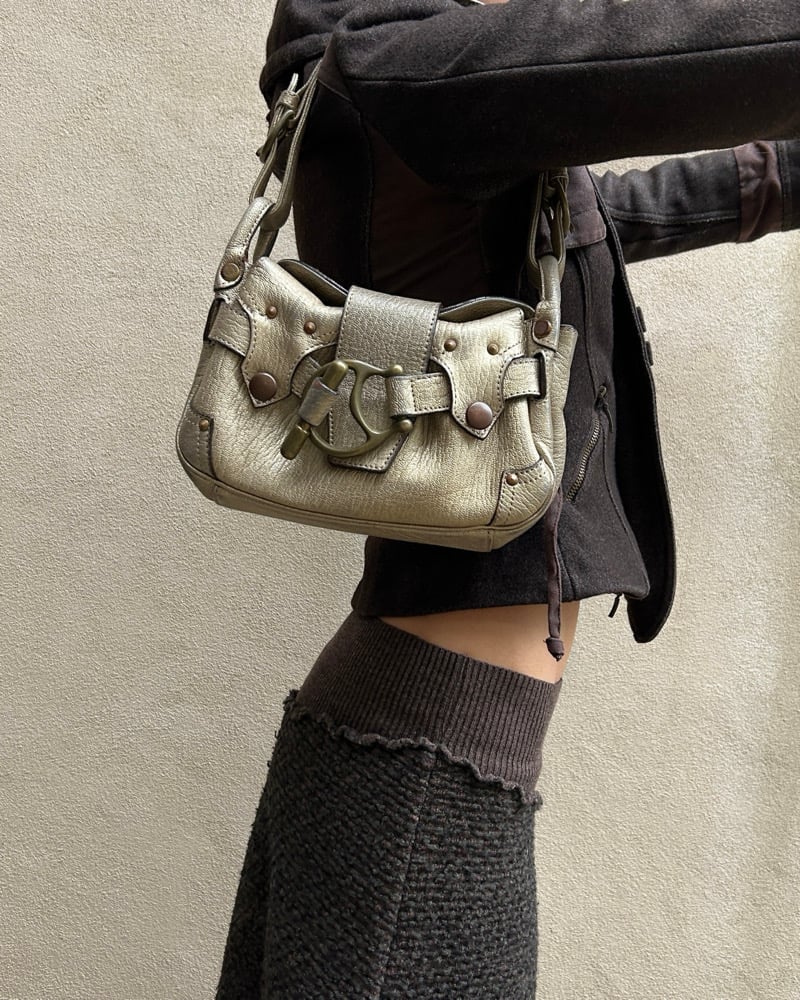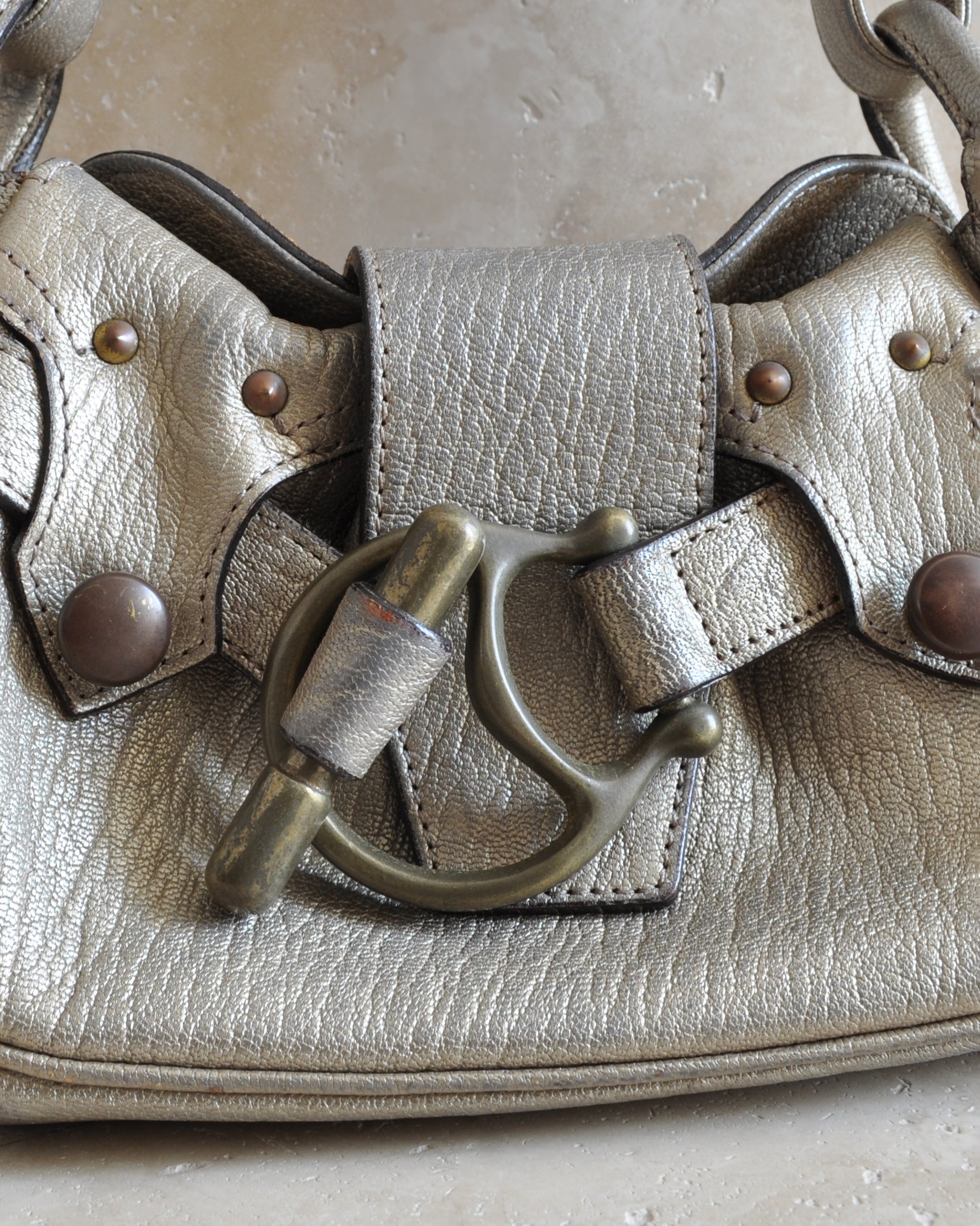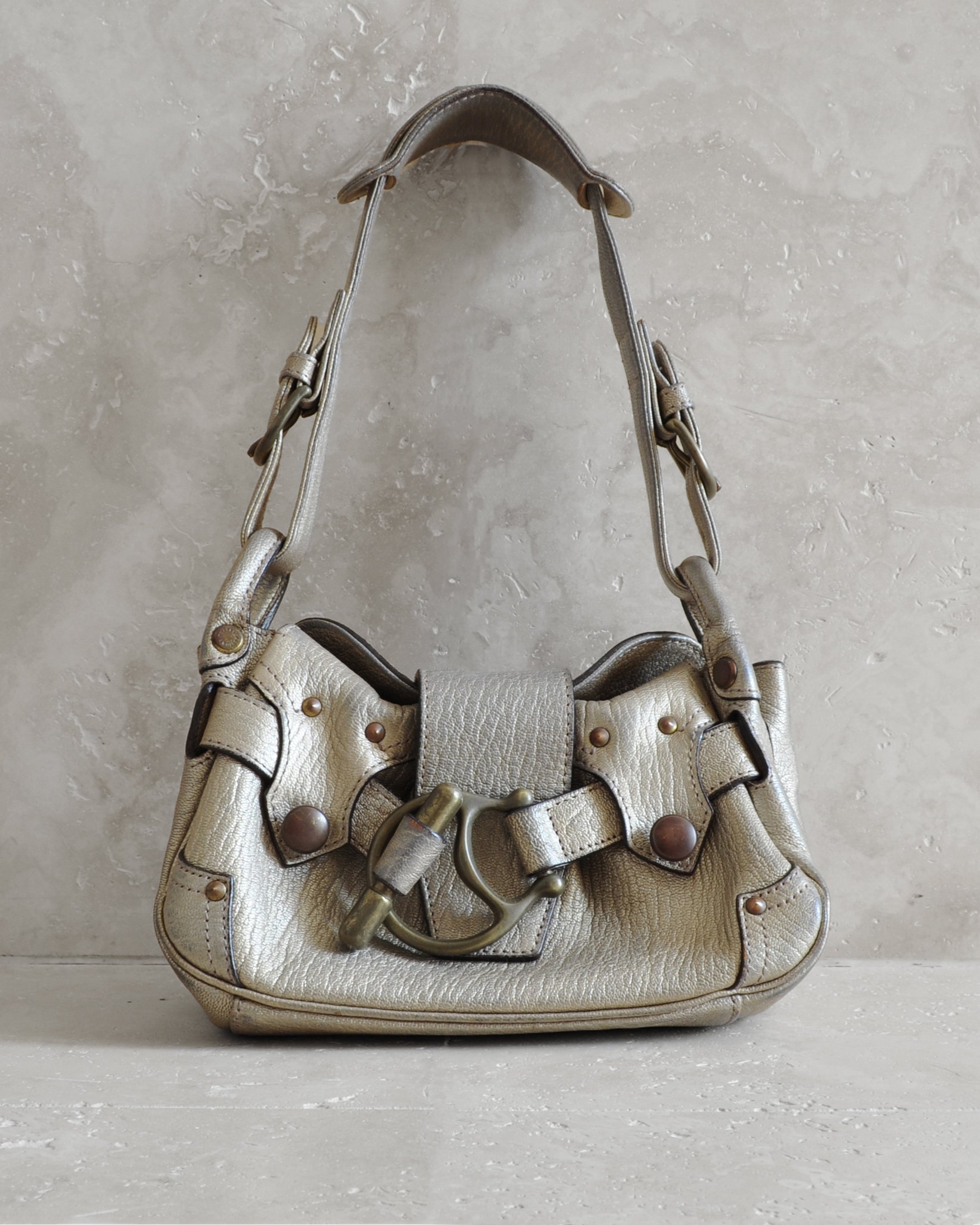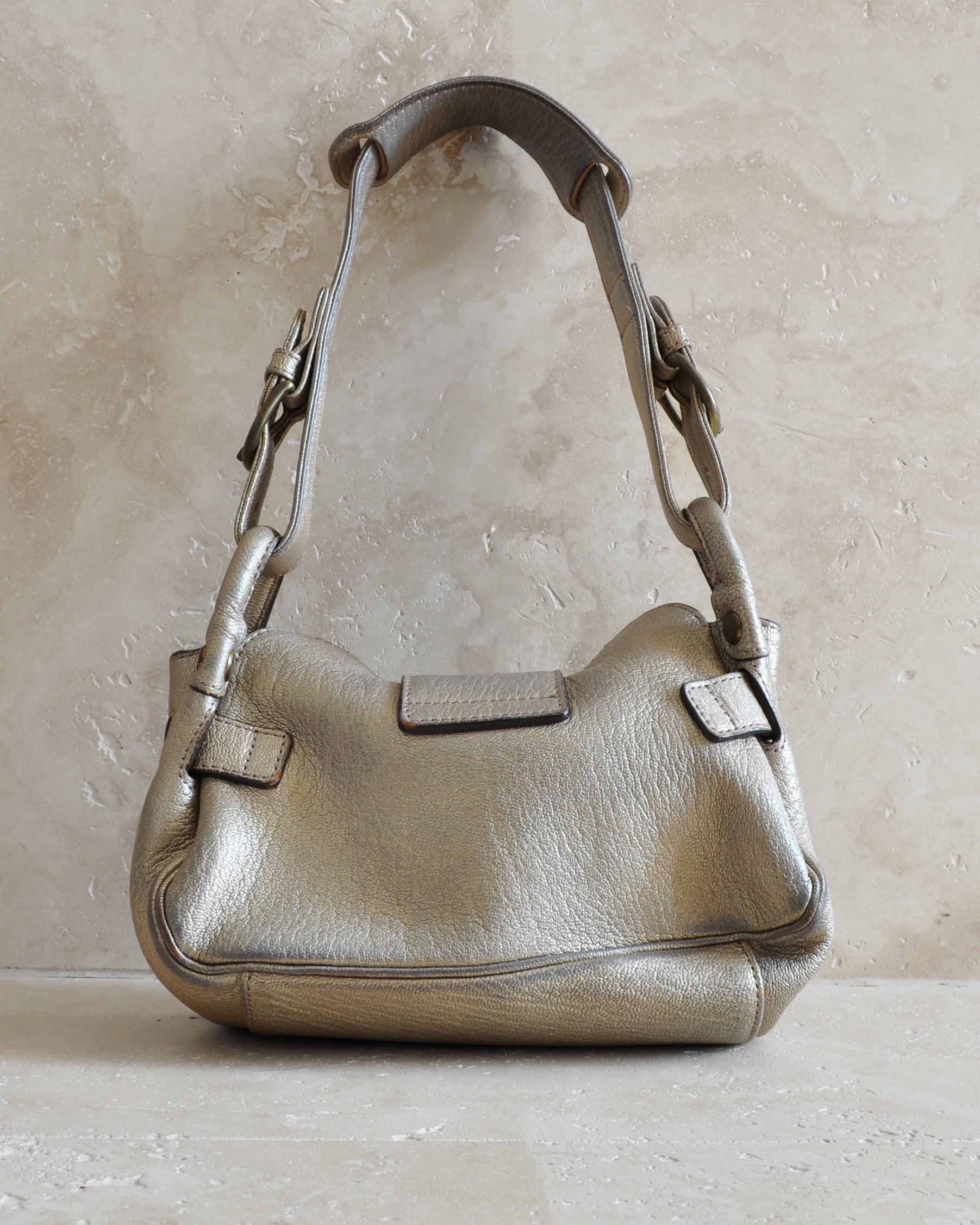 MUTED GOLD | Vintage early 2000's genuine leather mini shoulder bag with antique gold hardware.