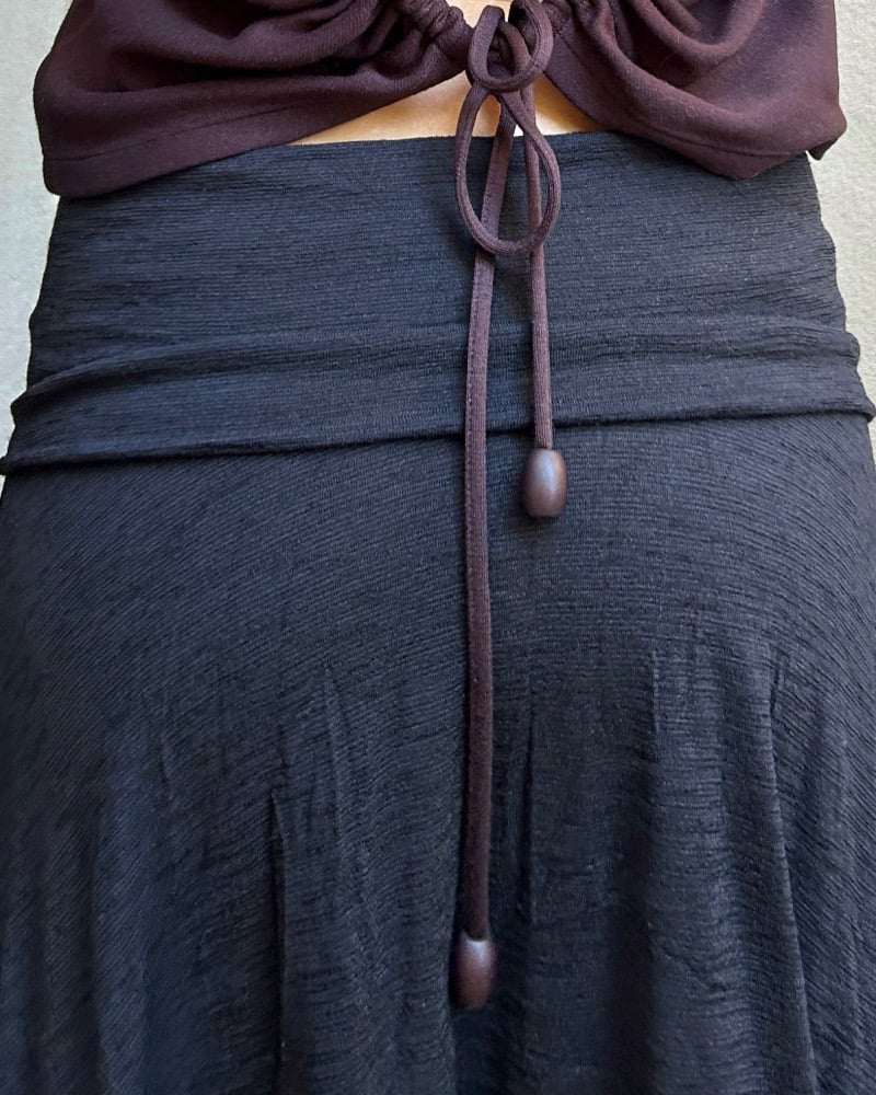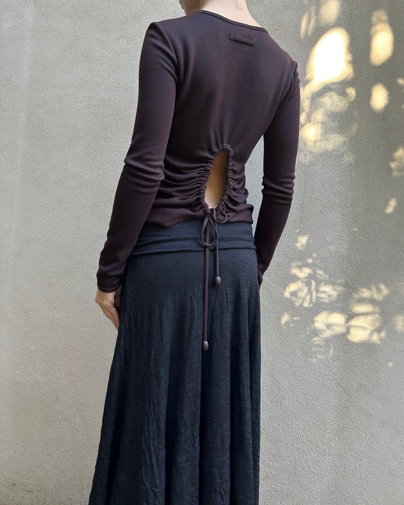 Cut-out lower back with drawstring and bead detail.