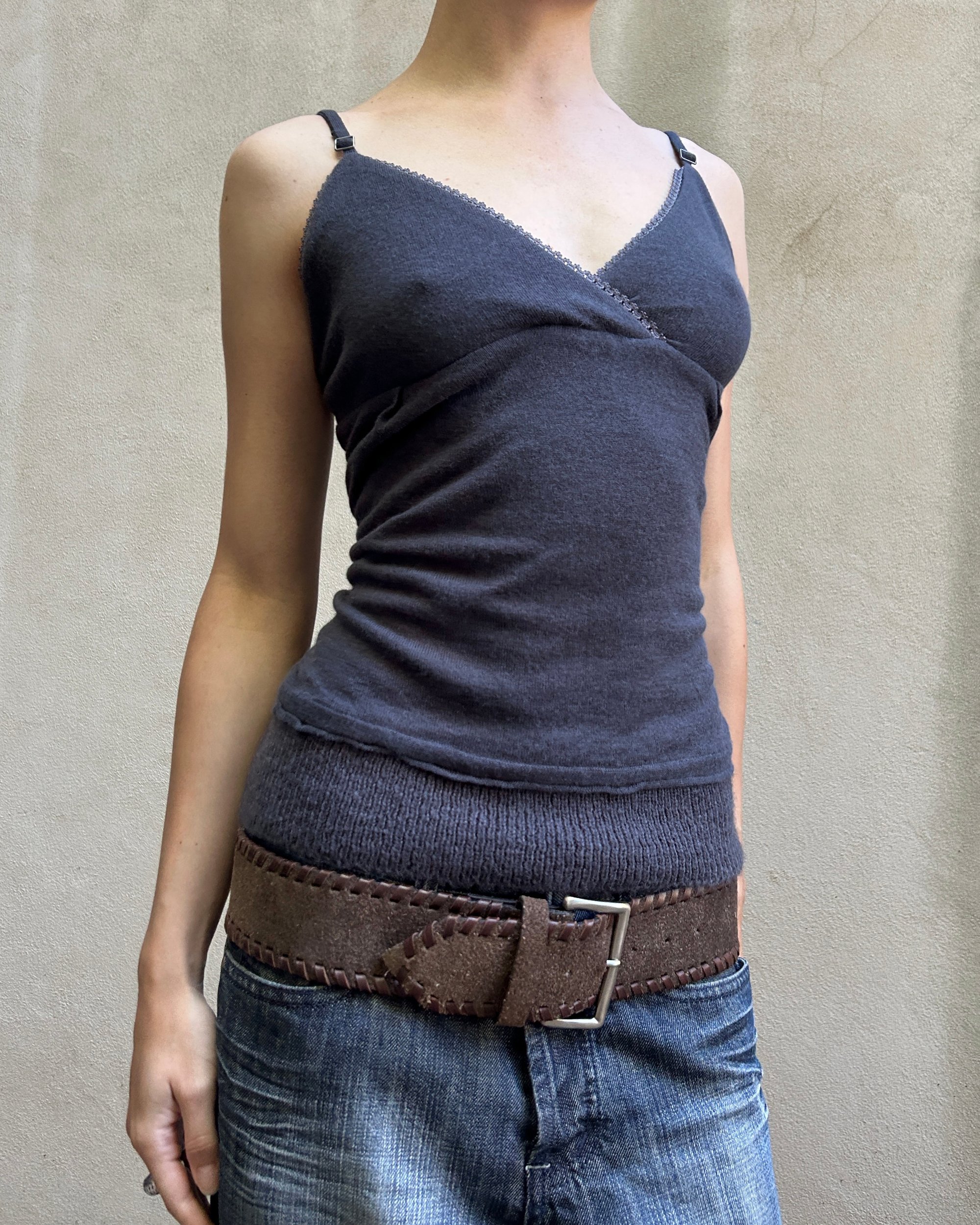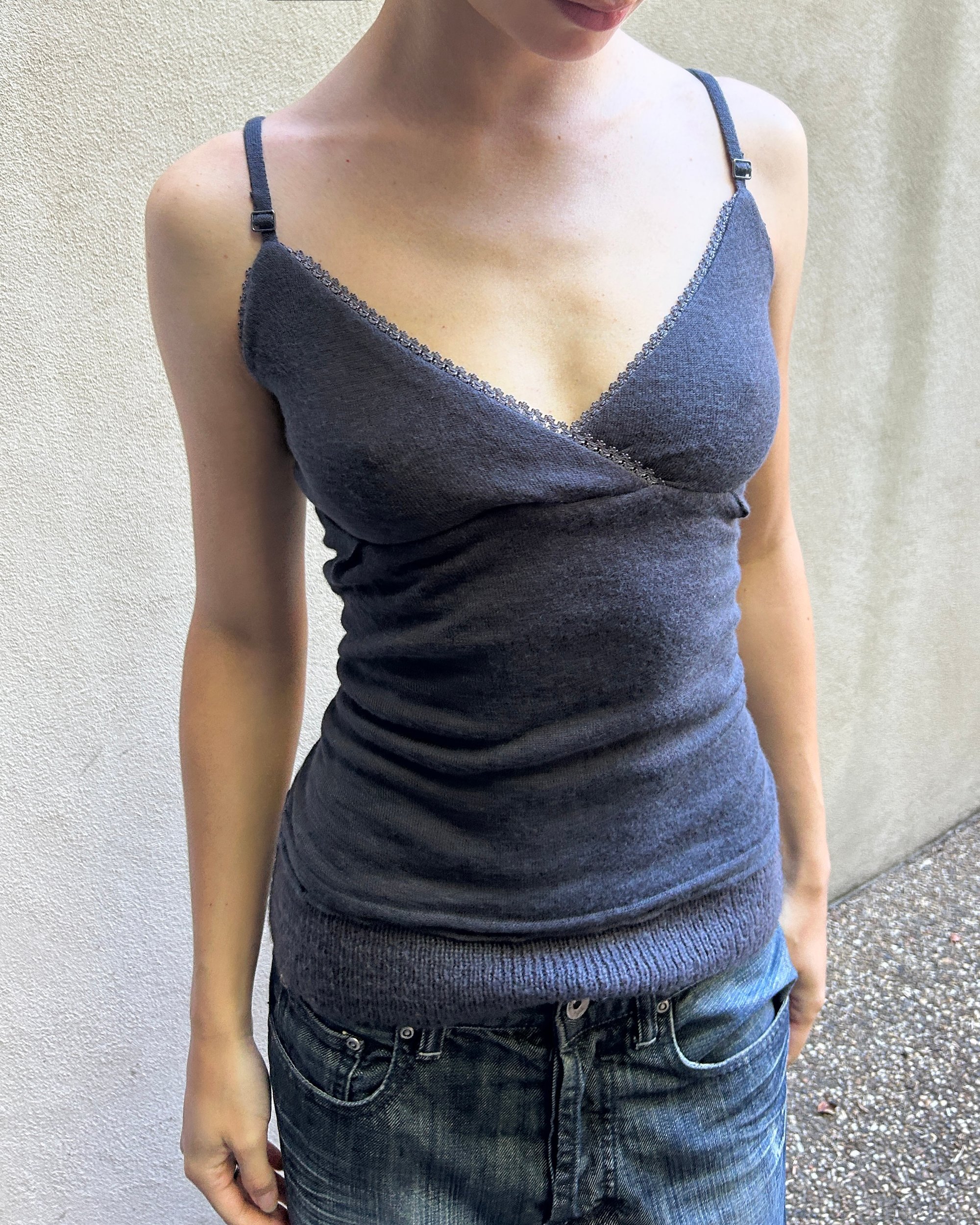 SIZE 2 | Italian label mohair blend cami with lace trim.