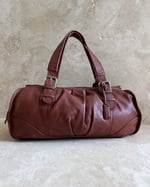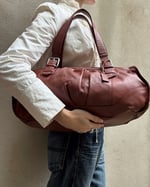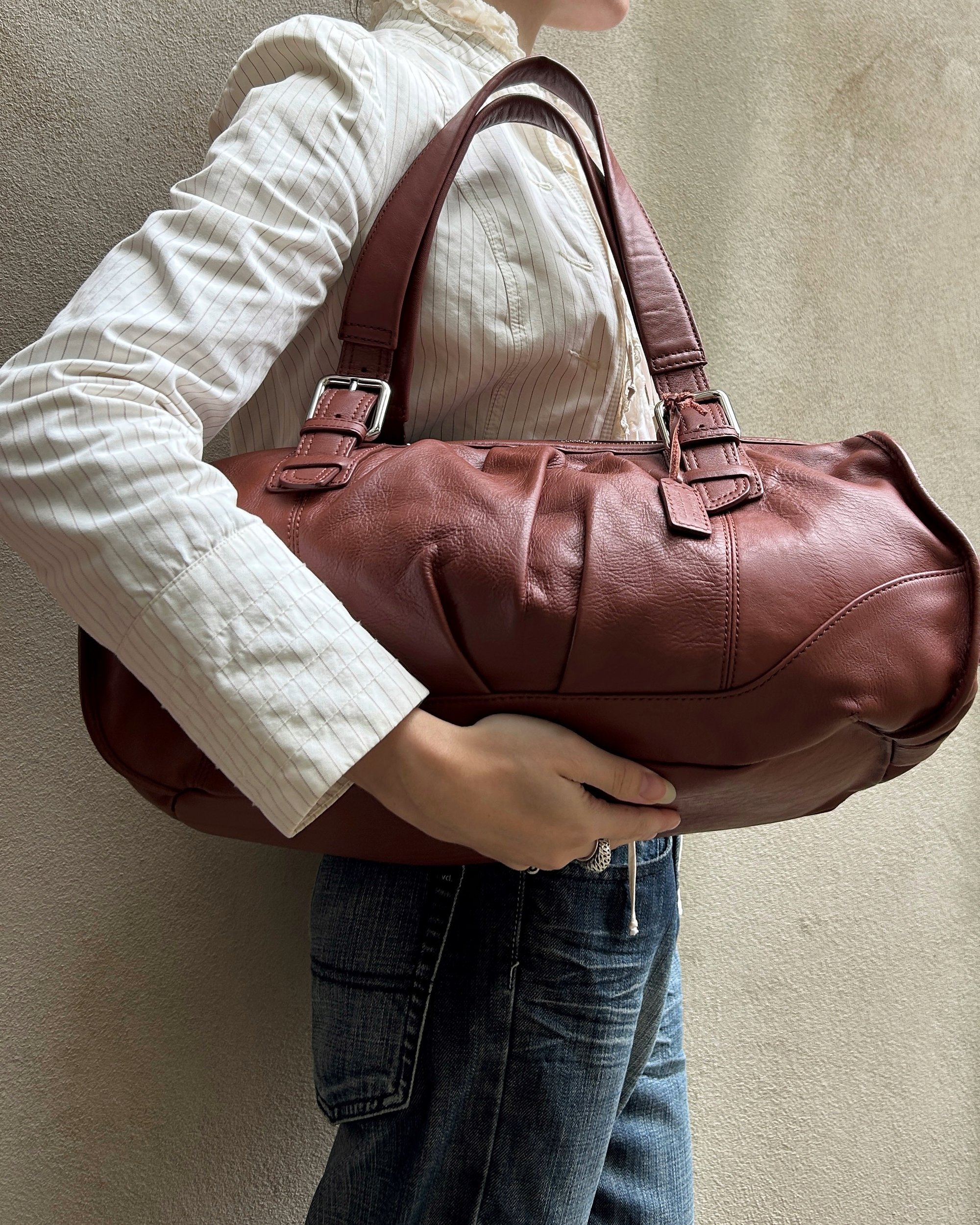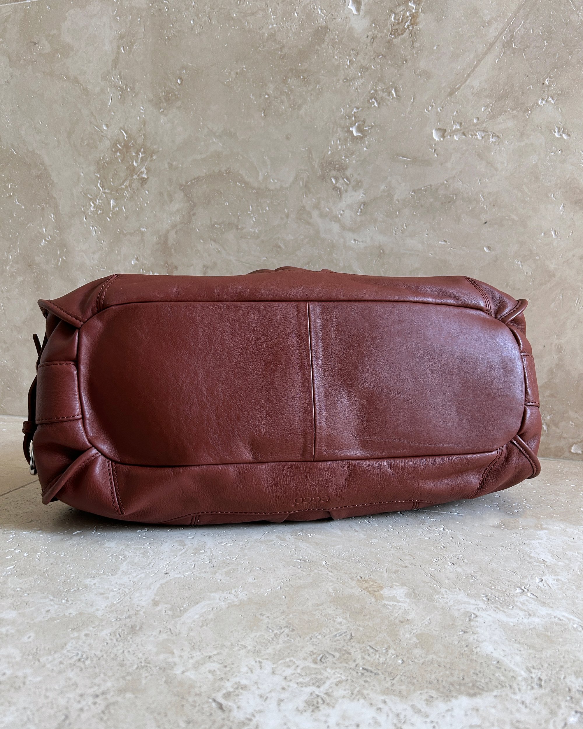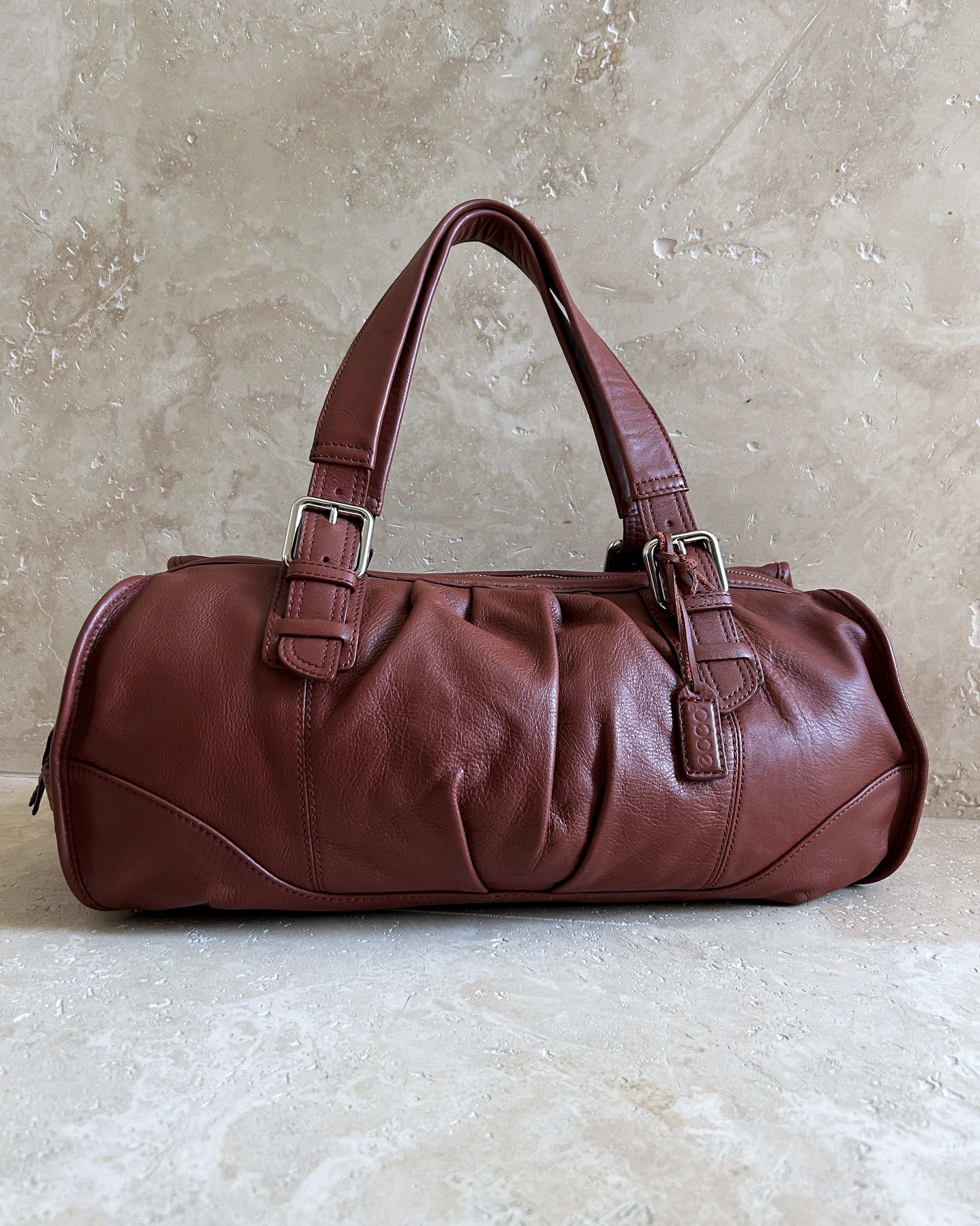 BURGUNDY BROWN | Ecco genuine leather large duffle bag with silver hardware.