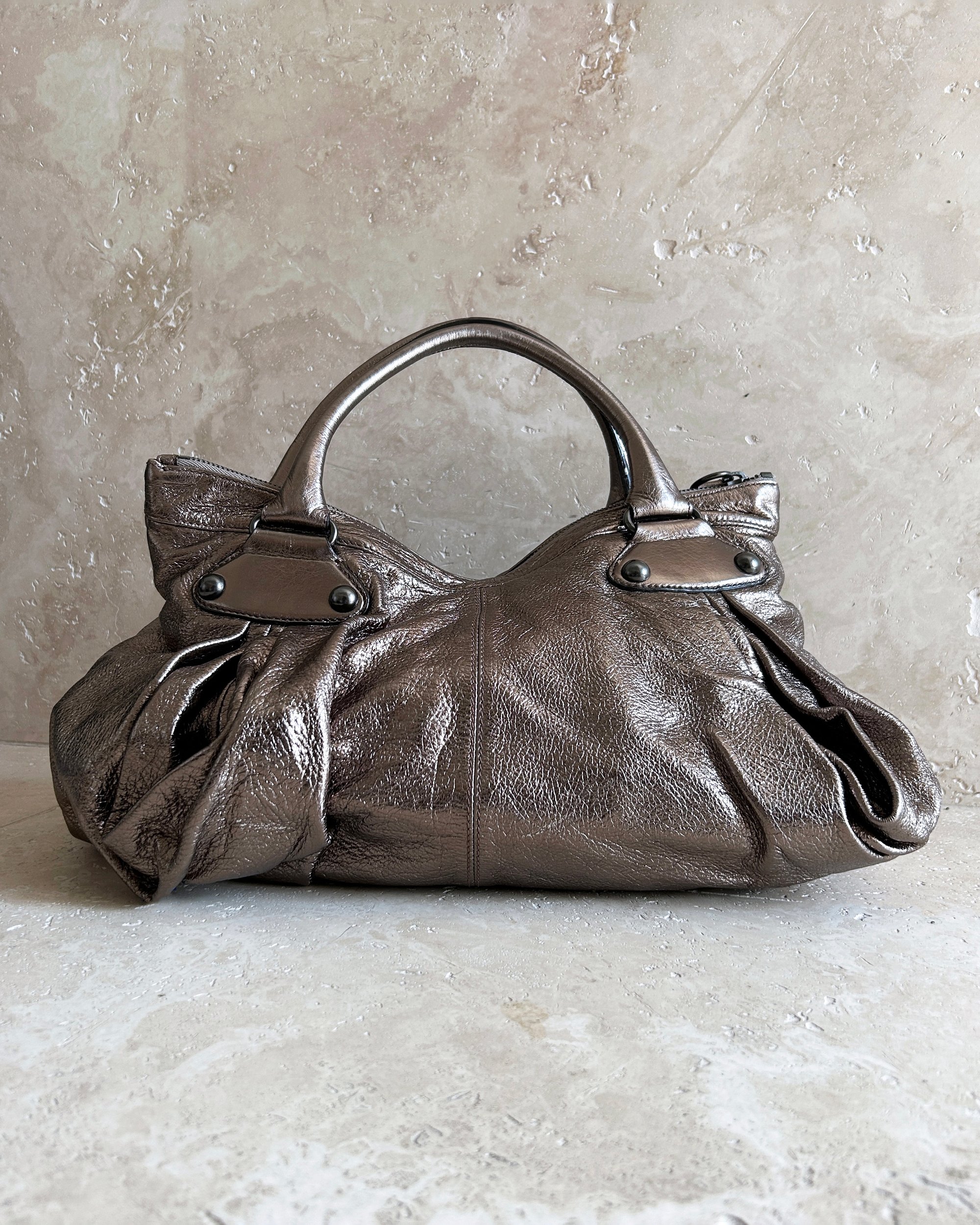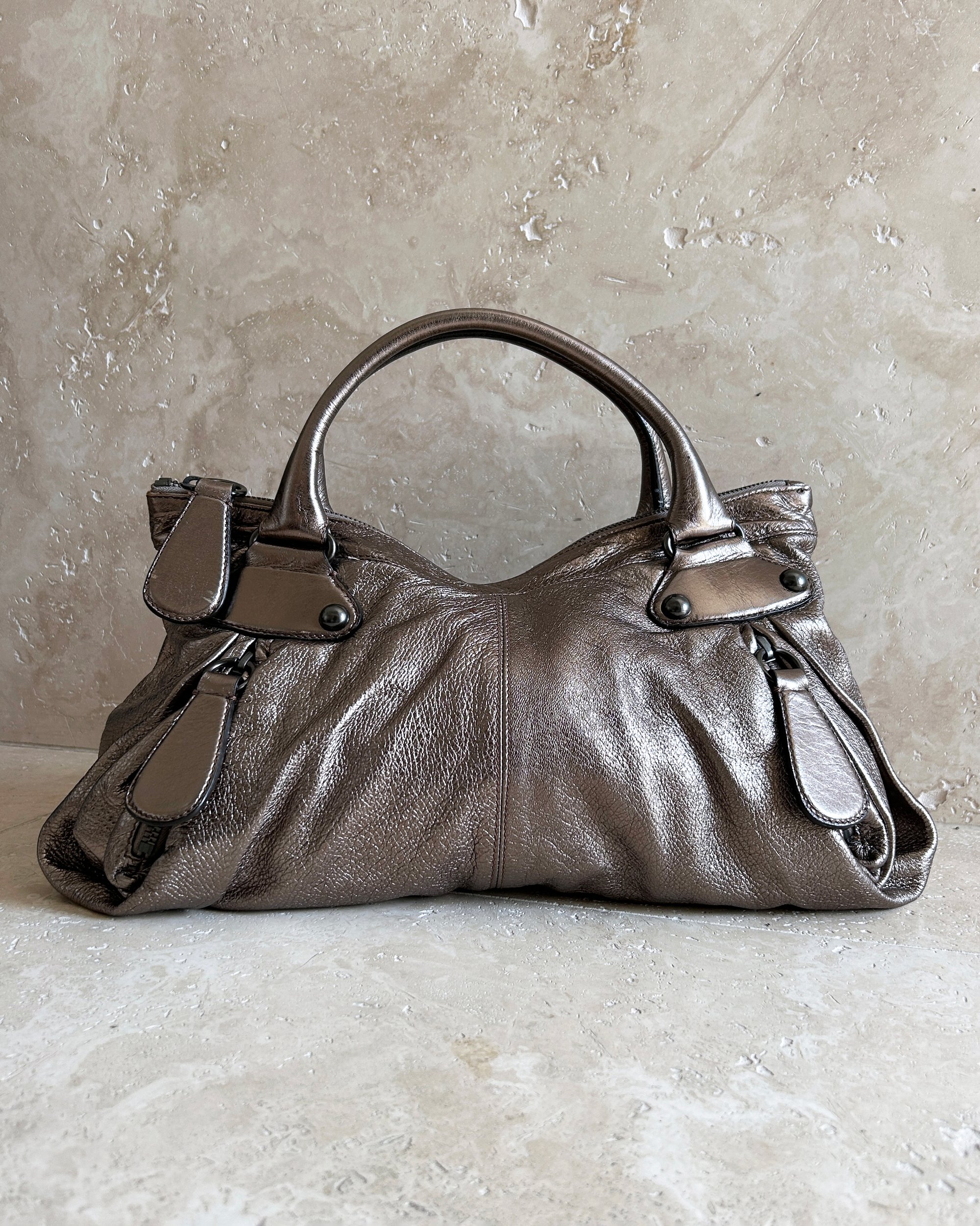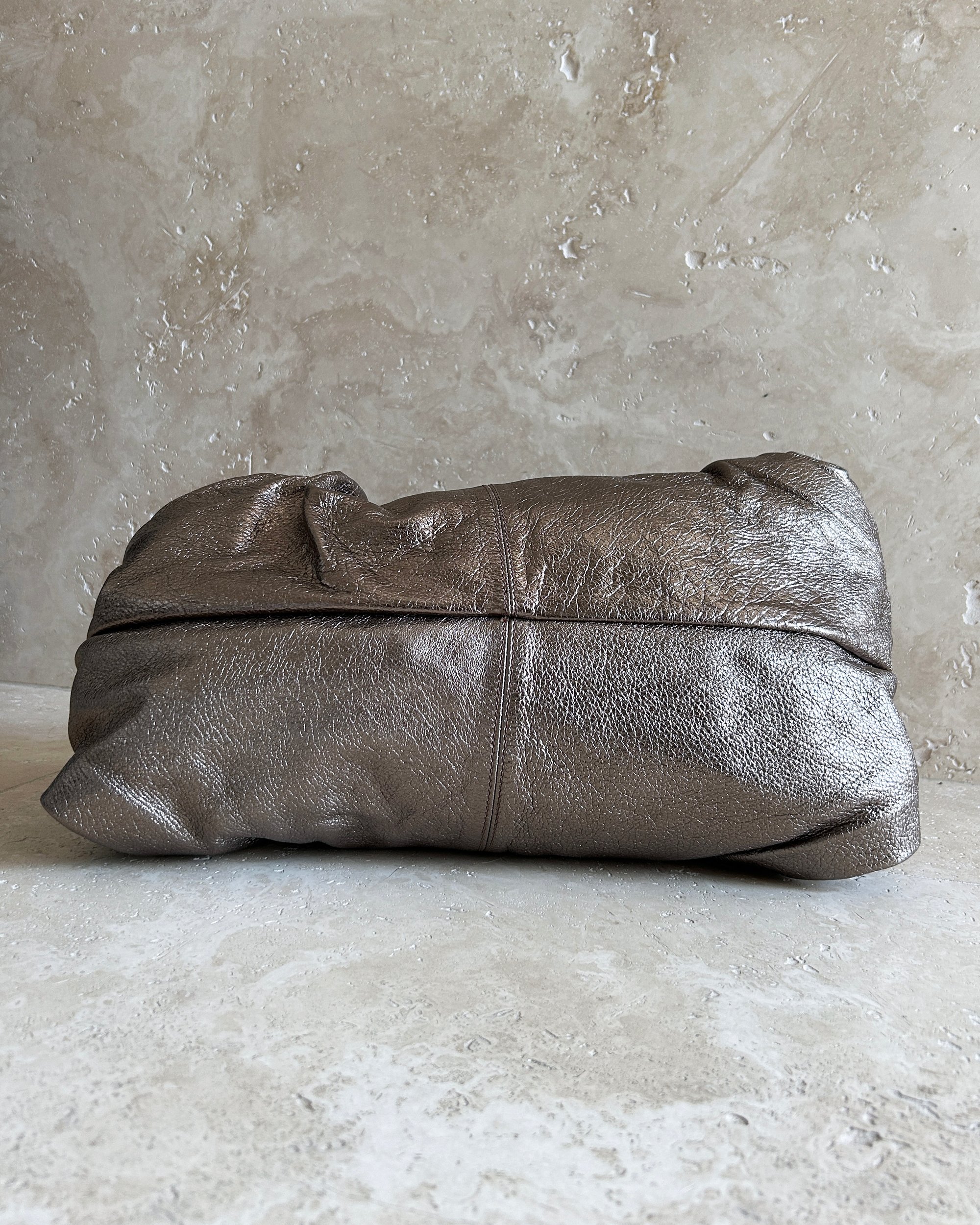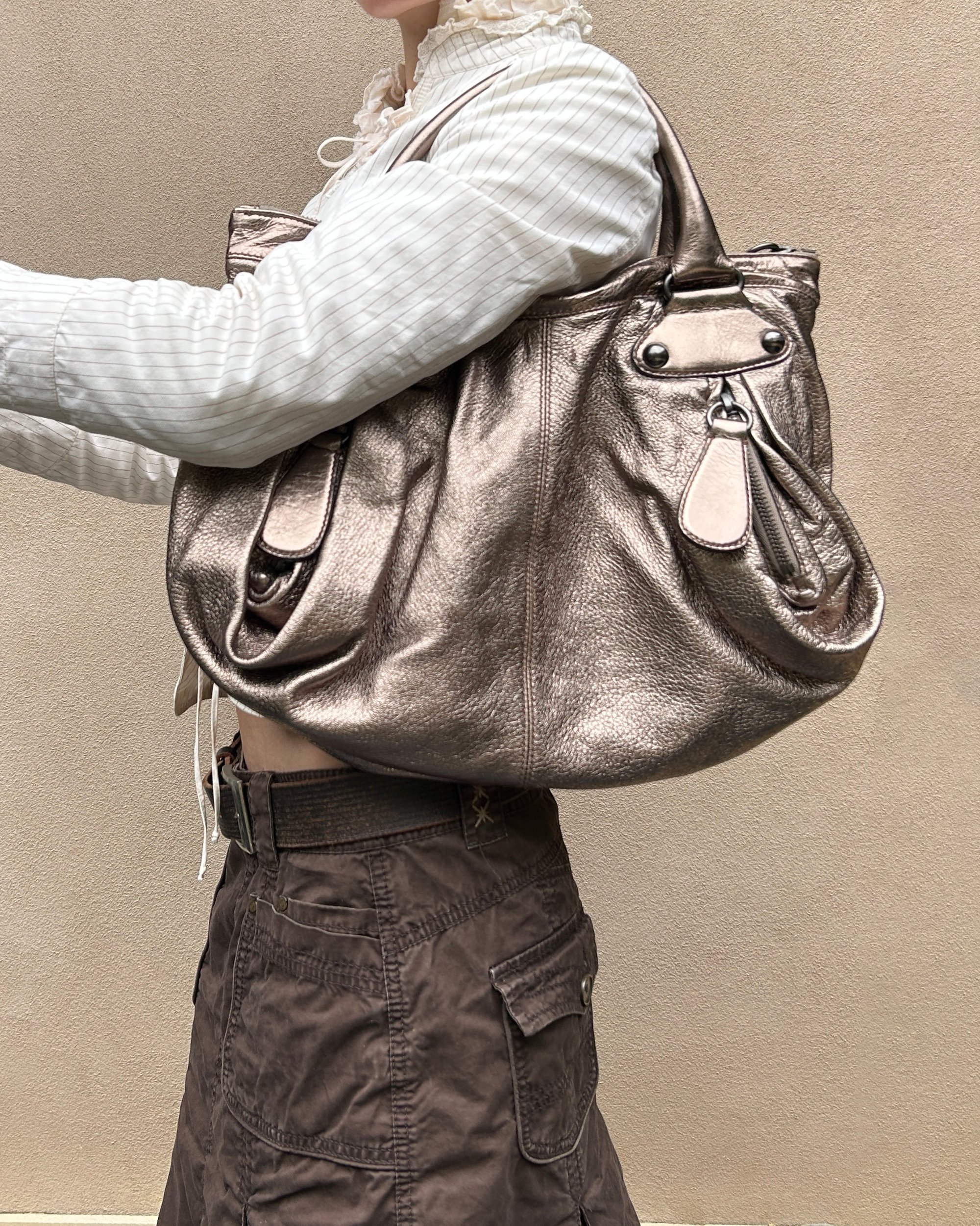 MUTED GOLD | Italian designer Loyd Maish genuine leather shoulder bag with antique silver hardware.