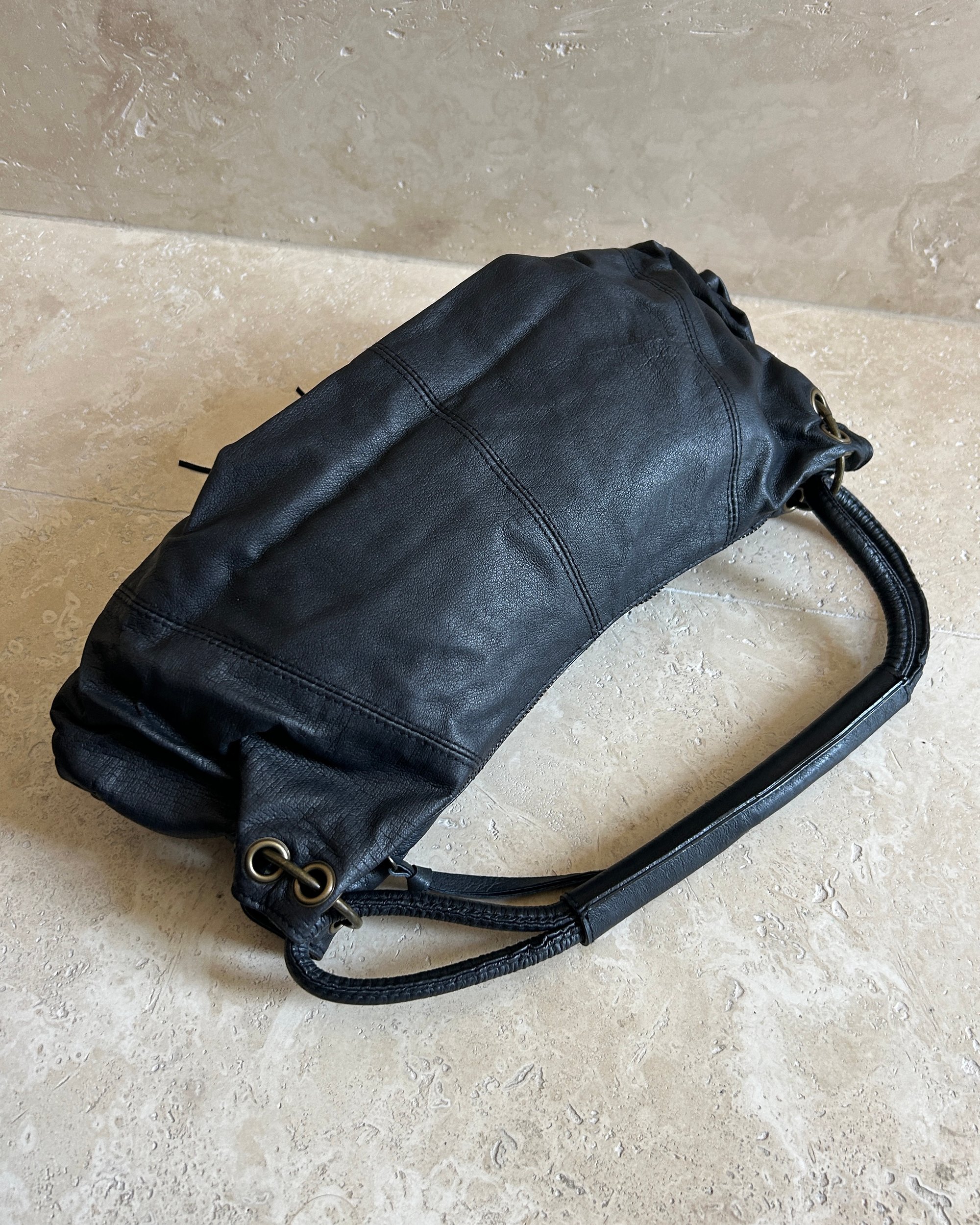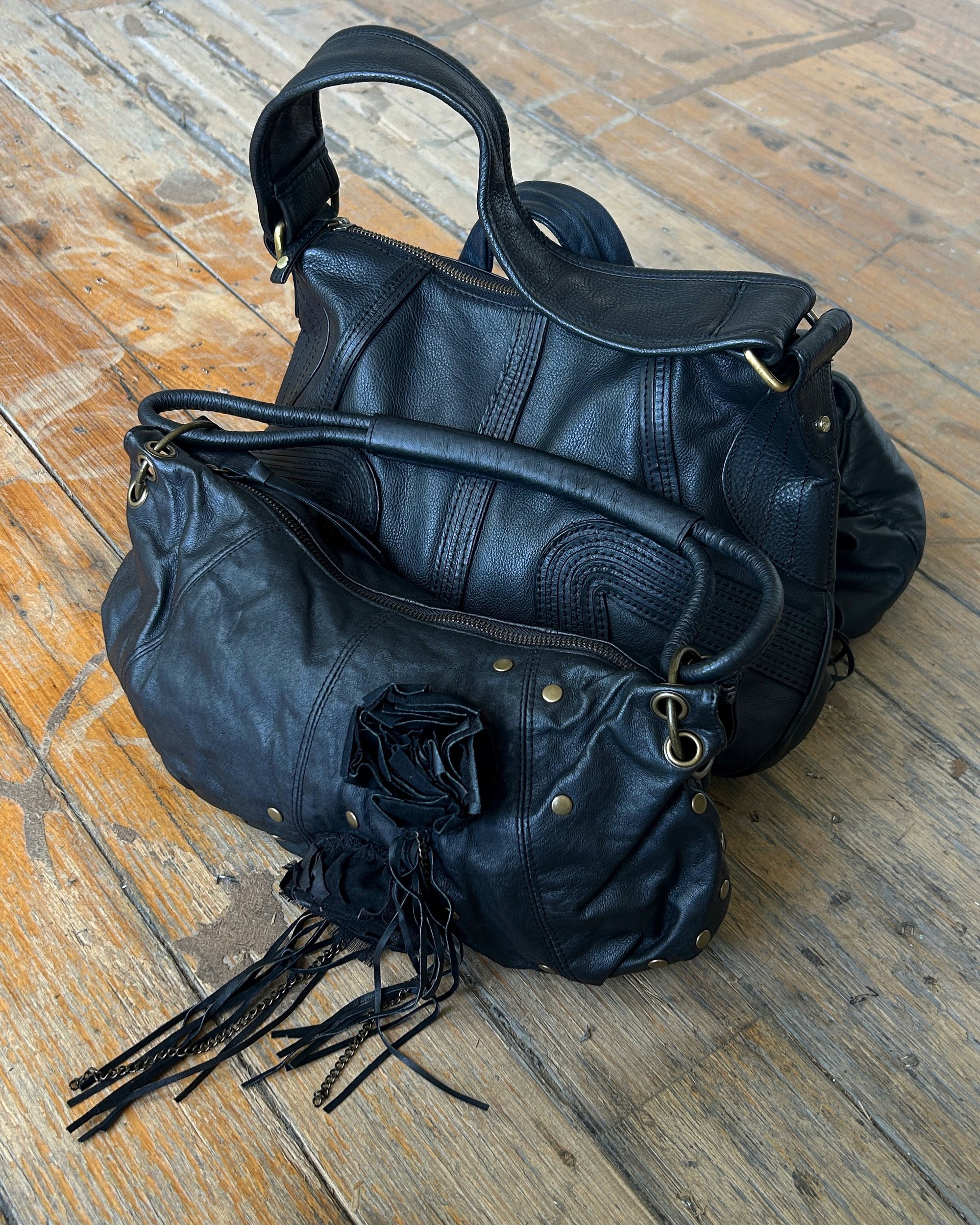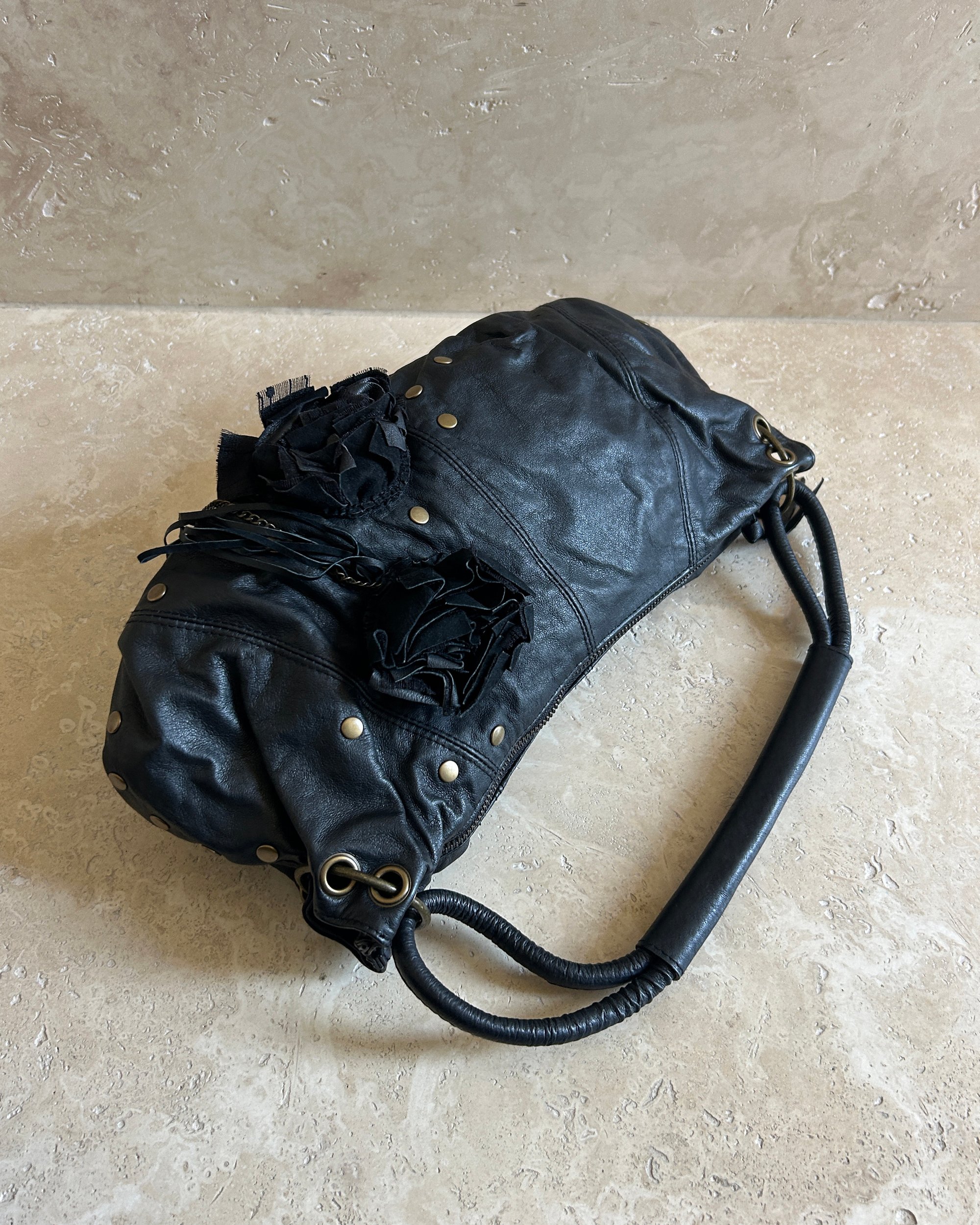BLACK | Japanese label vintage genuine leather bag with corsage and antique gold hardware.