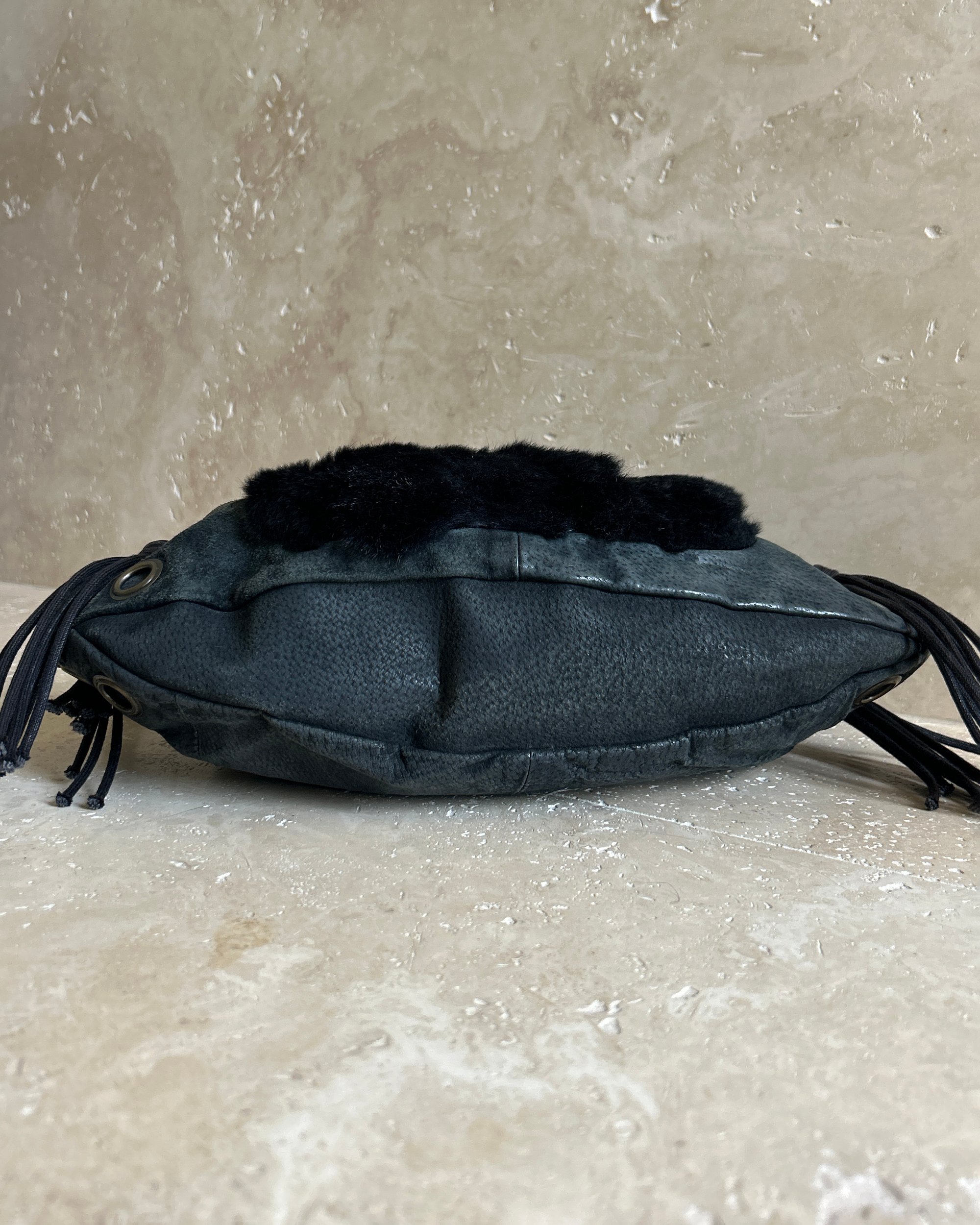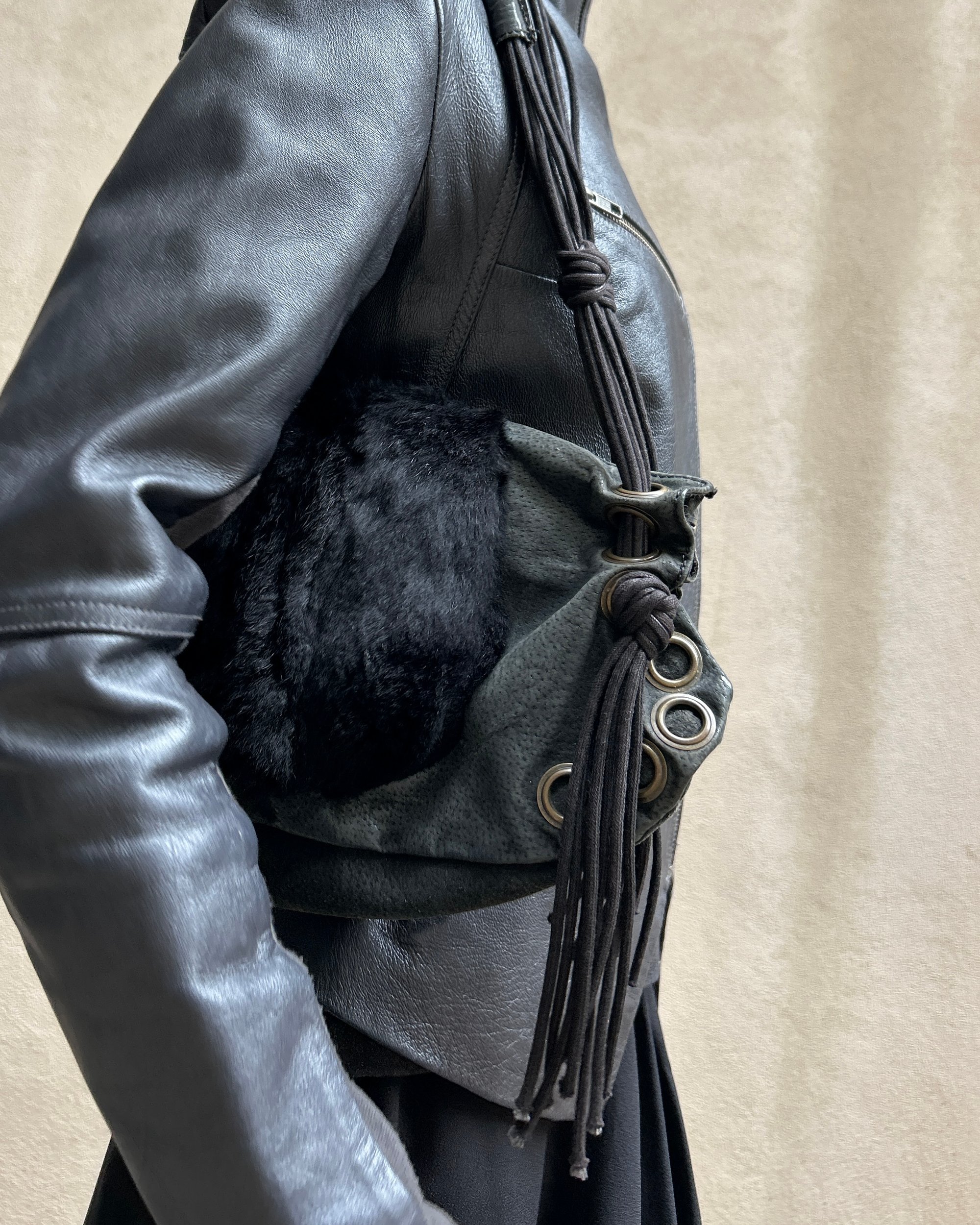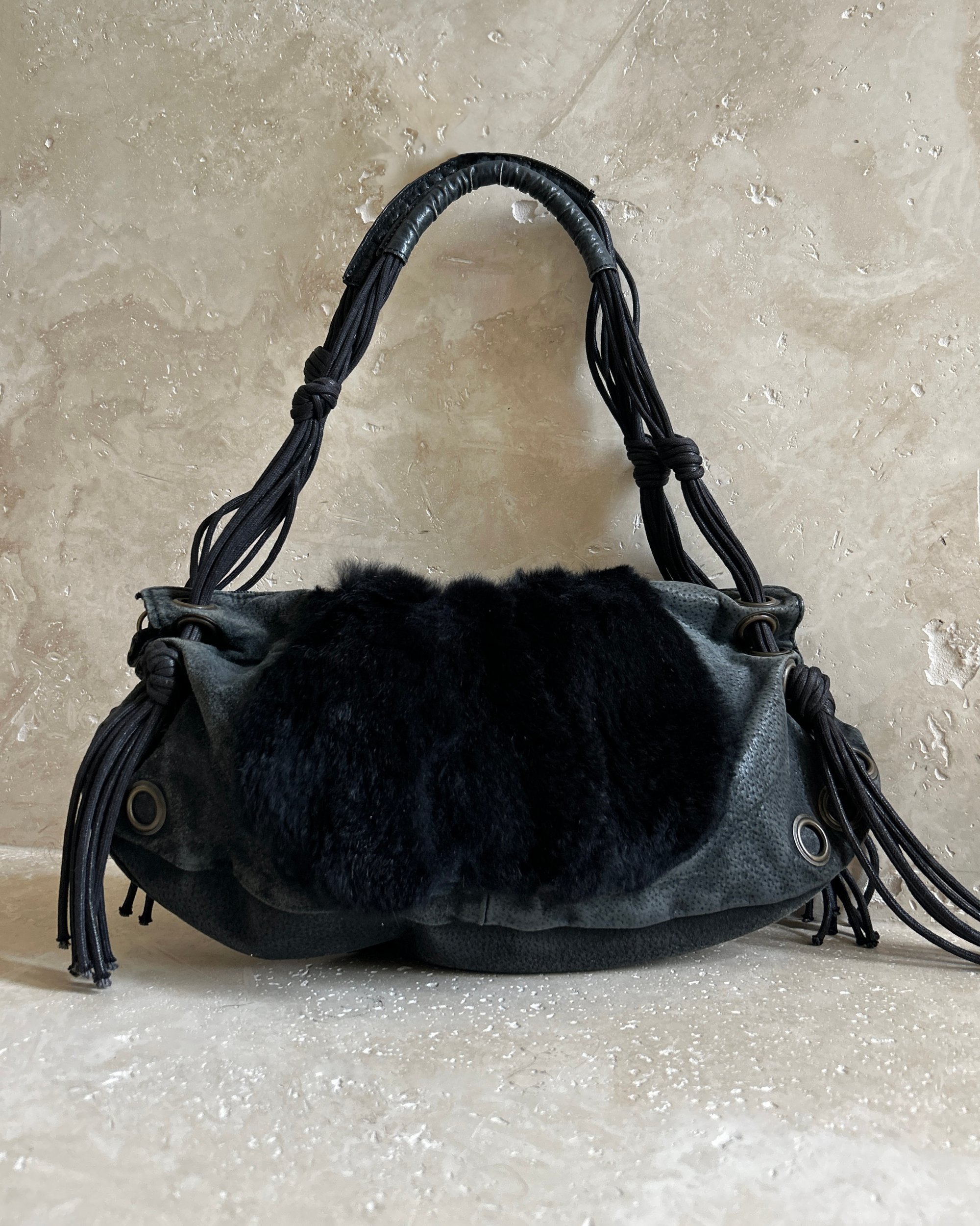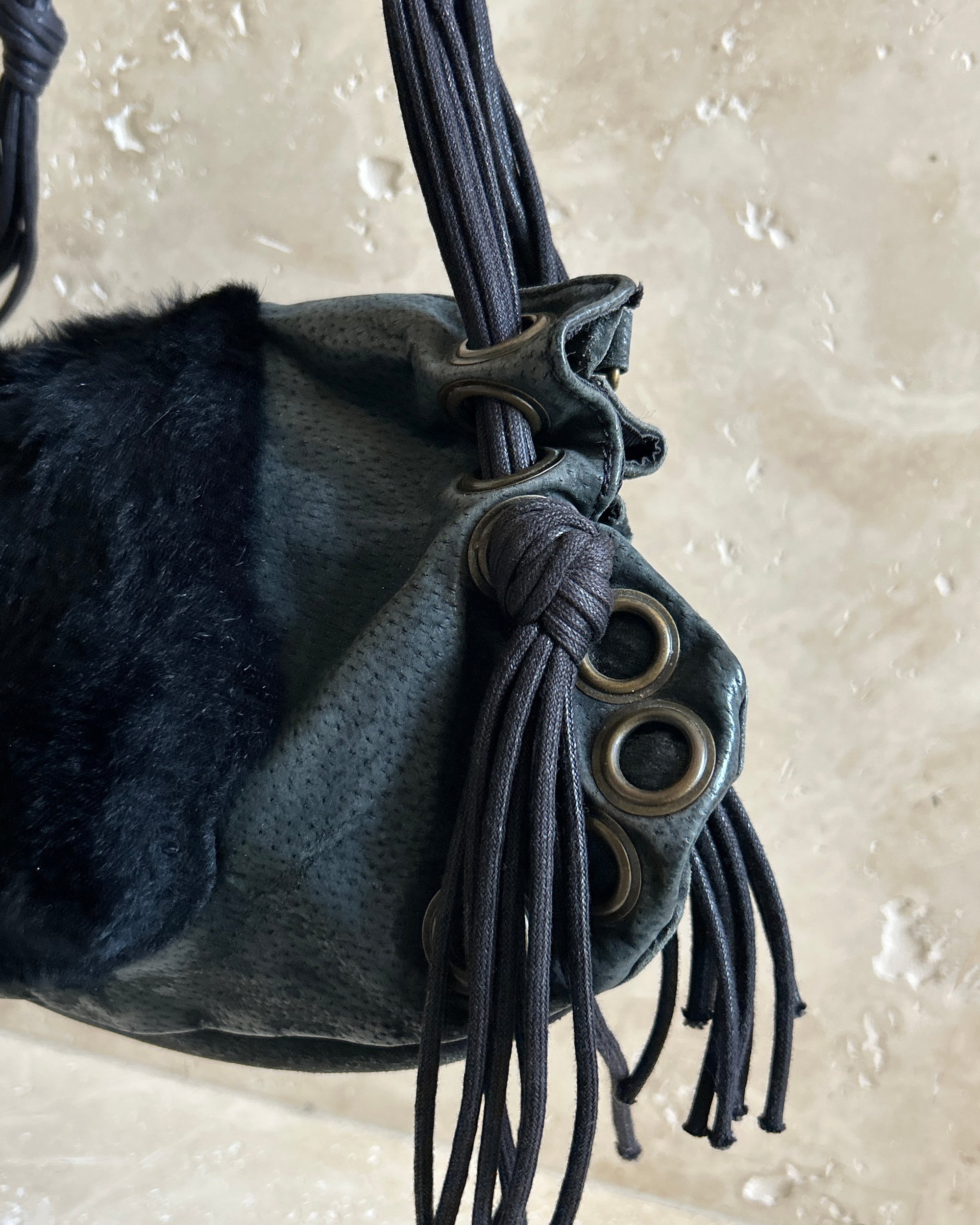 LEATHER & FUR EYELET BAG