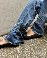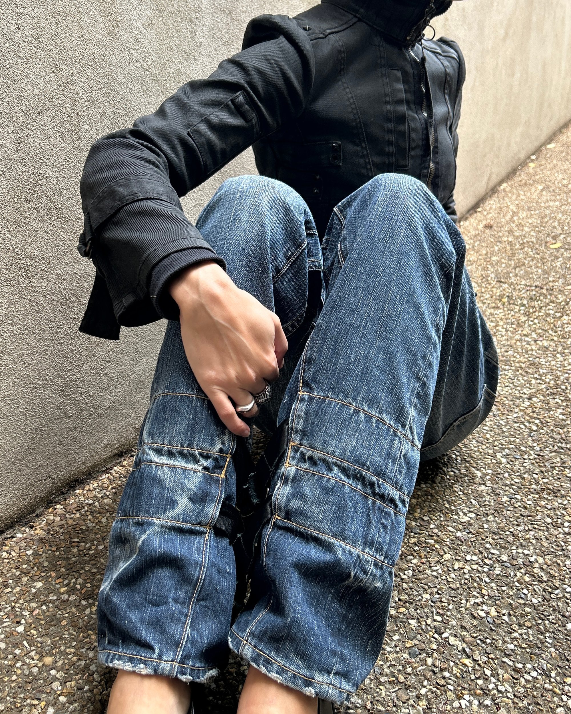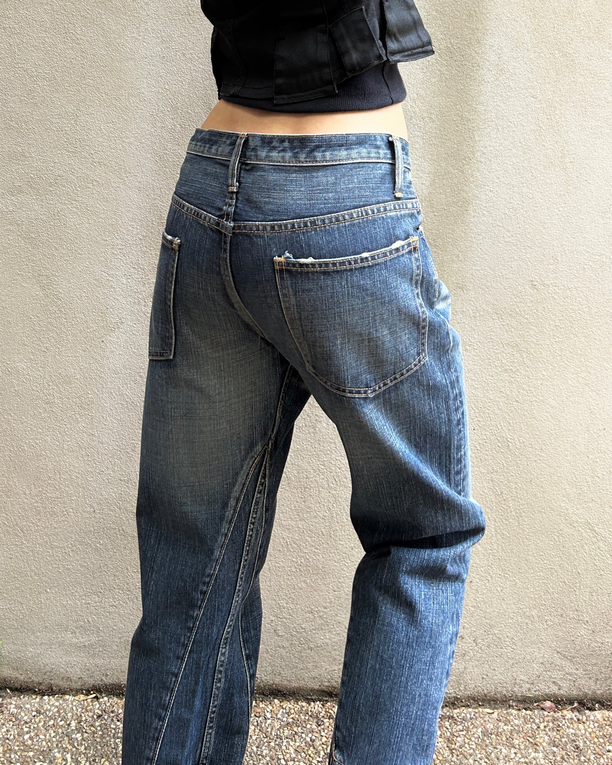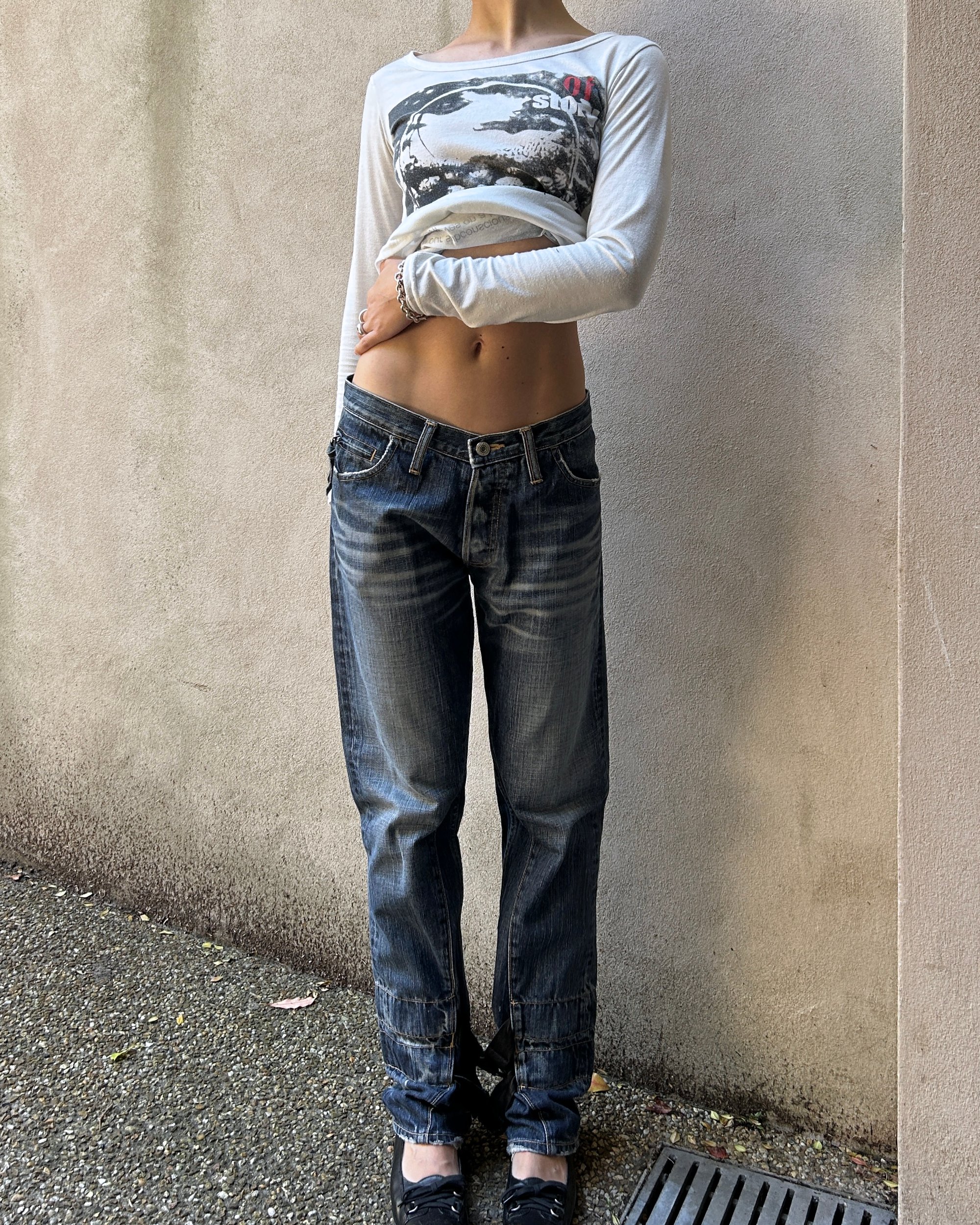SIZE 32" | Vintage Japanese brand straight leg jeans with leather straps.