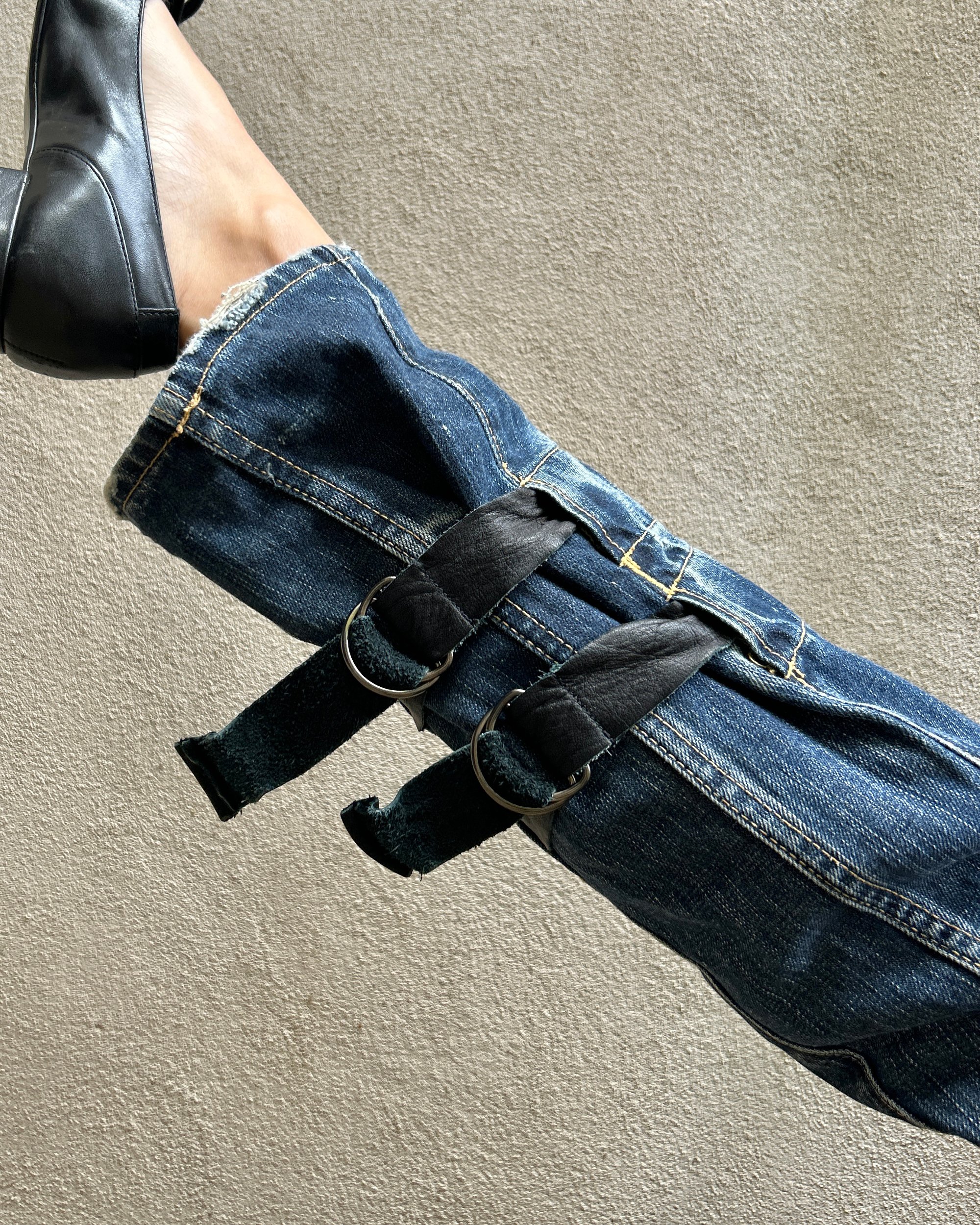 LEATHER STRAP JEANS