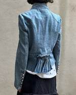 SIZE 12 | NZ brand light denim tailored military jacket with silver hardware and ruffle detail.