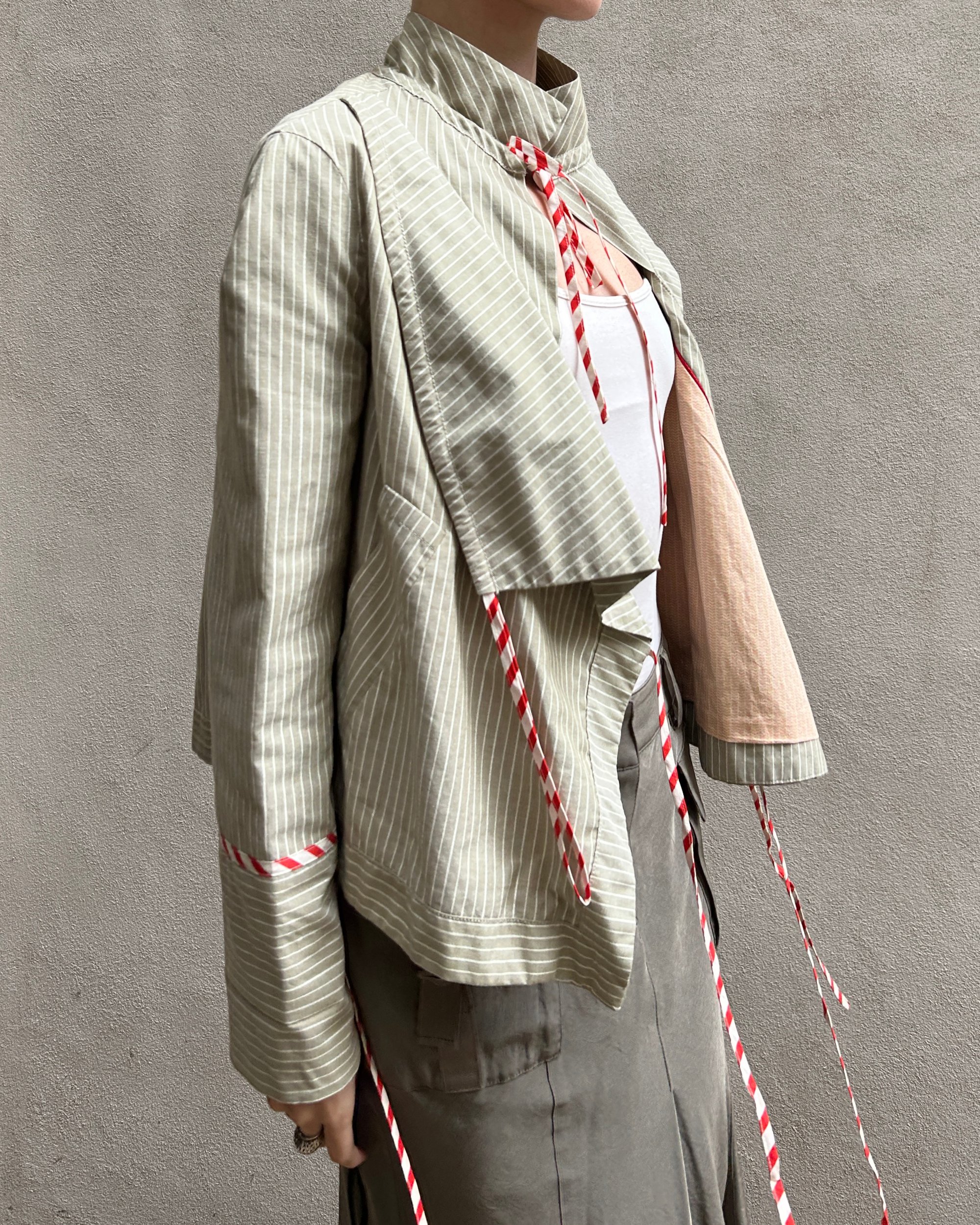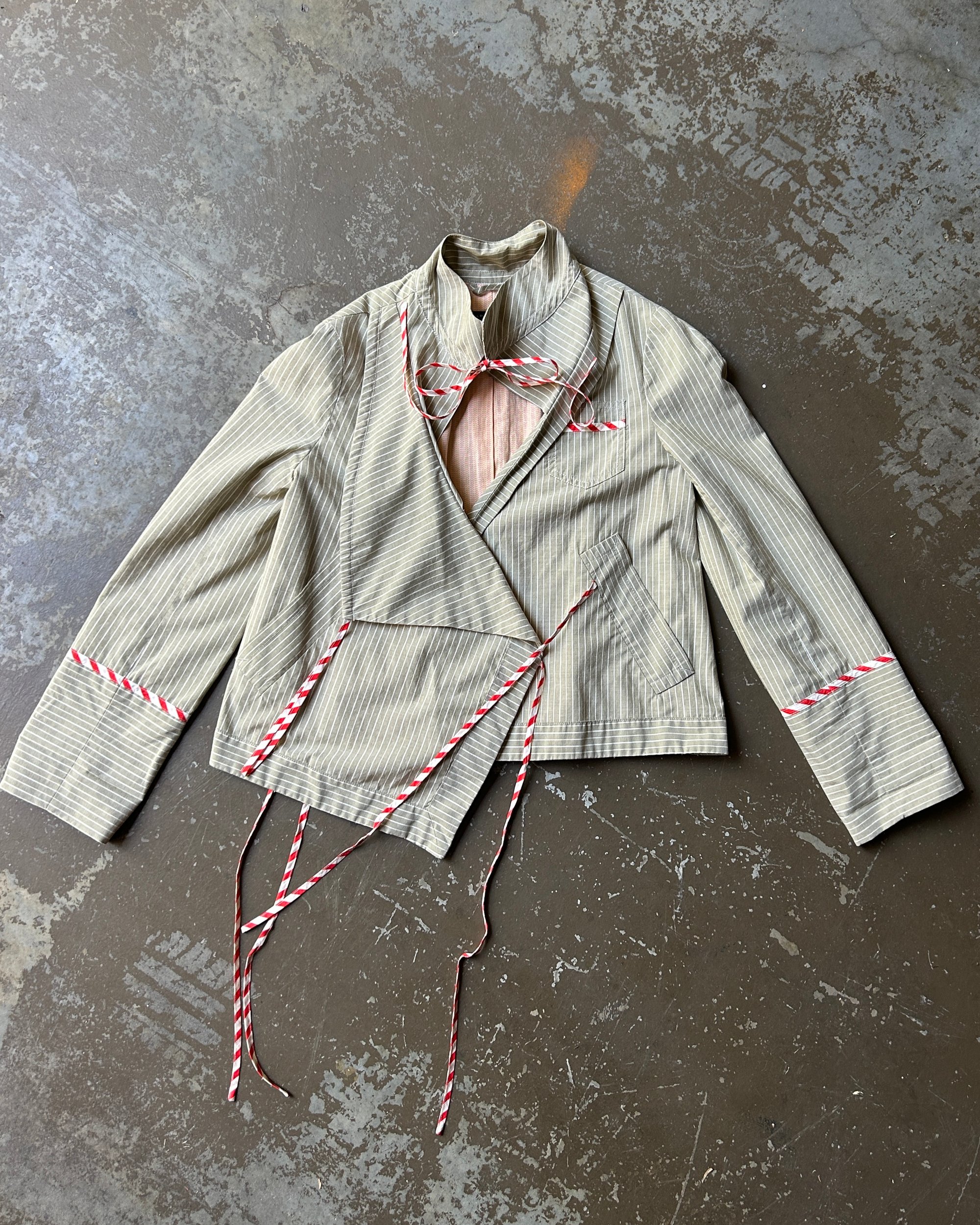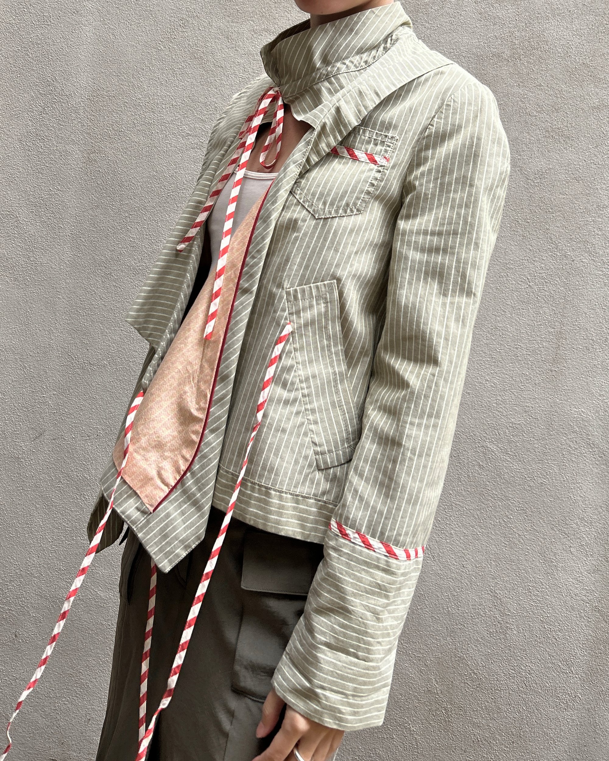 SIZE 2 | Marc Jacobs sage green striped jacket with candy-cane striped string ties.