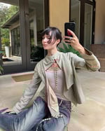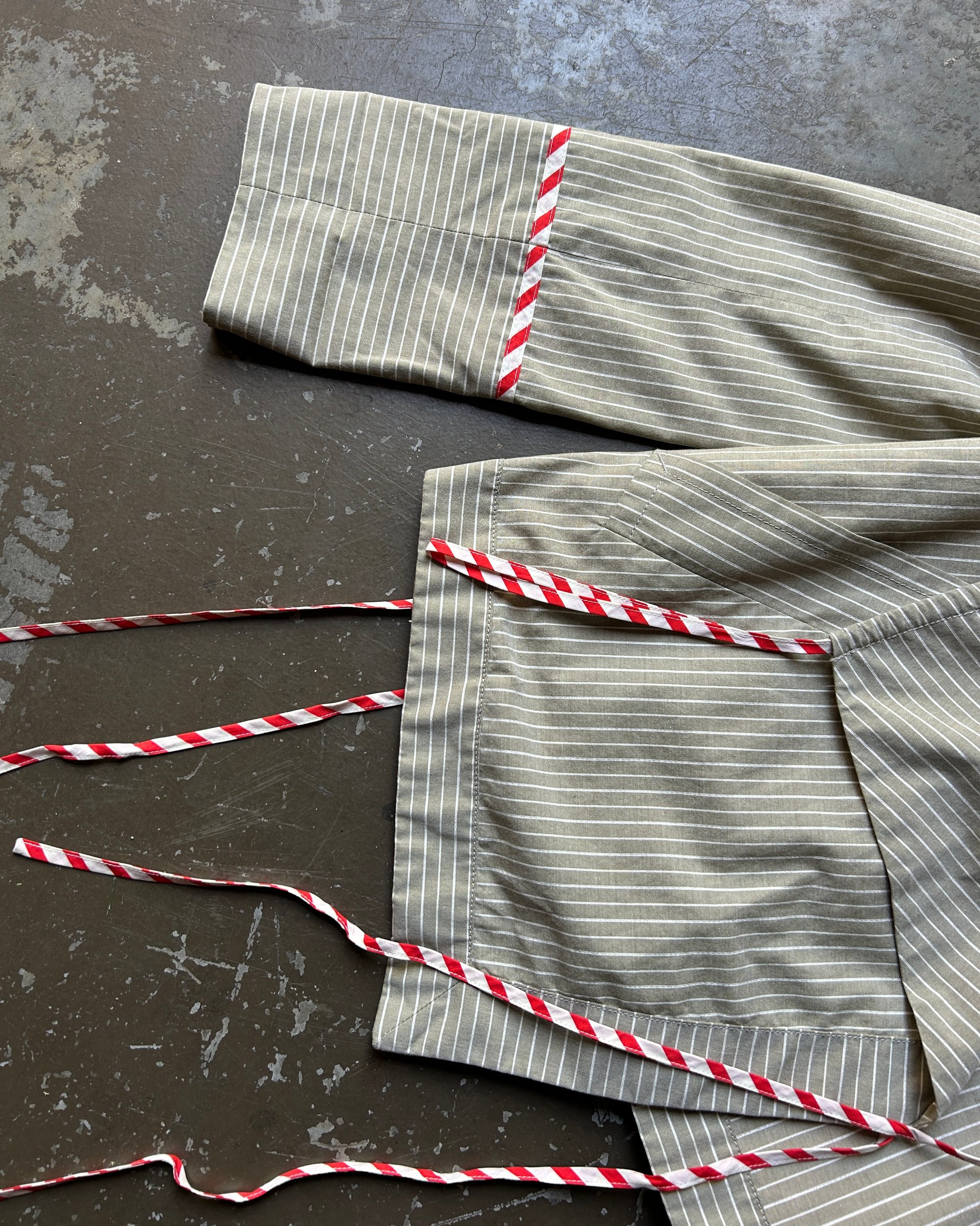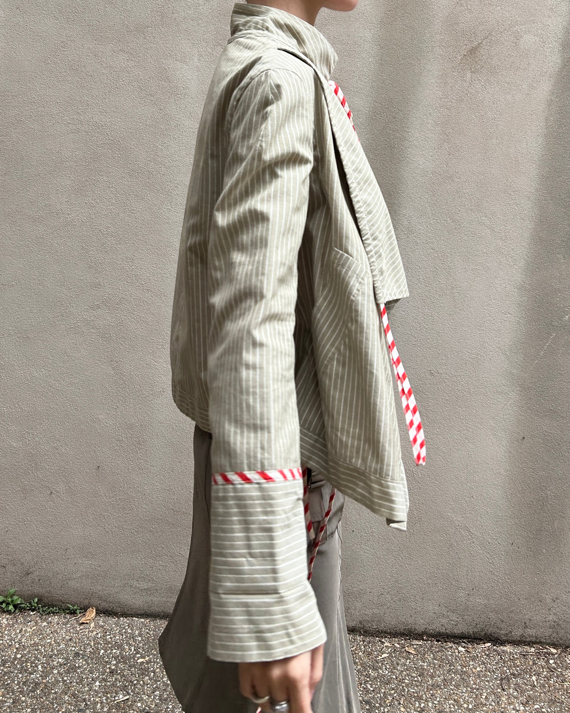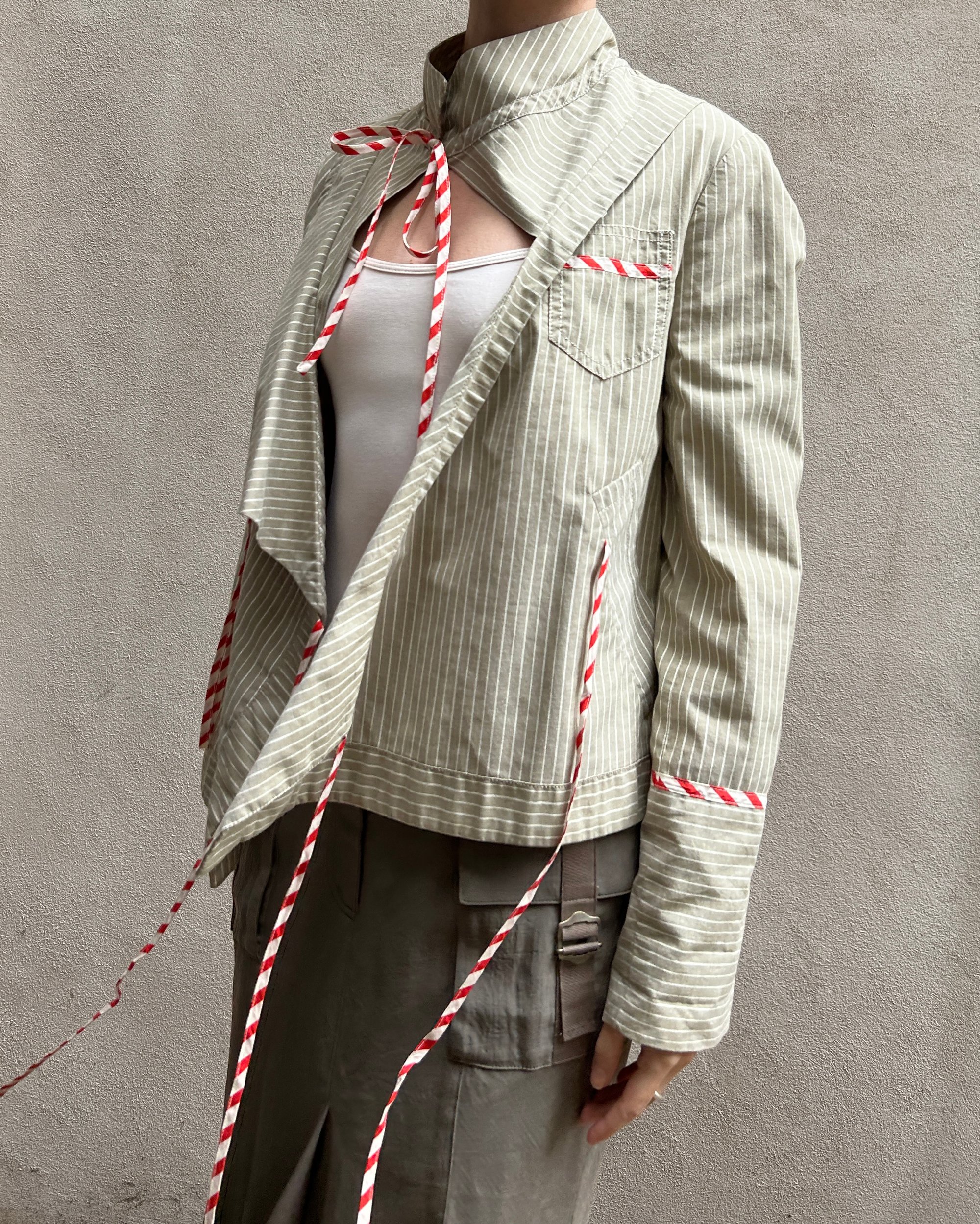 SIZE 2 | Marc Jacobs sage green striped jacket with candy-cane striped string ties.