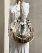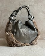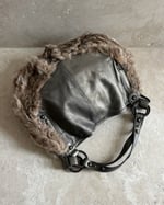 METALLIC BROWN | Japanese vintage genuine leather and fur bag with a metallic finish and antique gold hardware.