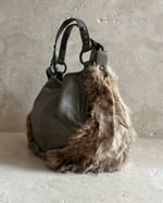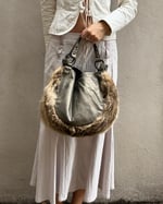 Genuine leather and real fur. Magnetic snap closure. Three inner pocket compartments.