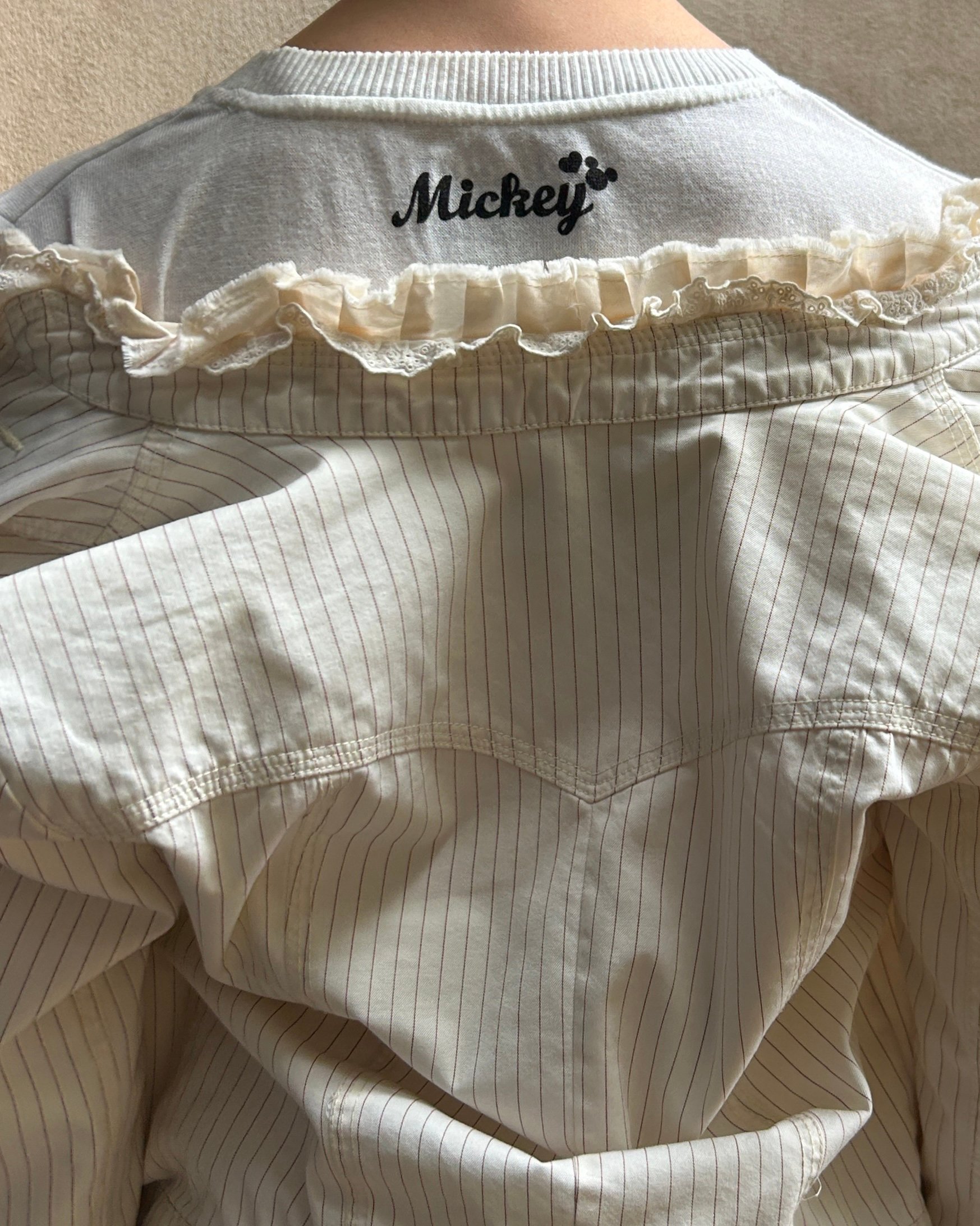 SIZE L | Vintage Disney Mickey Mouse fine-knit tee with polka dot Mickey and "Determination is Mickey's key to success" quote.