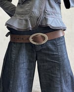 SIZE S | Vintage NZ label genuine leather belt with large silver buckle.