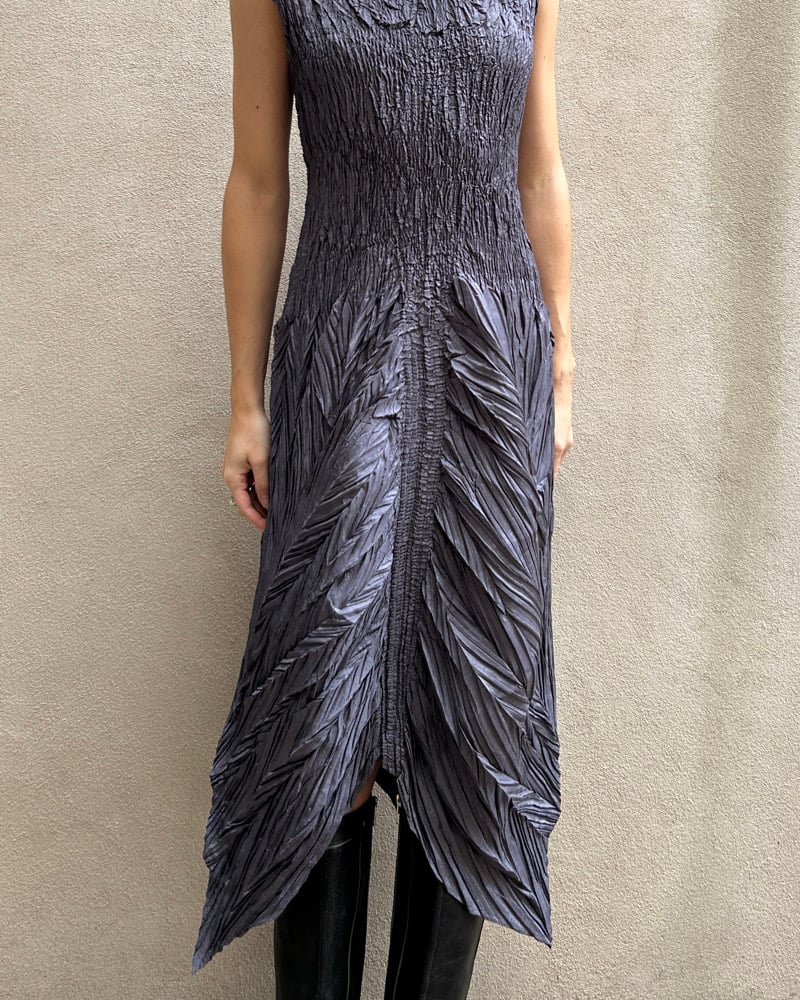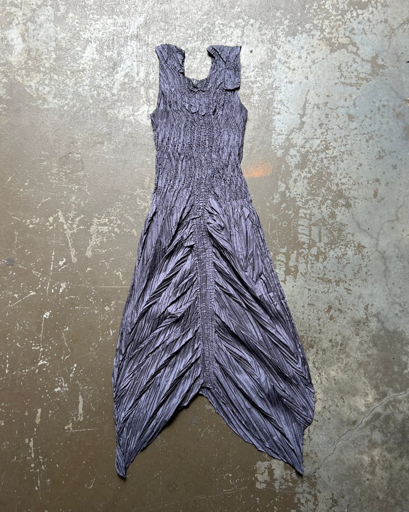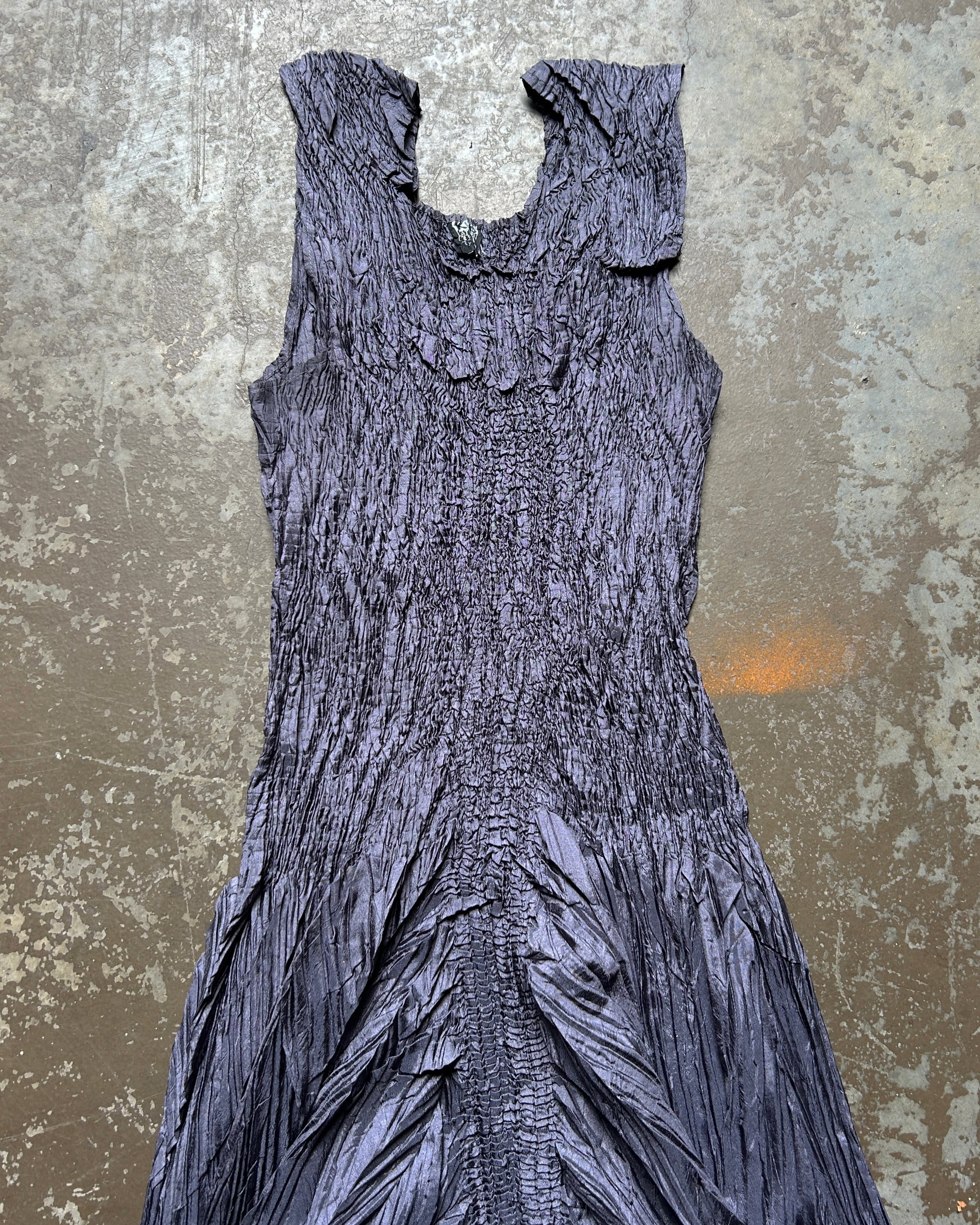 Size M | Vintage Australian brand metallic grey/purple pleated dress.