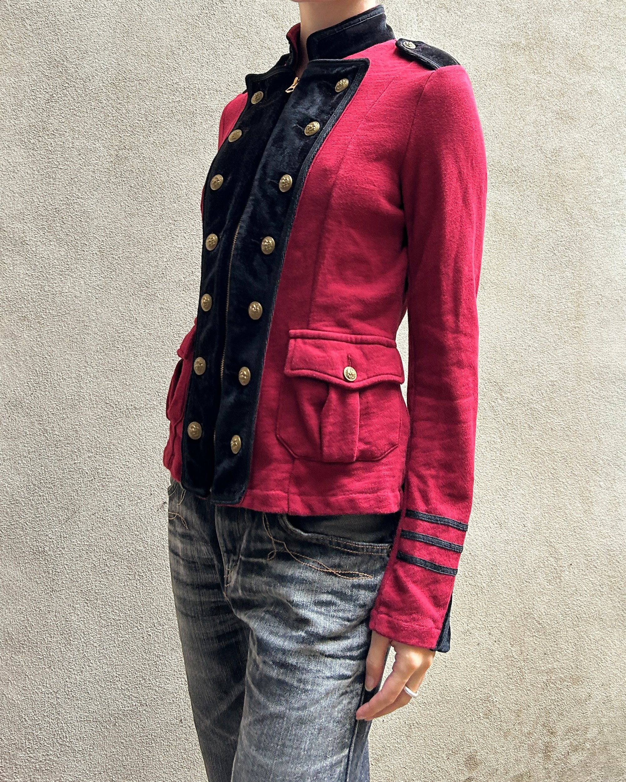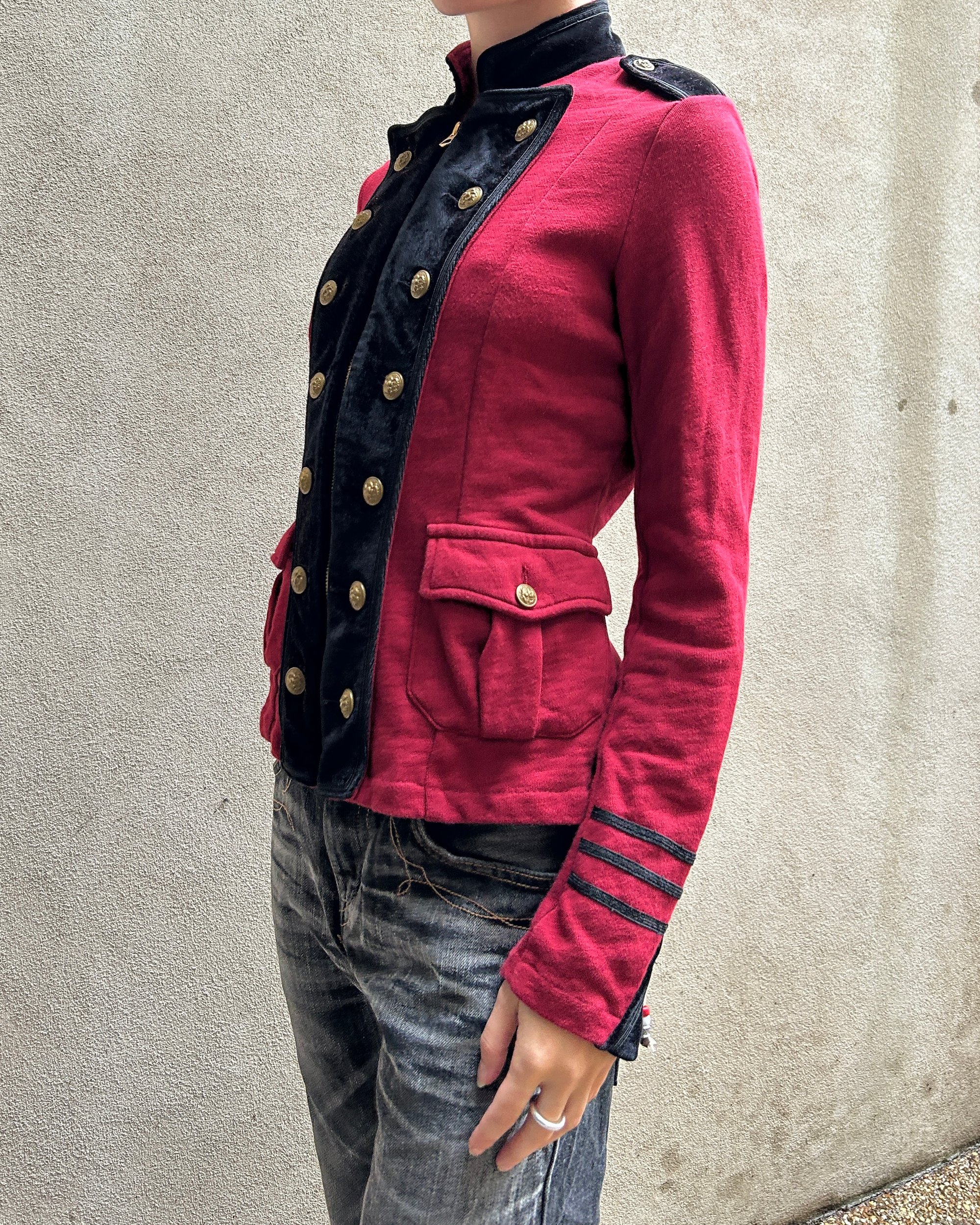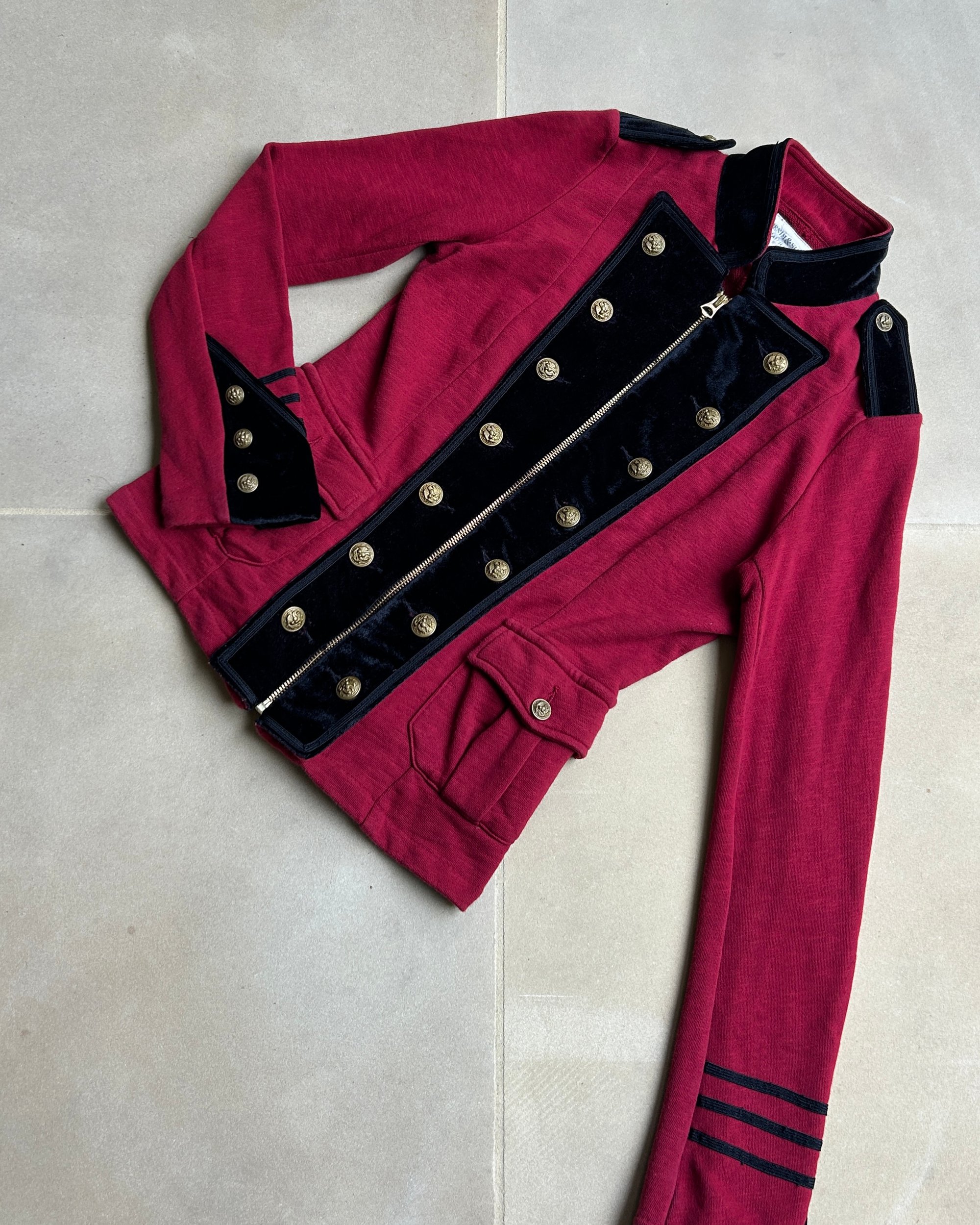 SIZE S/M | Vintage discontinued Denim & Supply by Ralph Lauren red military jacket with velour panel and gold hardware.