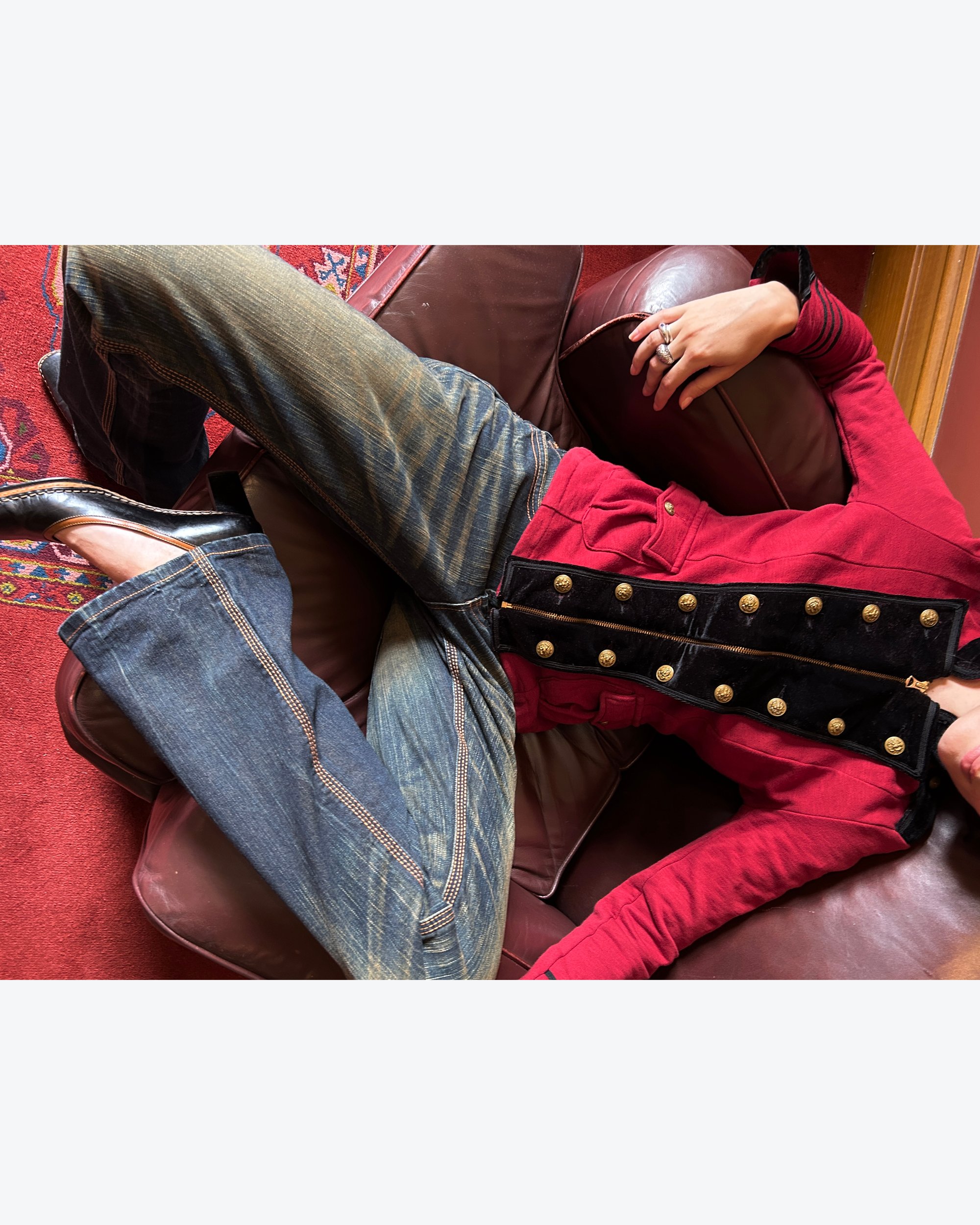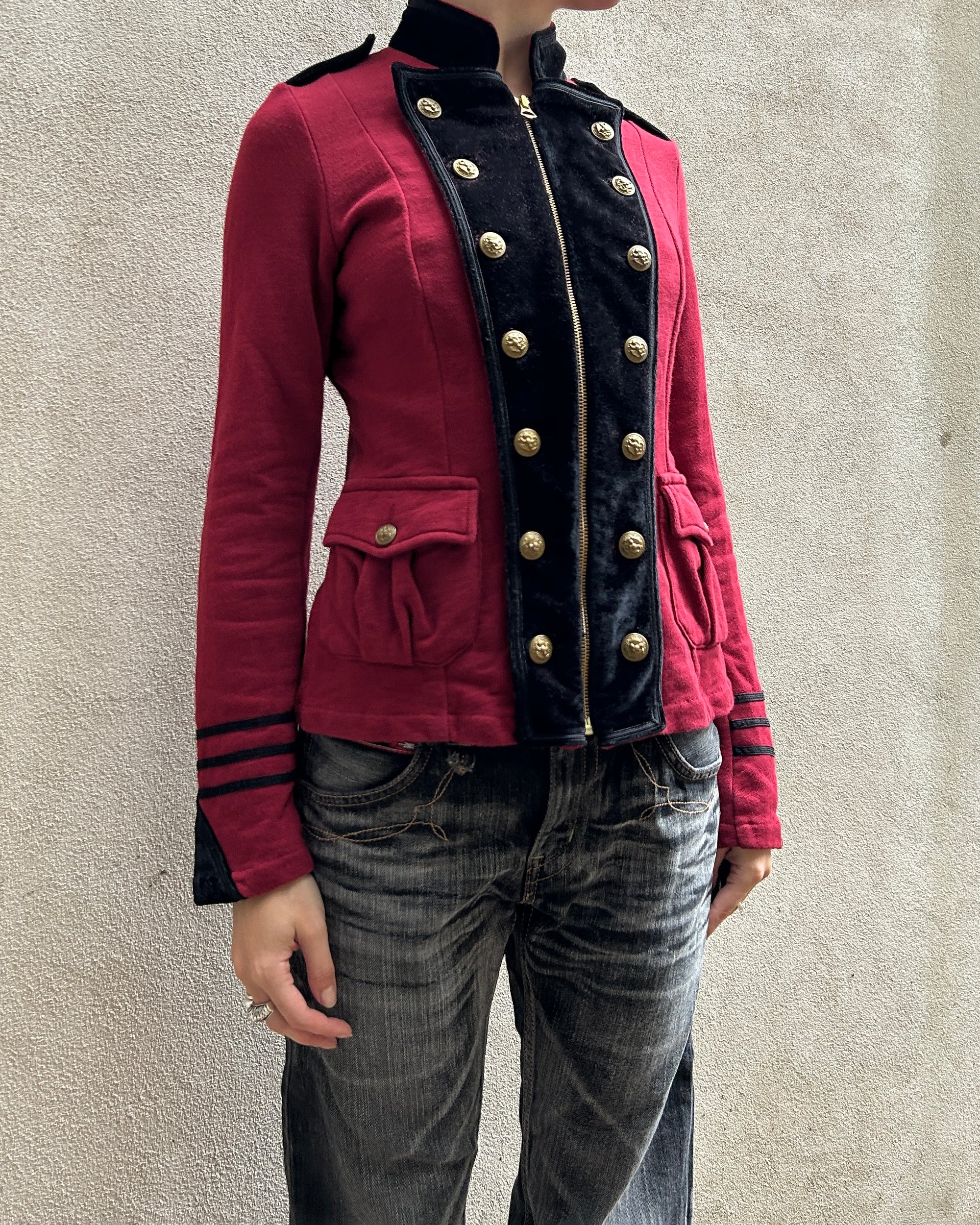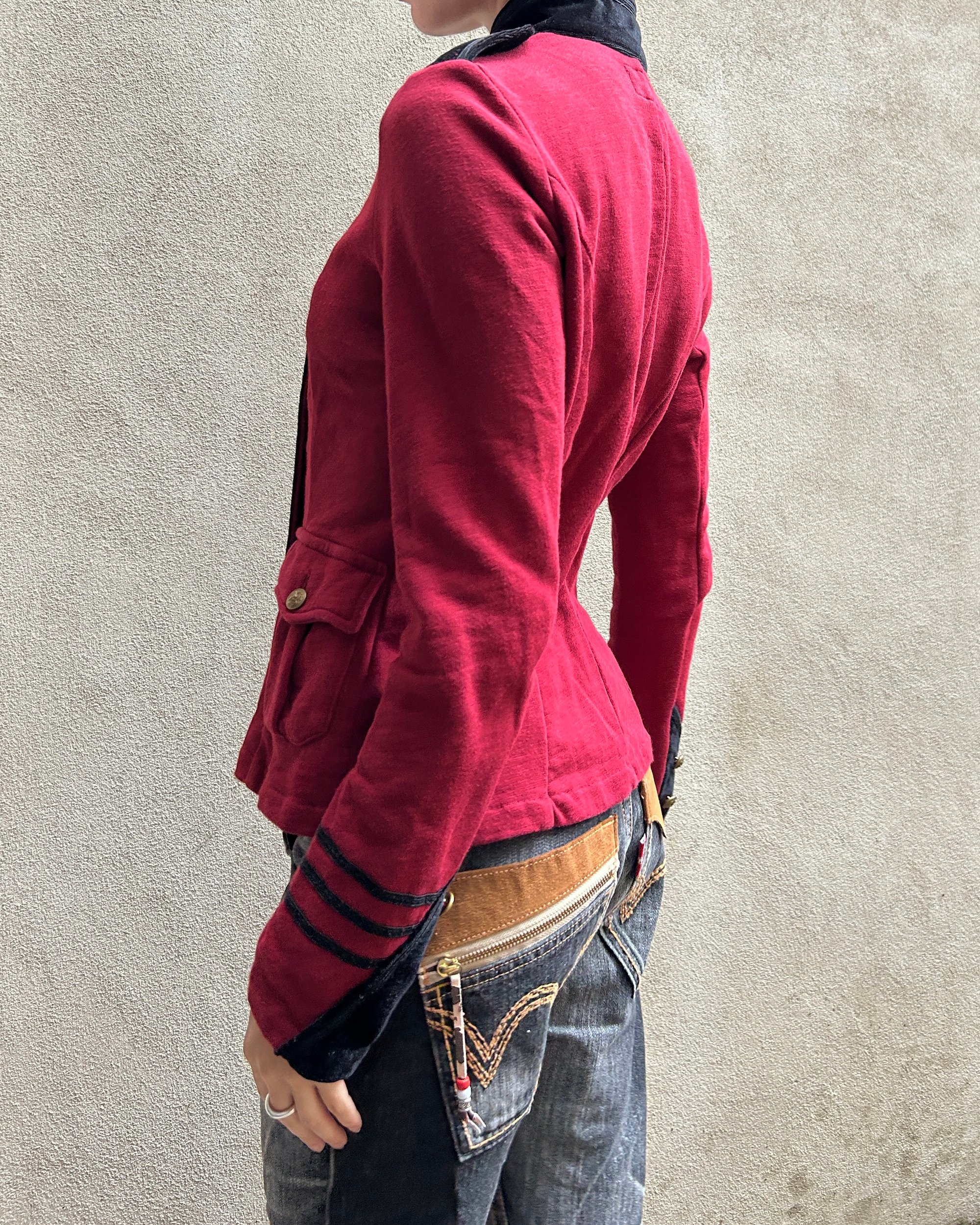 SIZE S/M | Vintage discontinued Denim & Supply by Ralph Lauren red military jacket with velour panel and gold hardware.