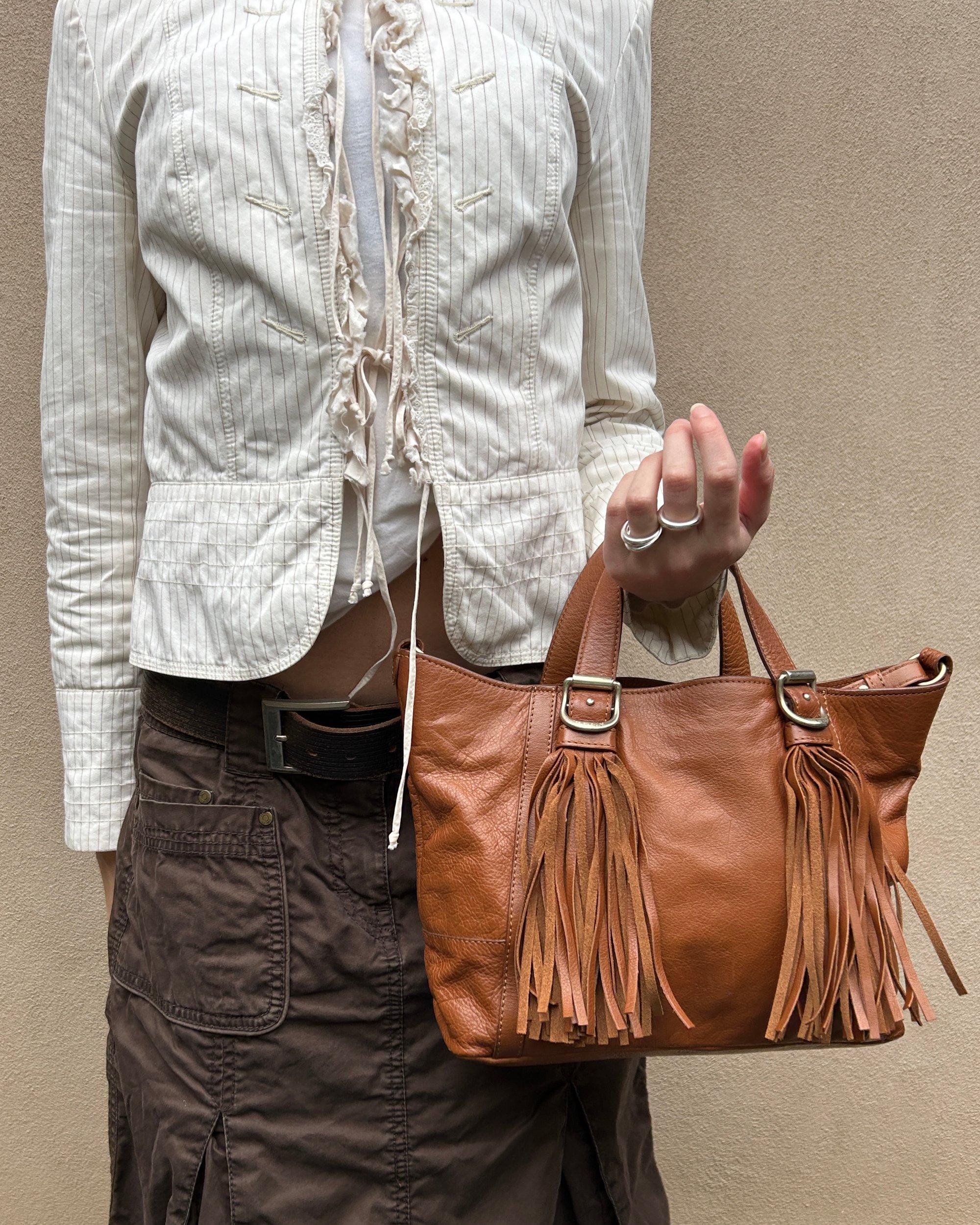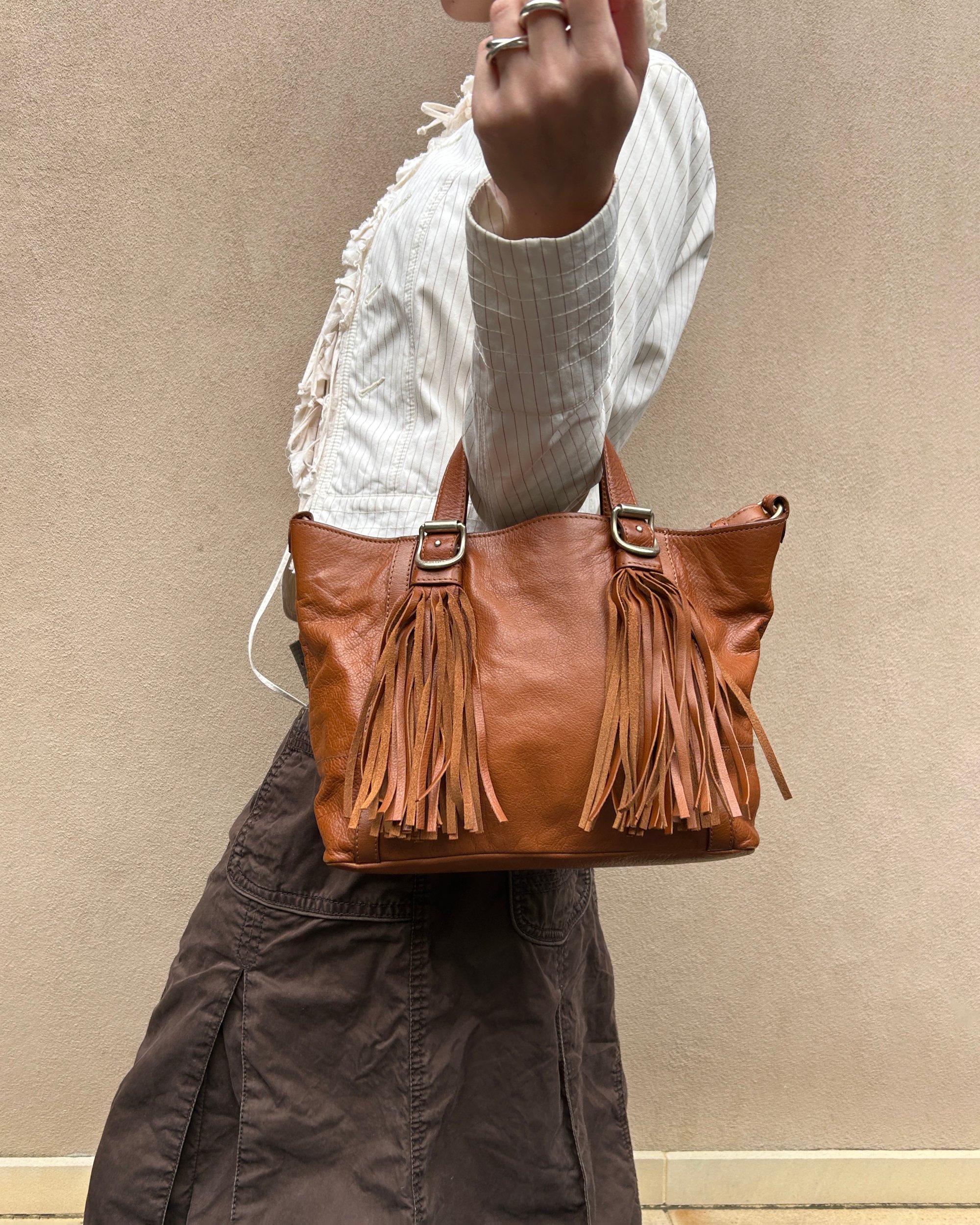 TAN BROWN | See By Chloe genuine leather two-way bag with tassel accents.